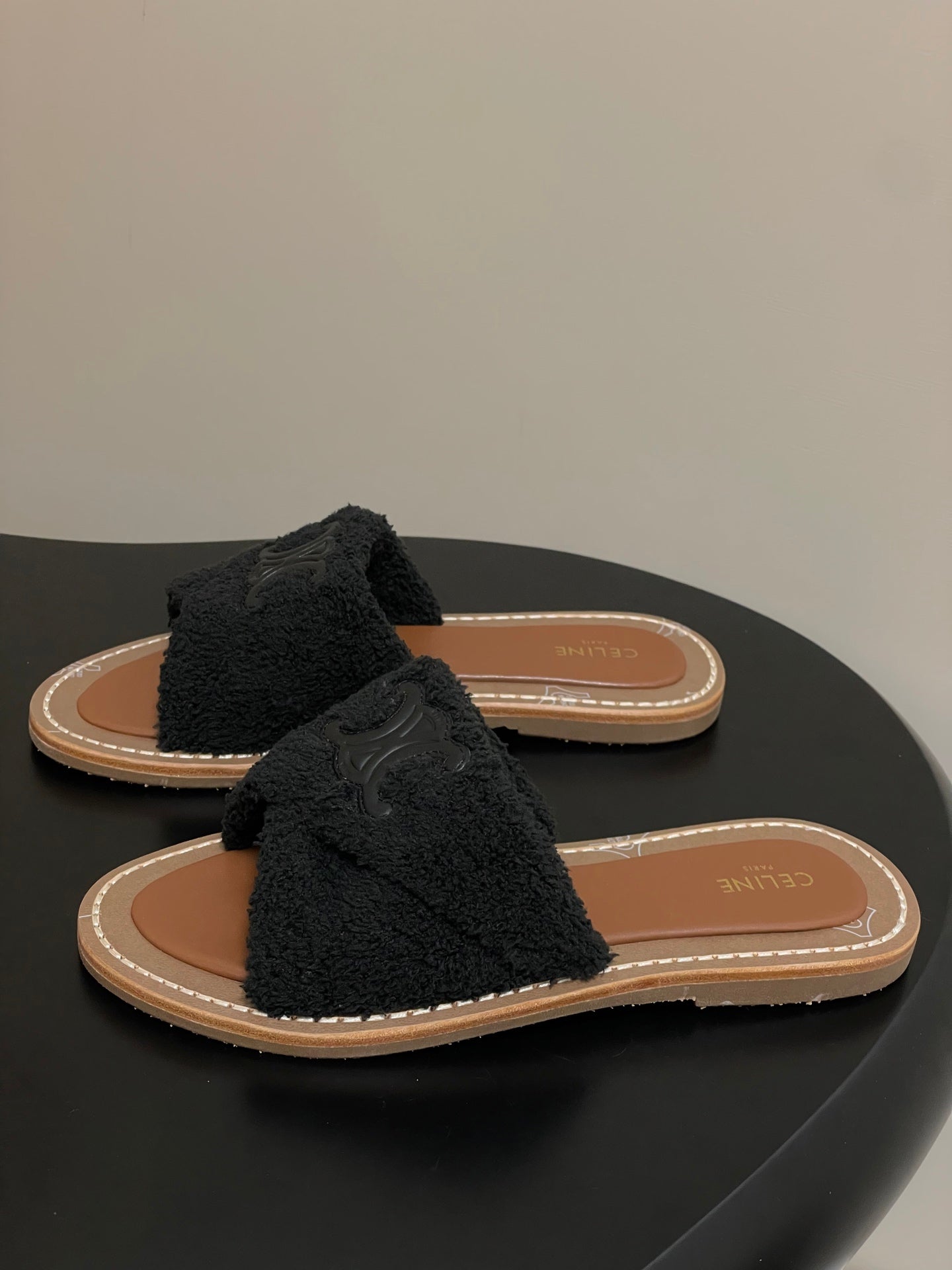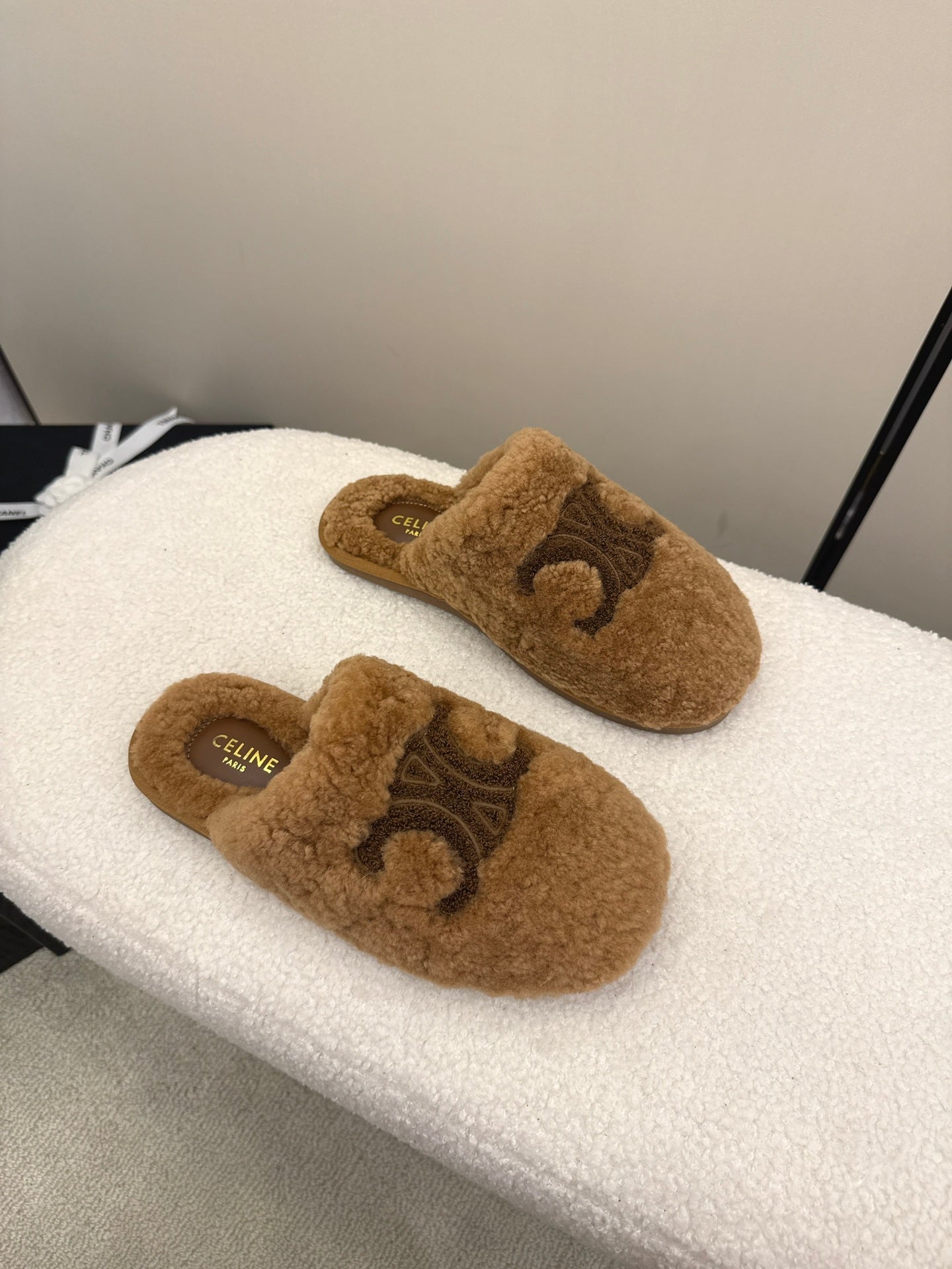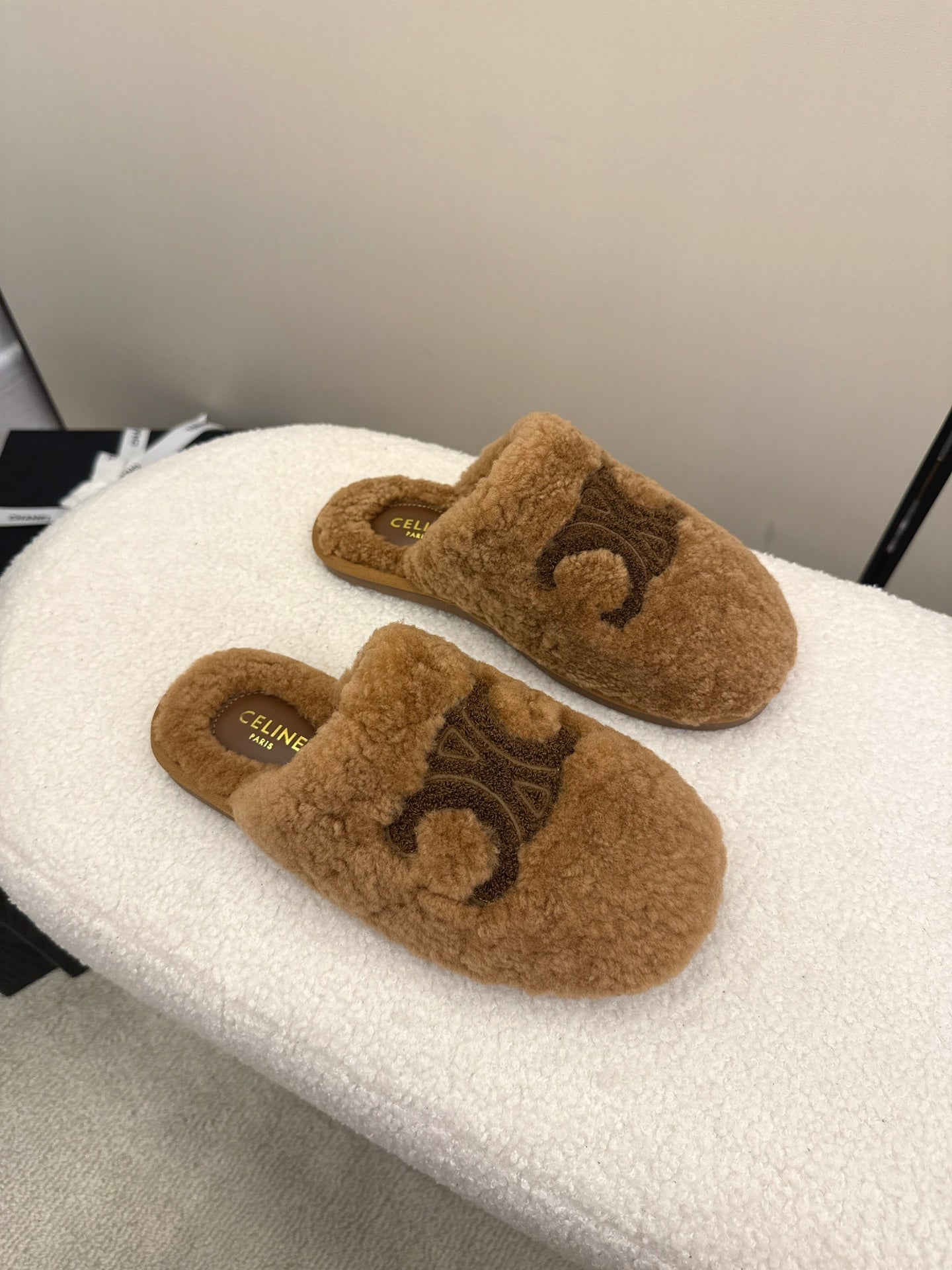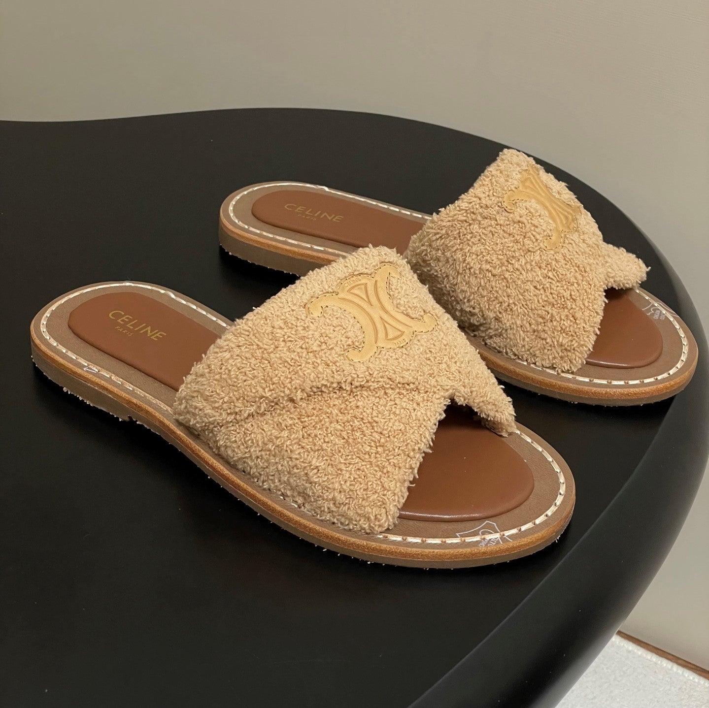 Celine Arc de Triomphe slippers Brown Sheepskin