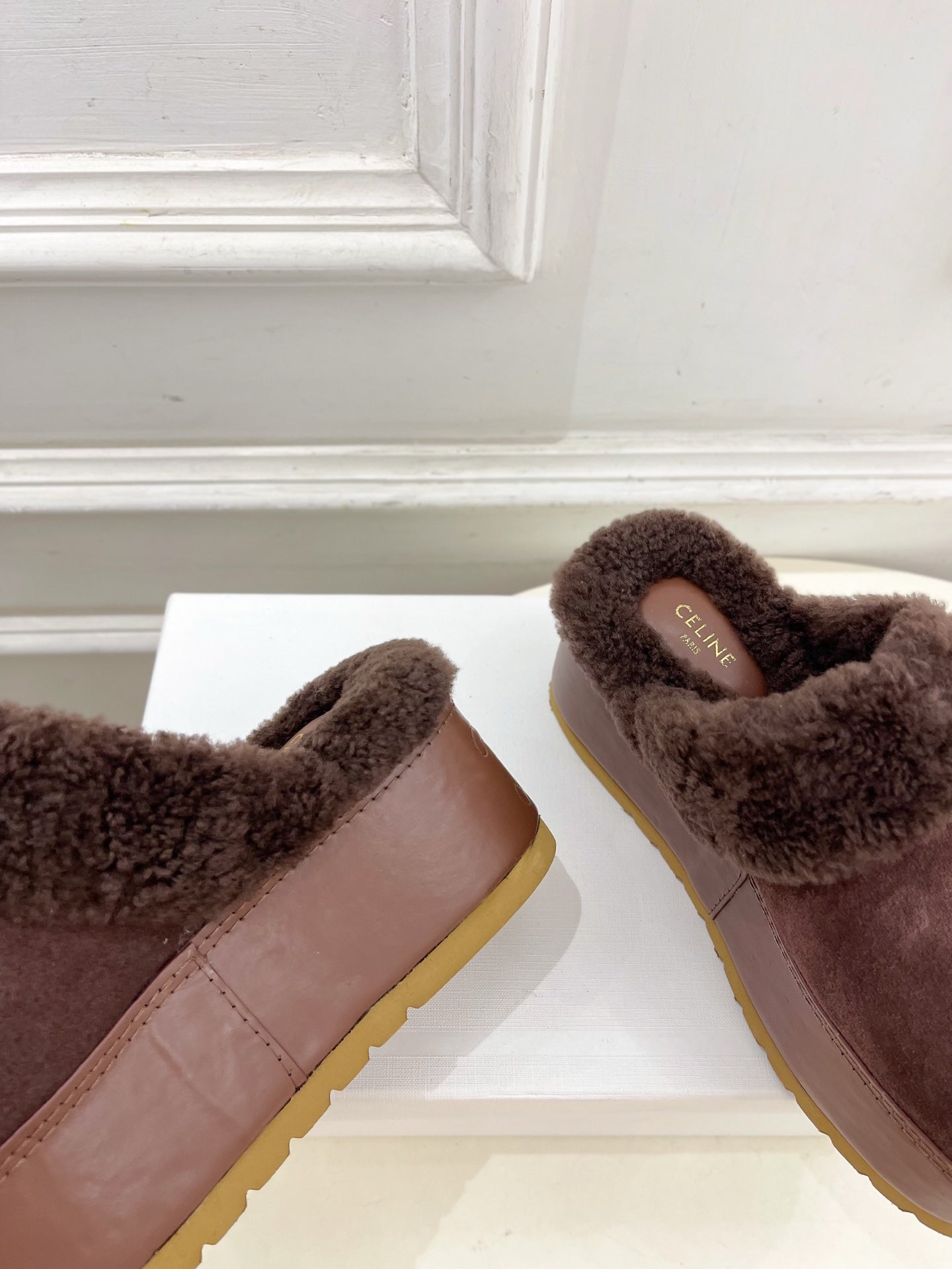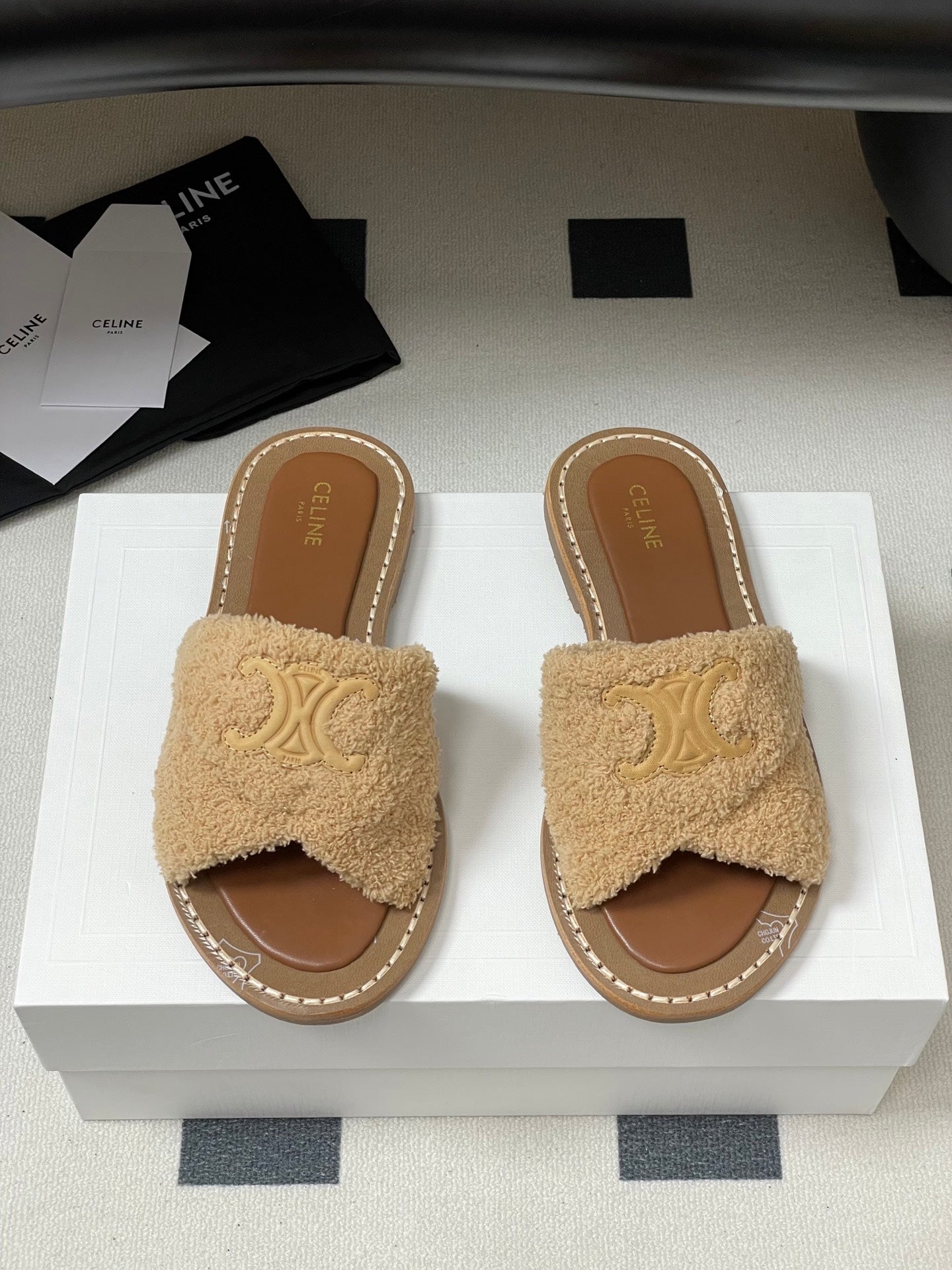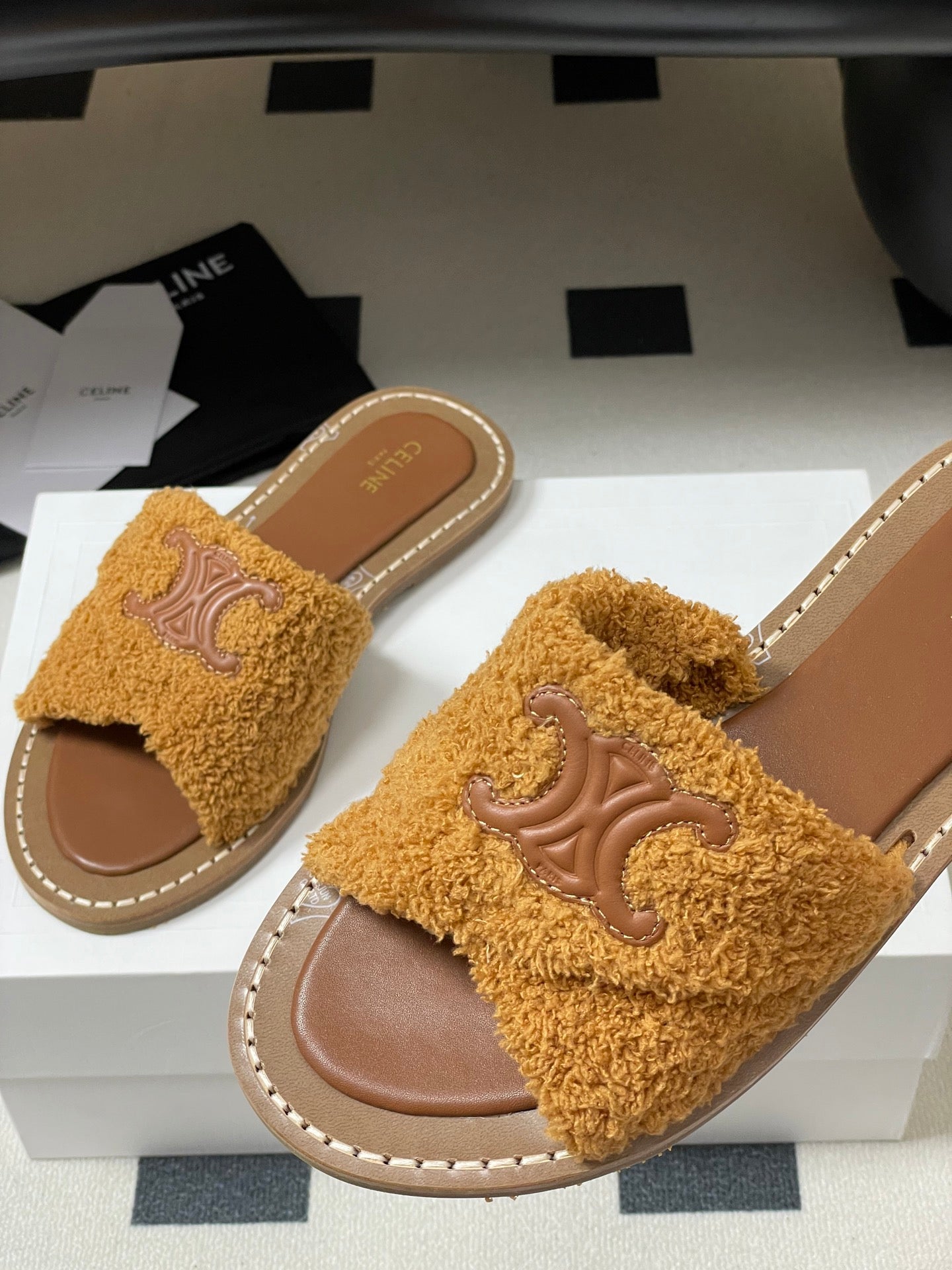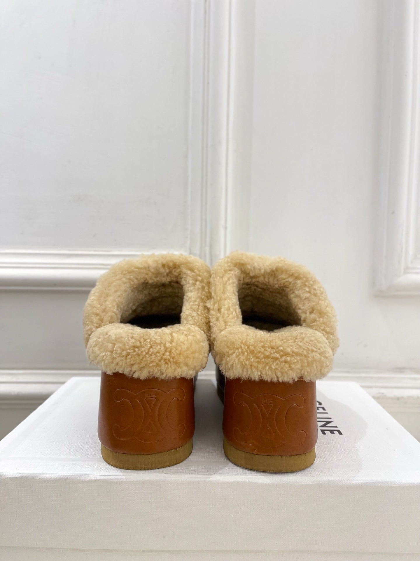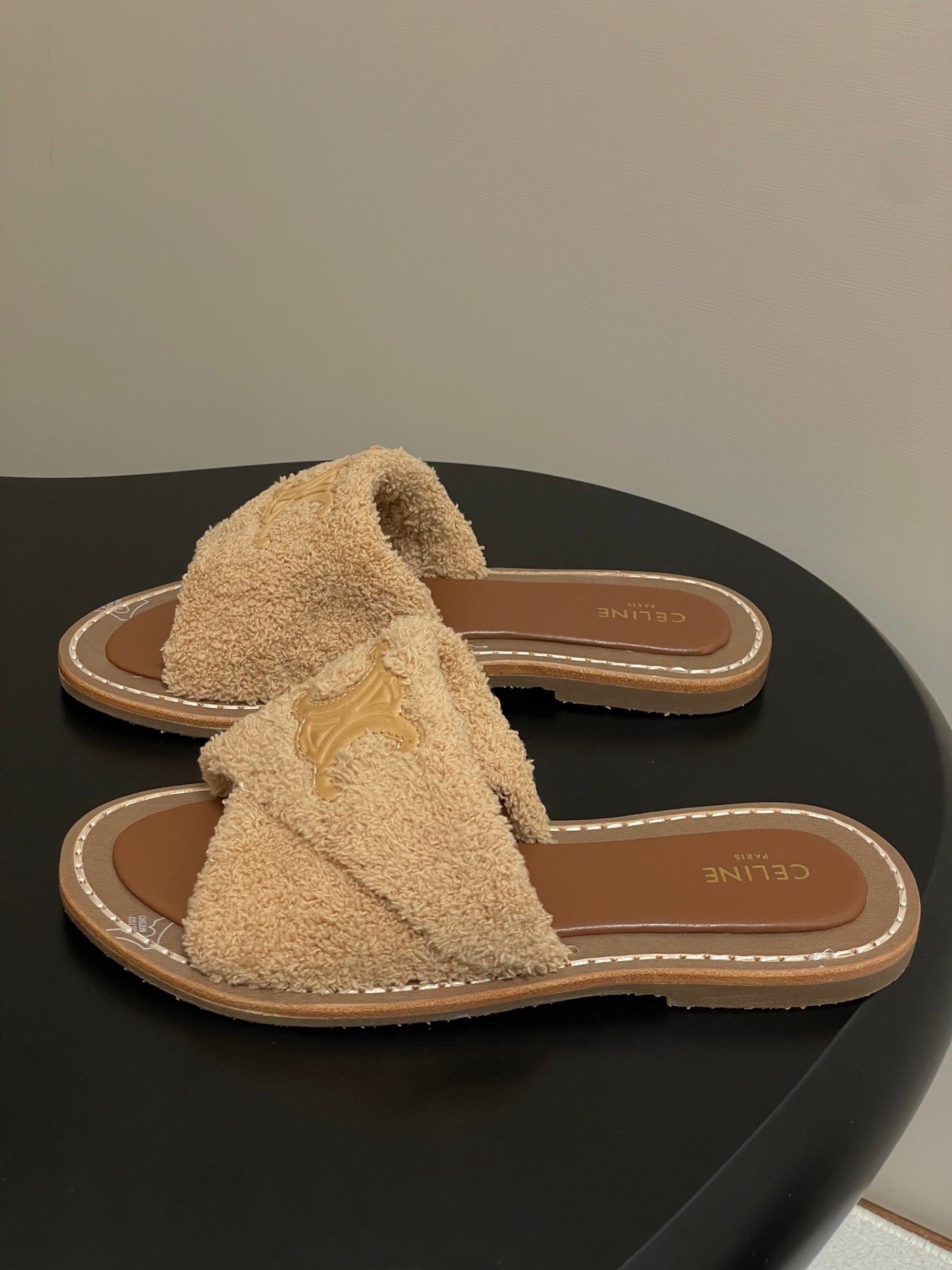 Celine Arc de Triomphe slippers Brown Sheepskin