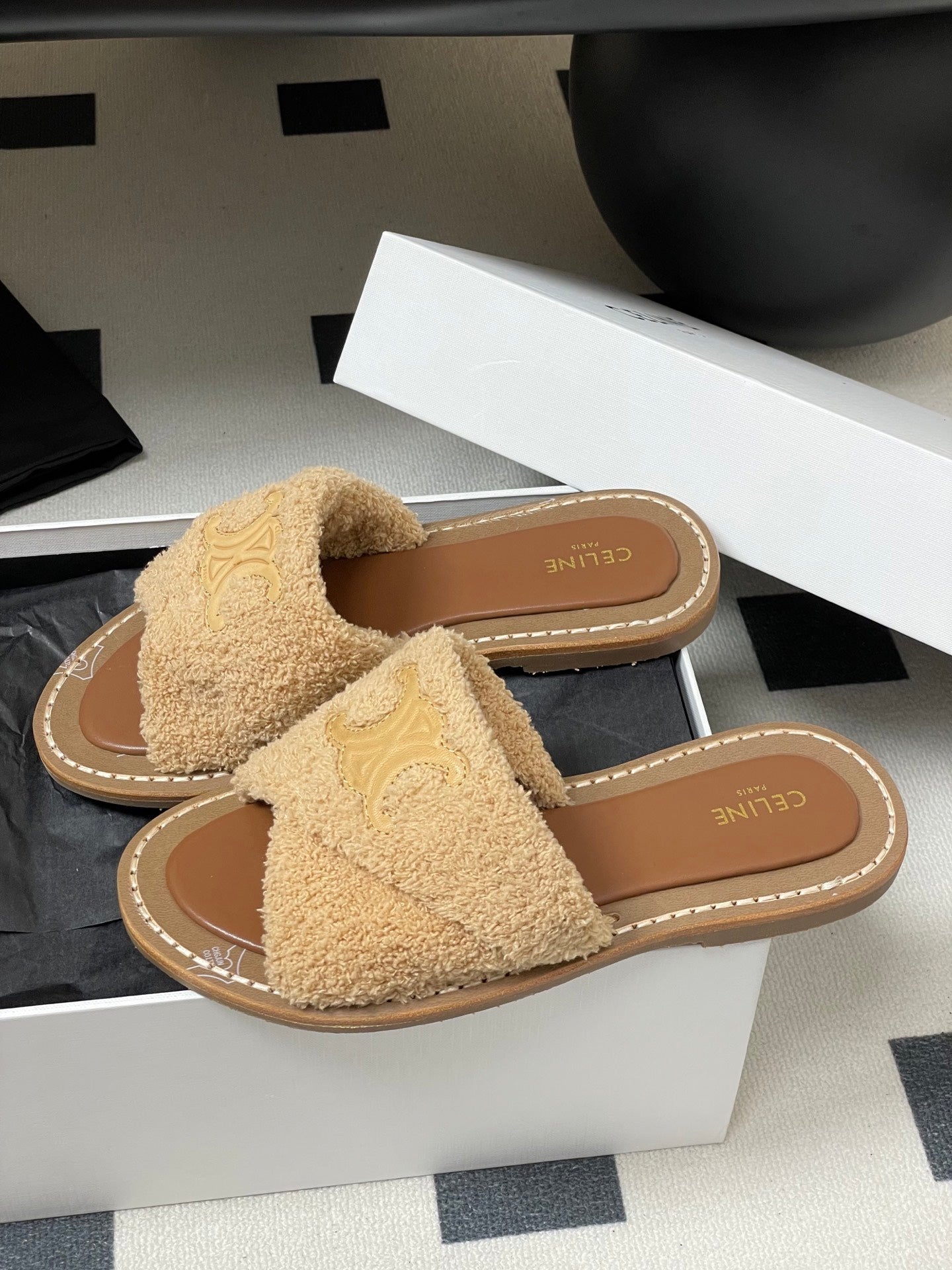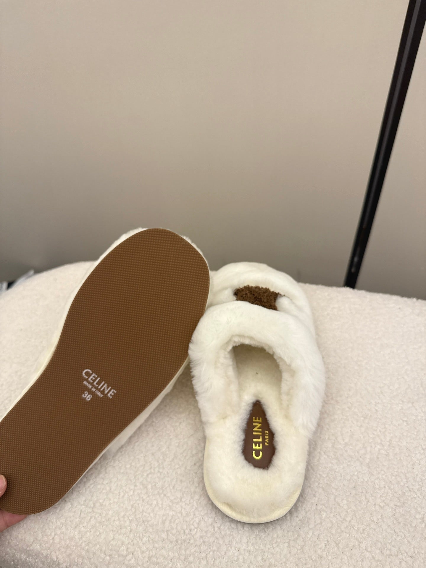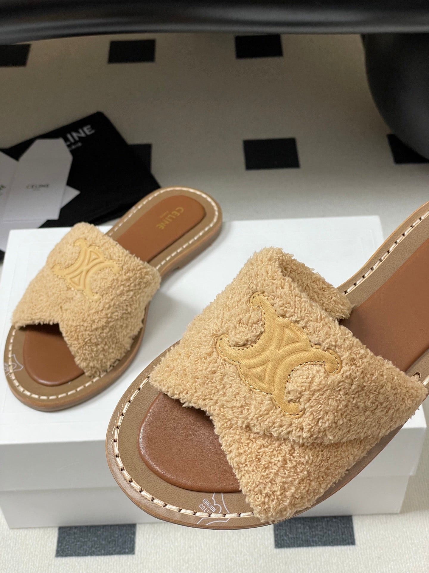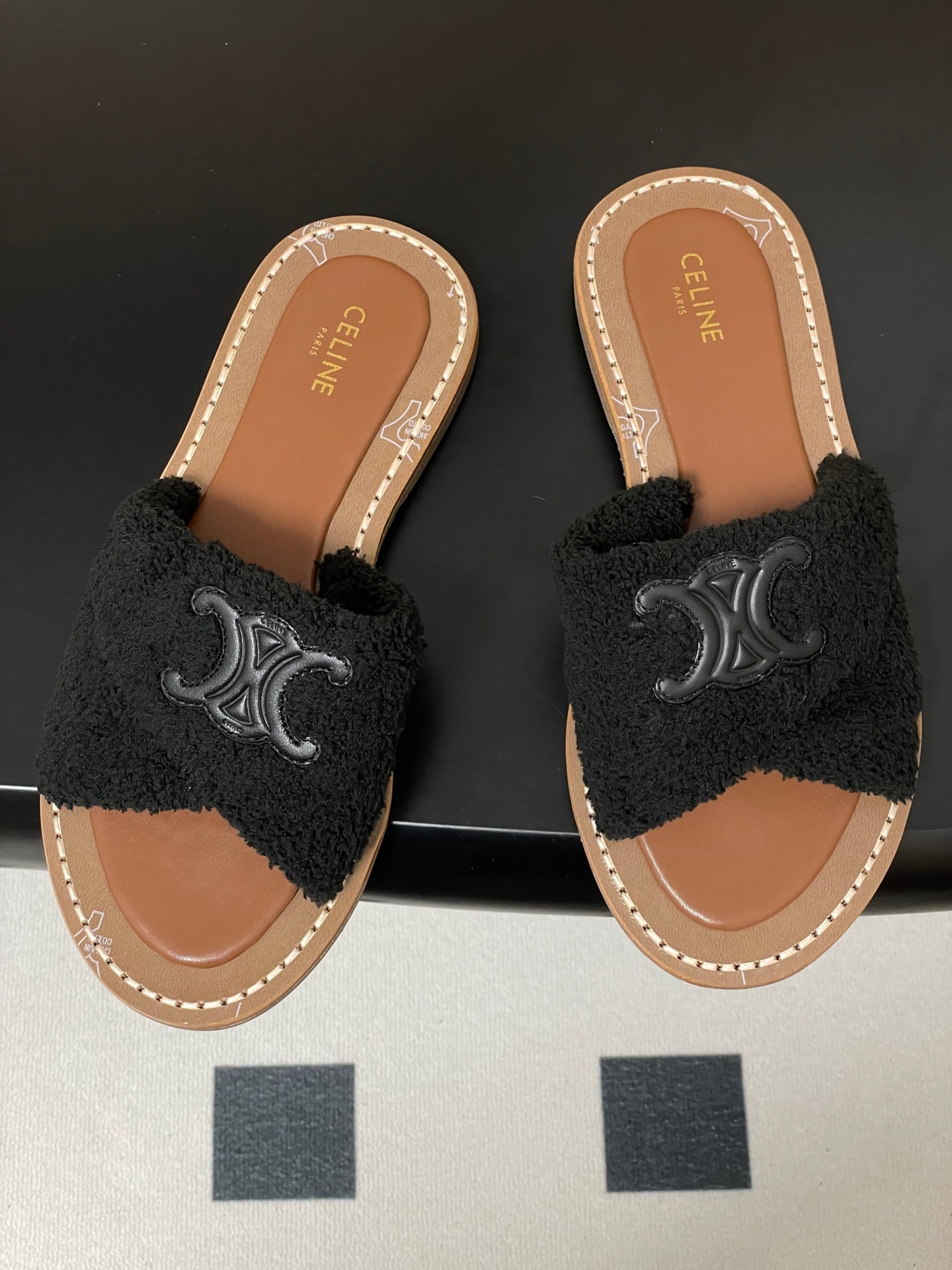 Celine Arc de Triomphe slippers Brown Sheepskin