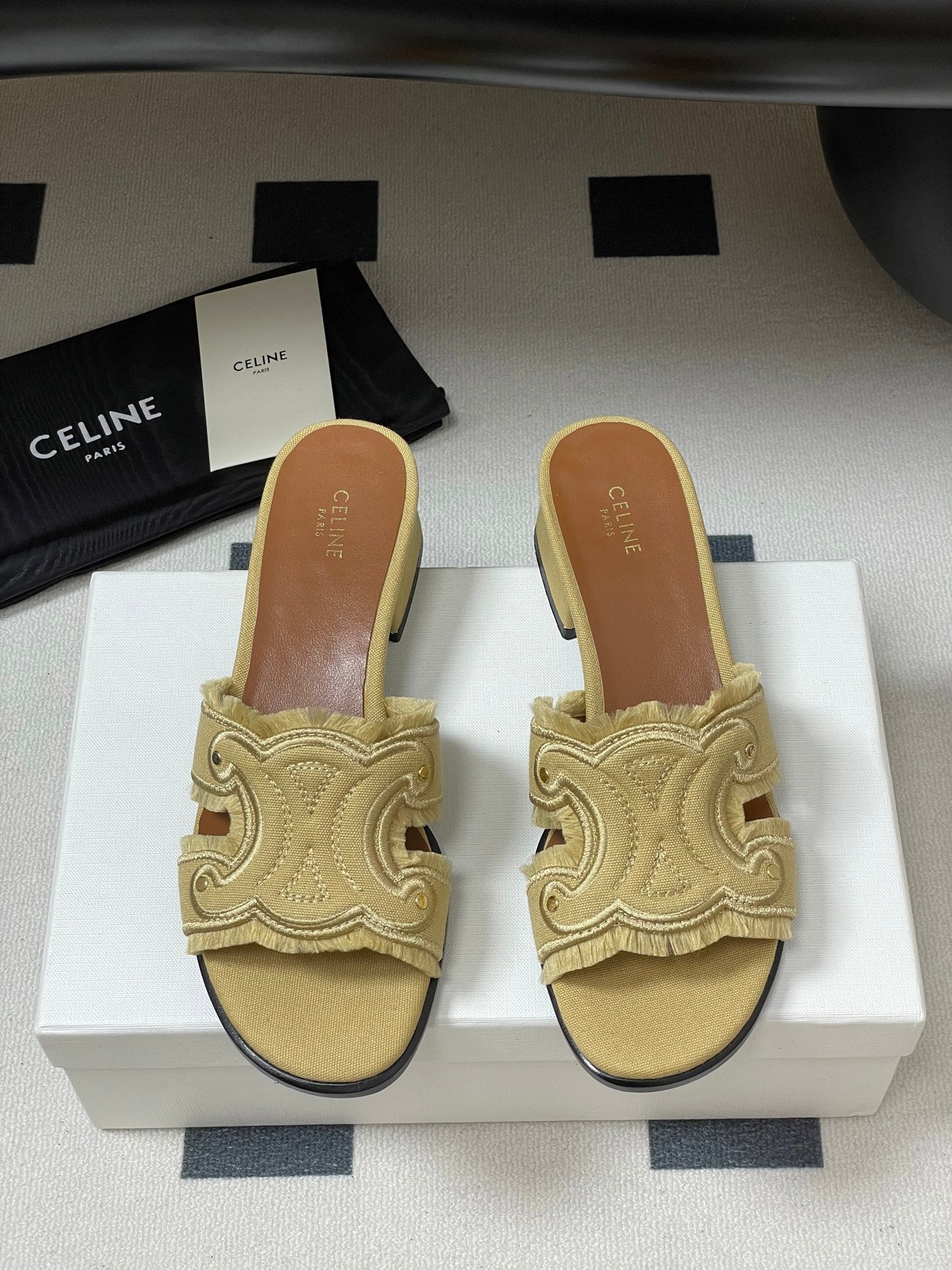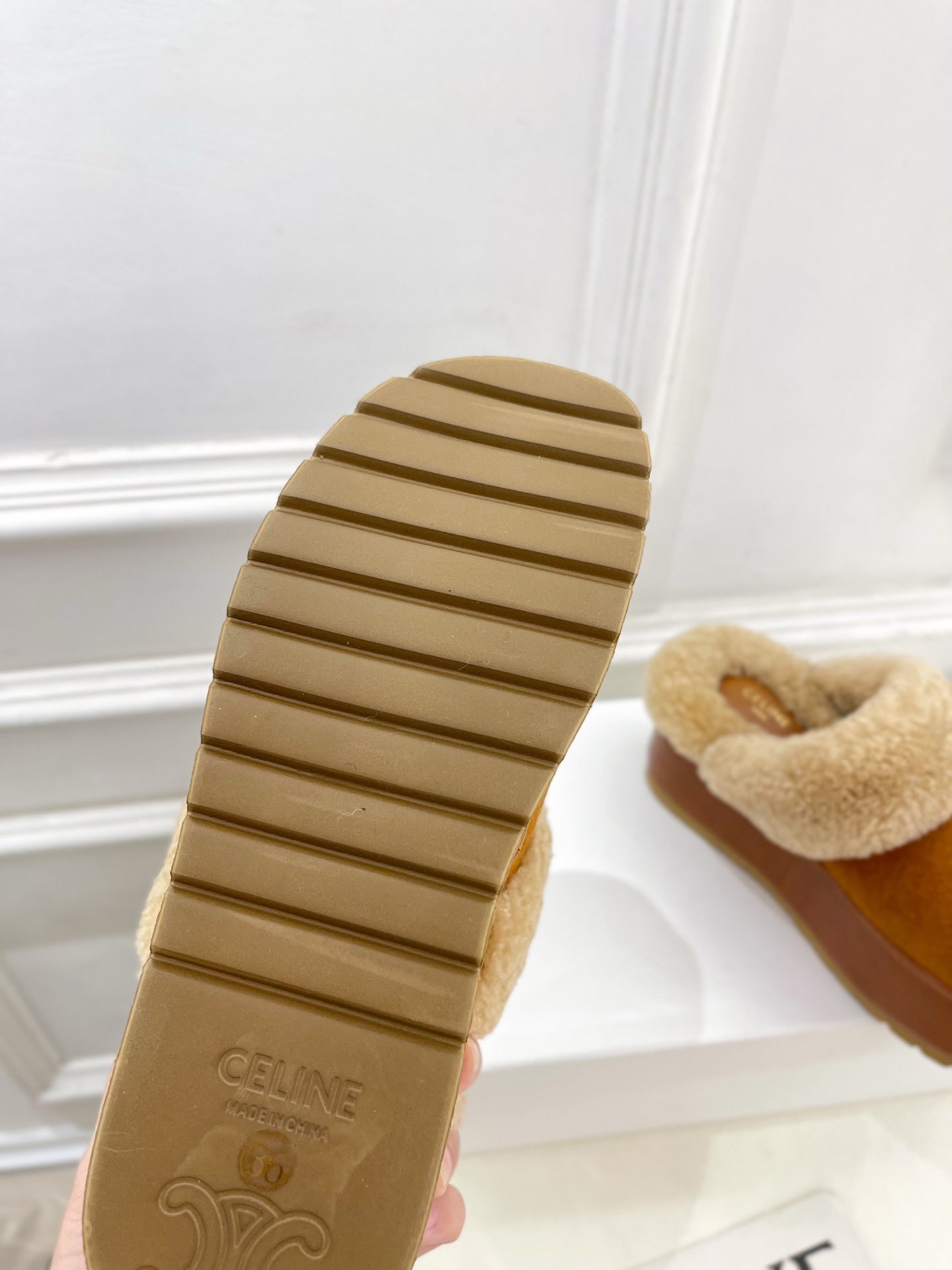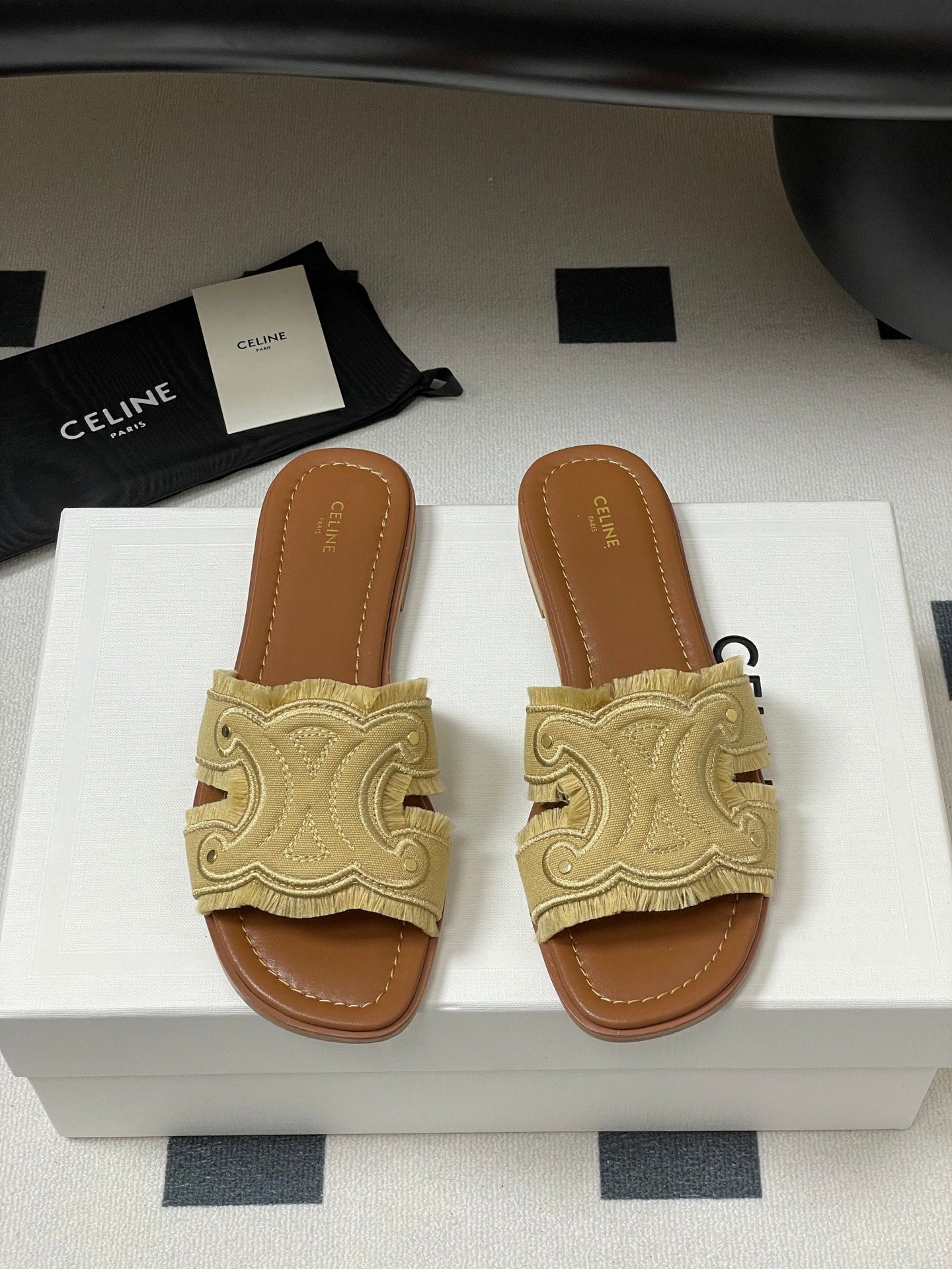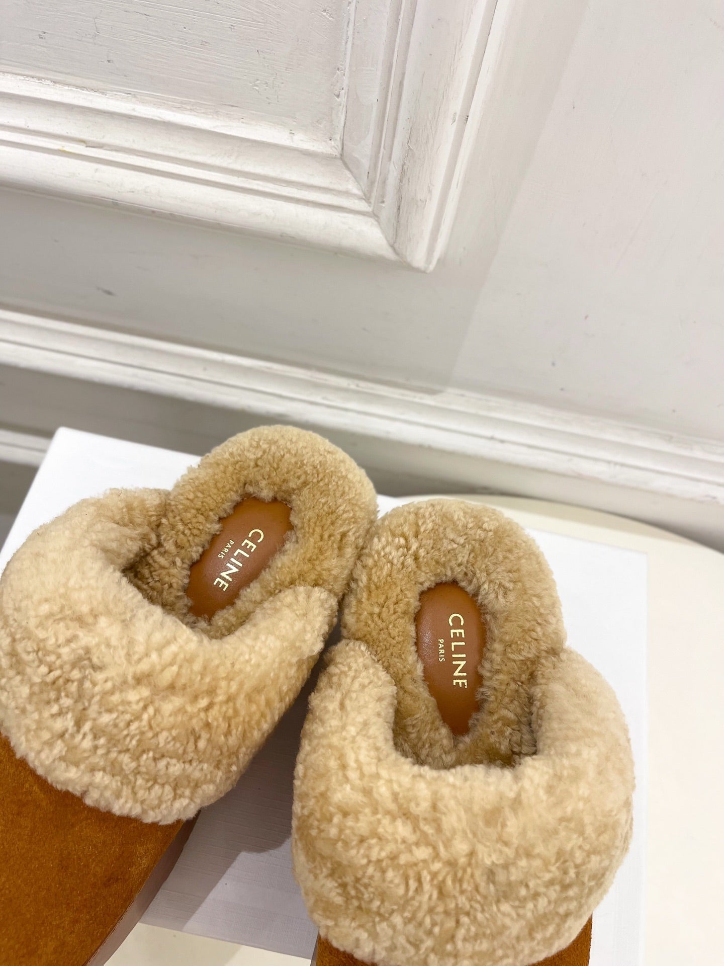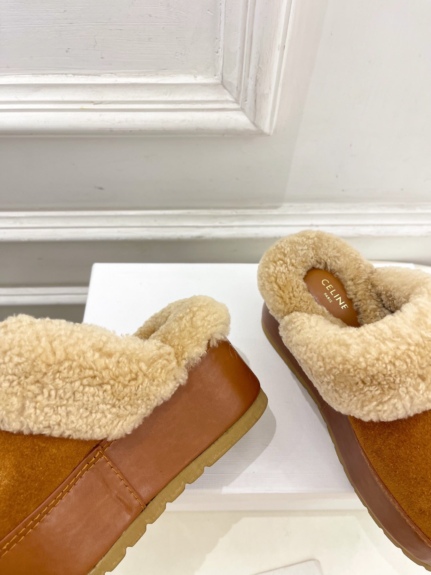Celine Arc de Triomphe slippers Brown Sheepskin