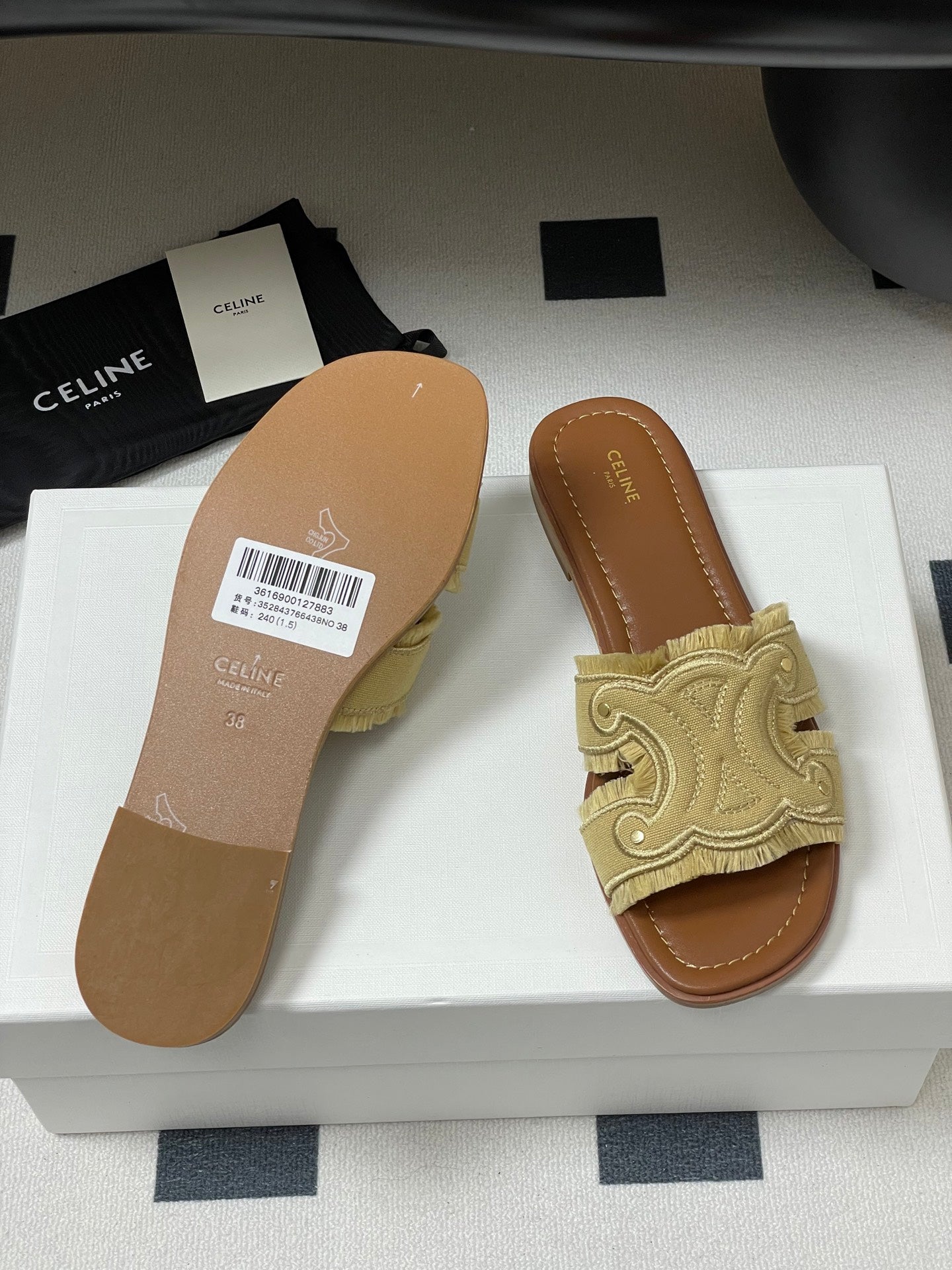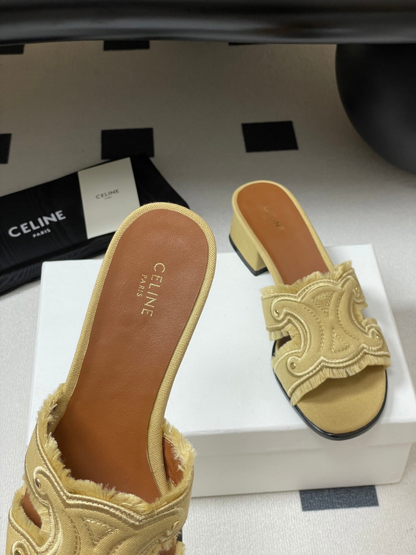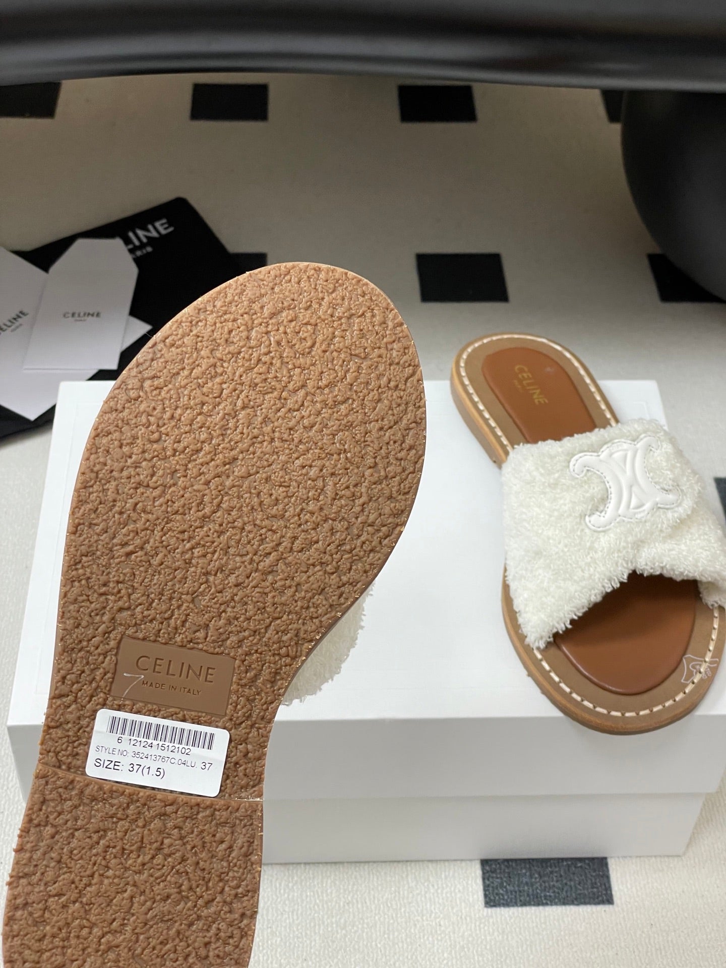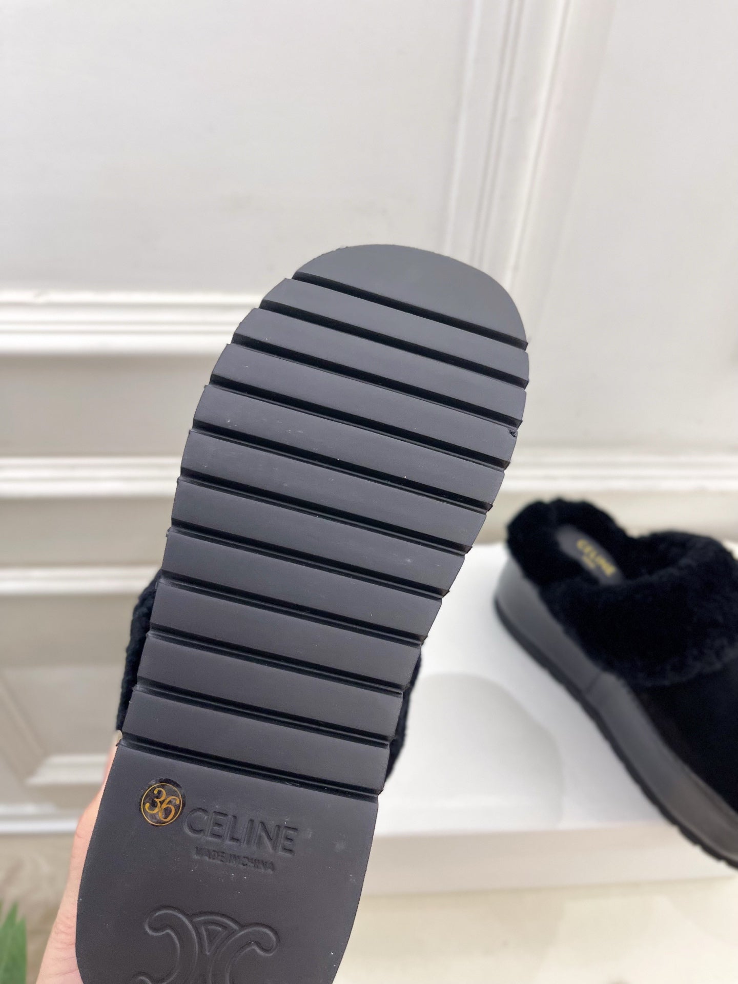 Celine Arc de Triomphe slippers Brown Sheepskin