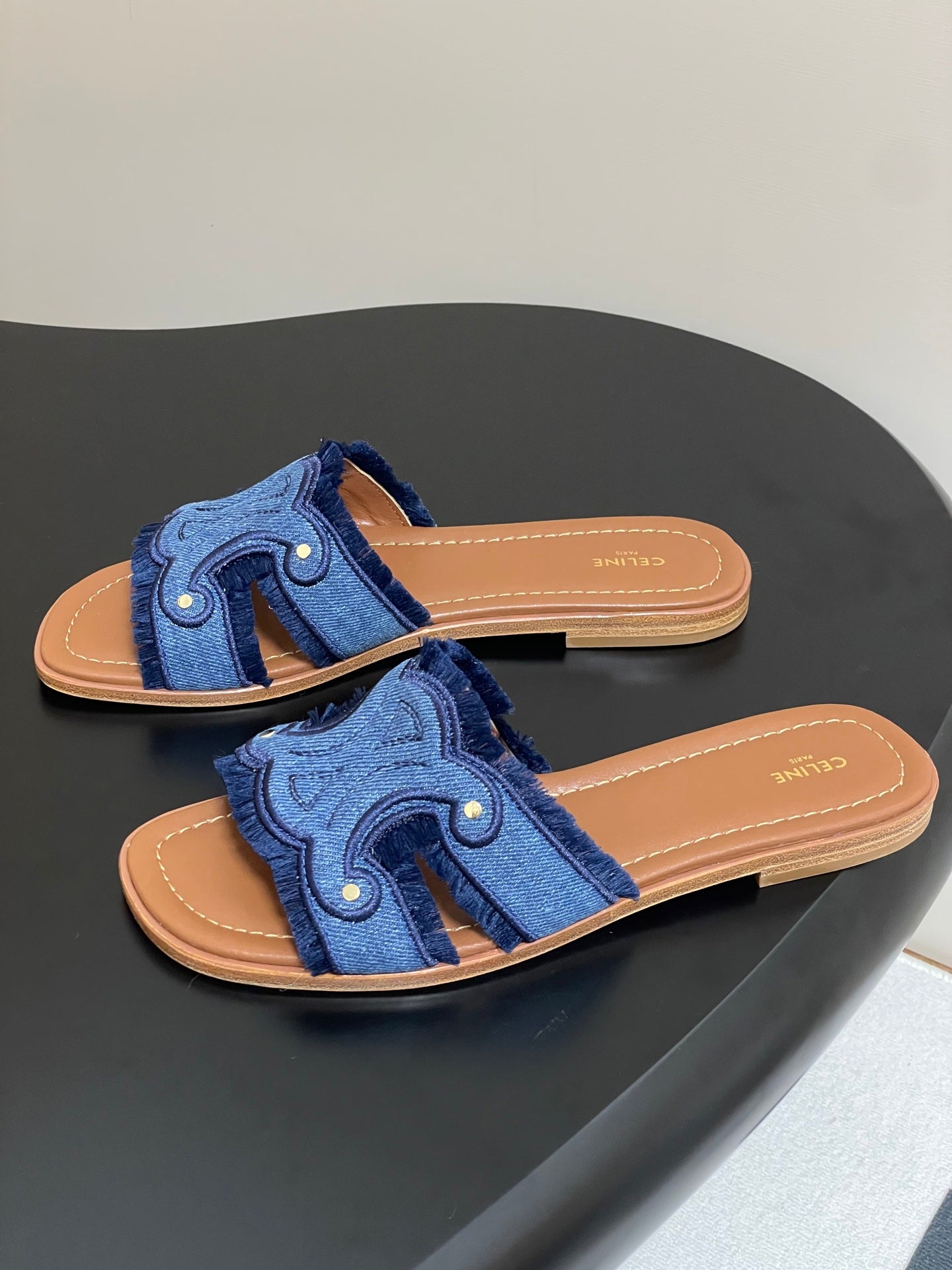 CL Marina Fringed Flat Mule In Blue Denim 319736