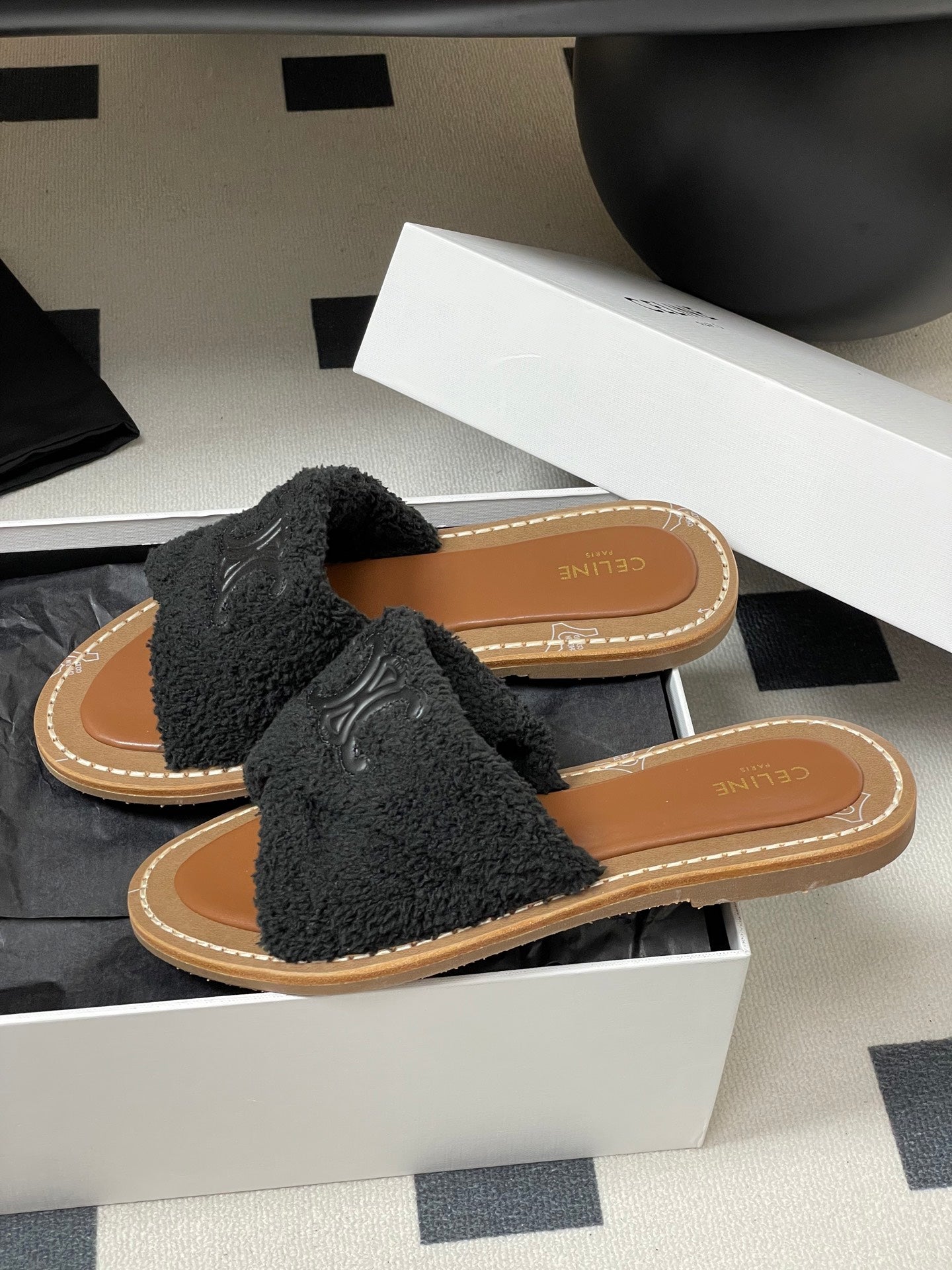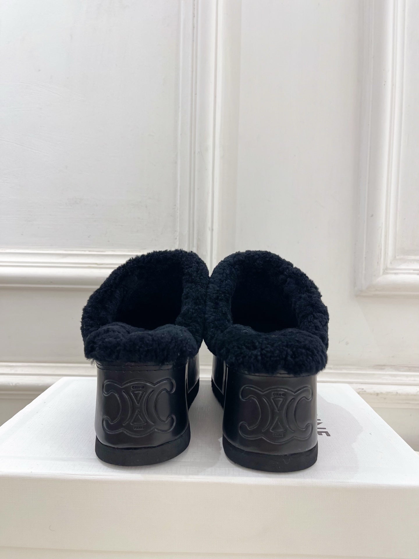 CL 25s Triomphe Slides 50mm Black Wool & Rubber 434462