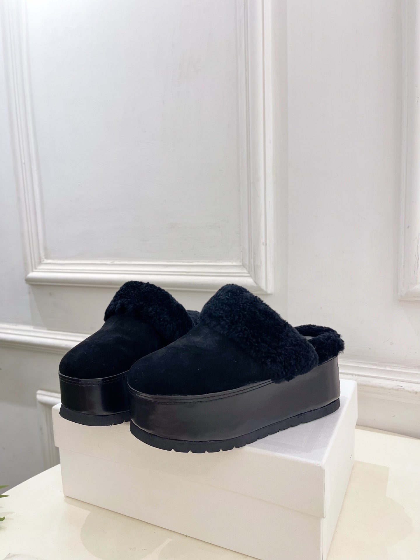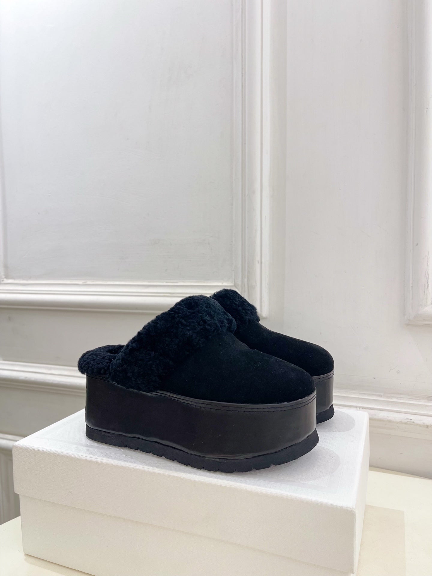 CL 25s Dana Wedge Mule 80mm Black Suede Calfskin & Shearling