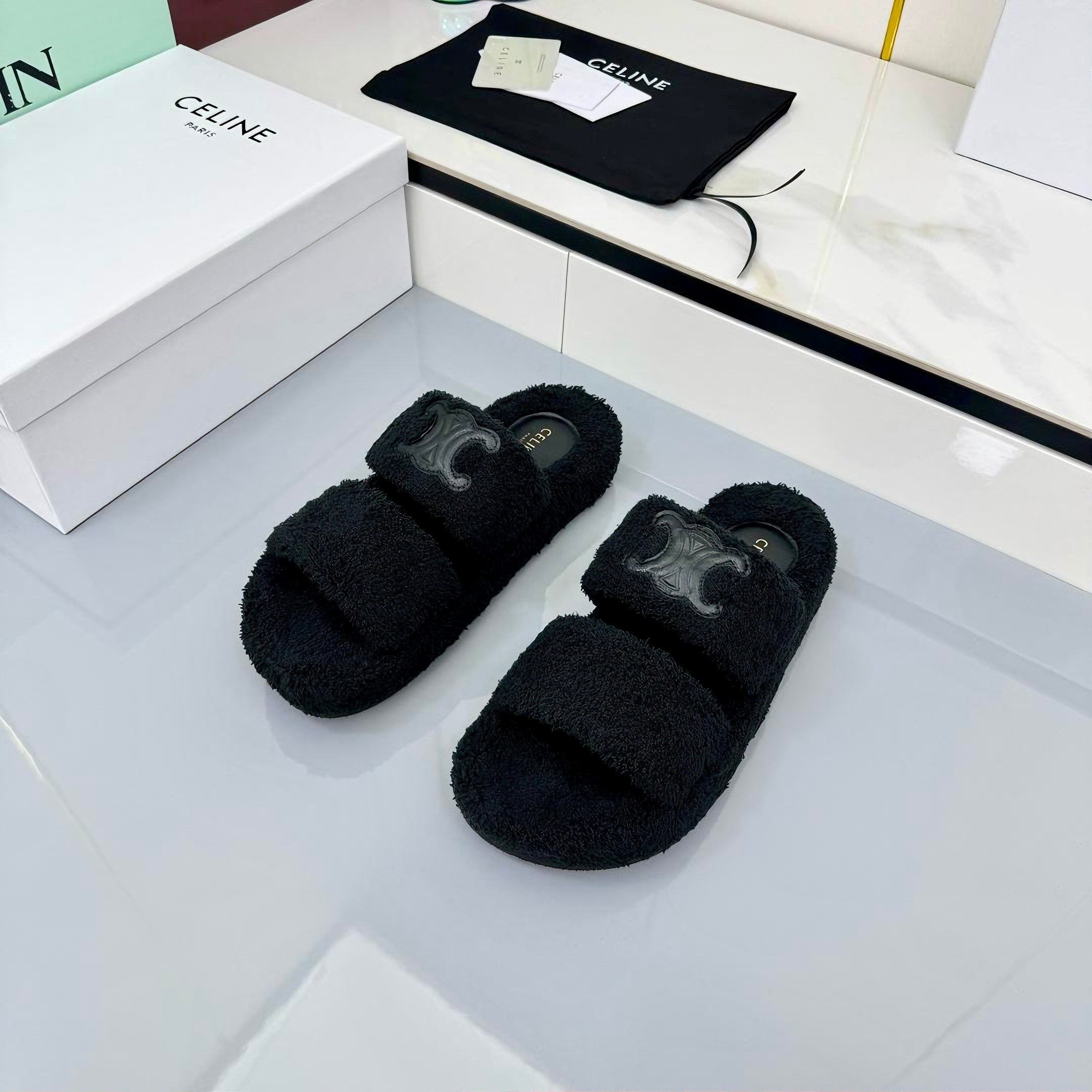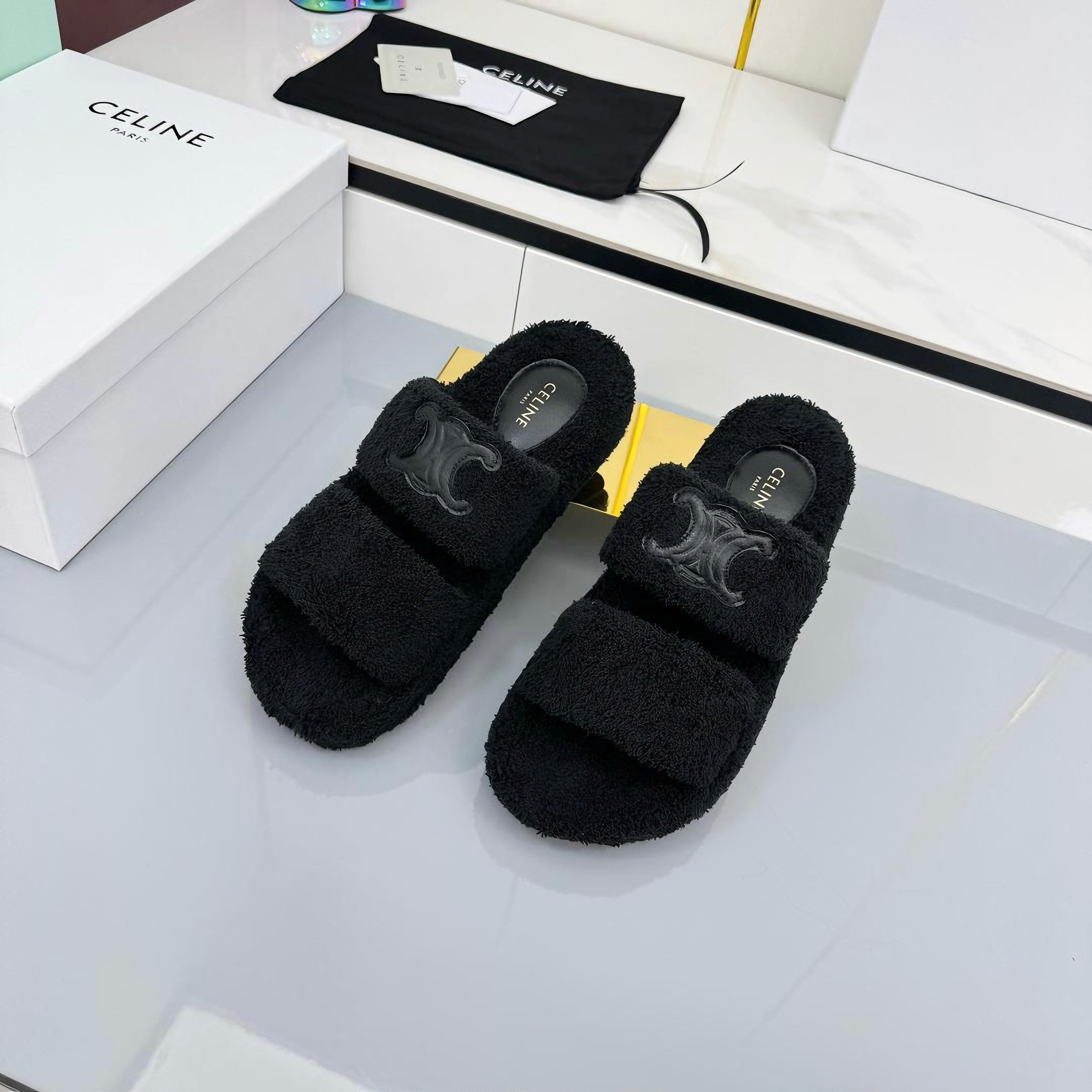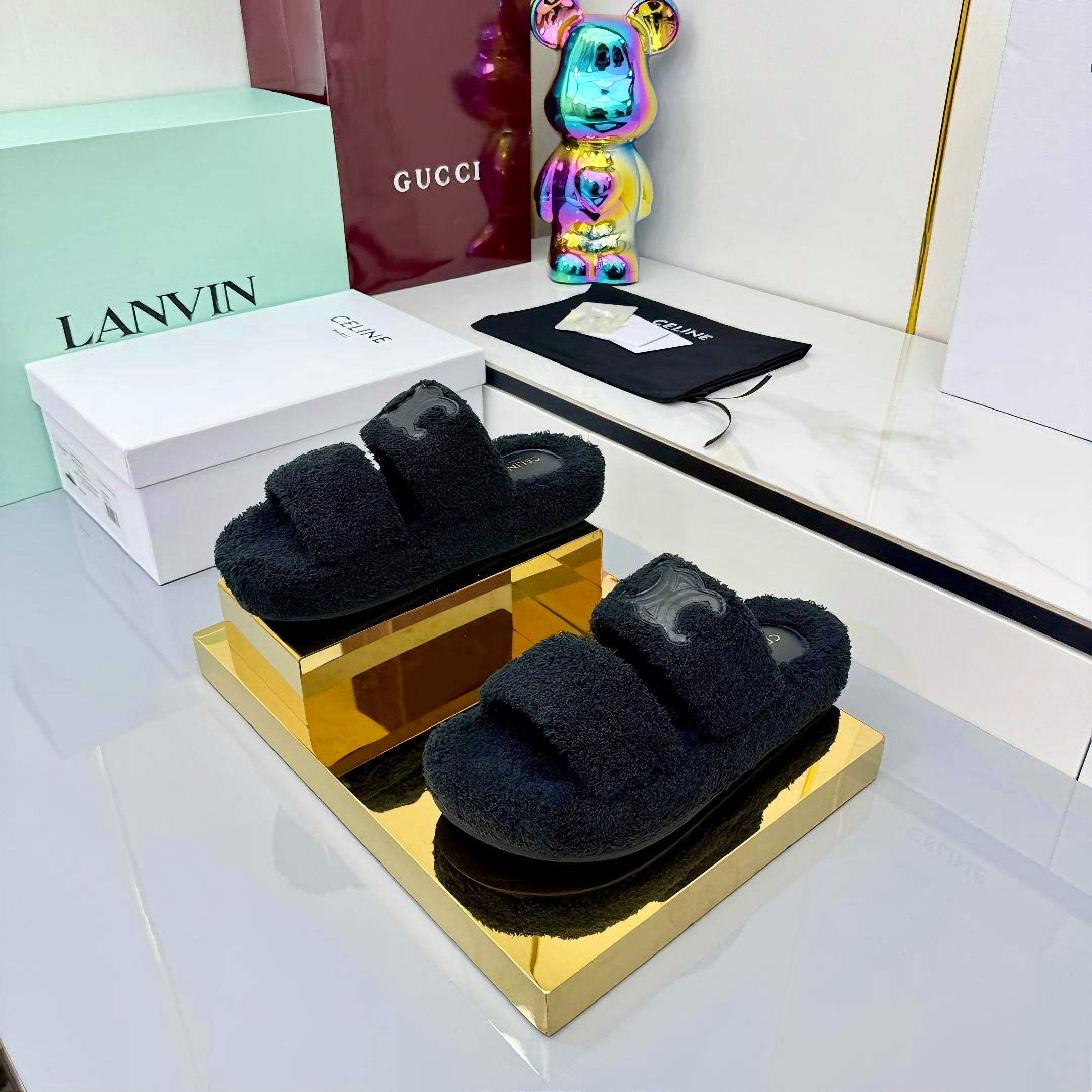 CL 25s Triomphe Slides 50mm Black Wool & Rubber 434462