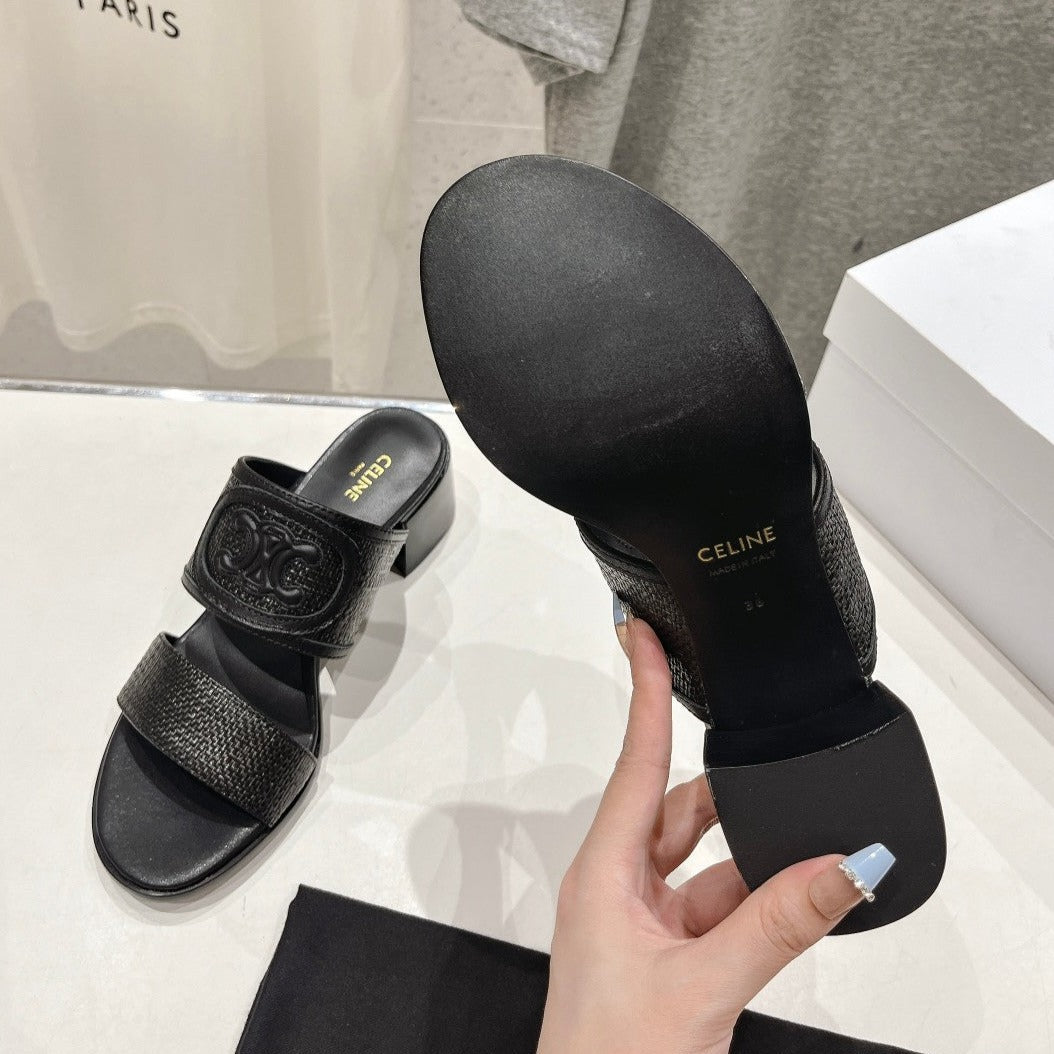 APPOLINE MULE IN RAFFIA & CALFSKIN BLACK