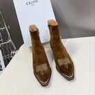 CELINE 25 Cowboy Boots Brown Suede 434416