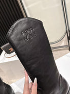 CELINE 25 Mid Calf Cowboy Boots Black Calfskin