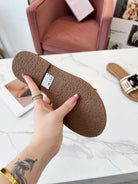 Celine 25C Slippers Beige mix Black Fabric with Calfskin 238158