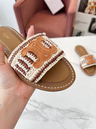 Celine 25C Slippers Beige mix Cantaloupe Fabric with Calfskin 238159
