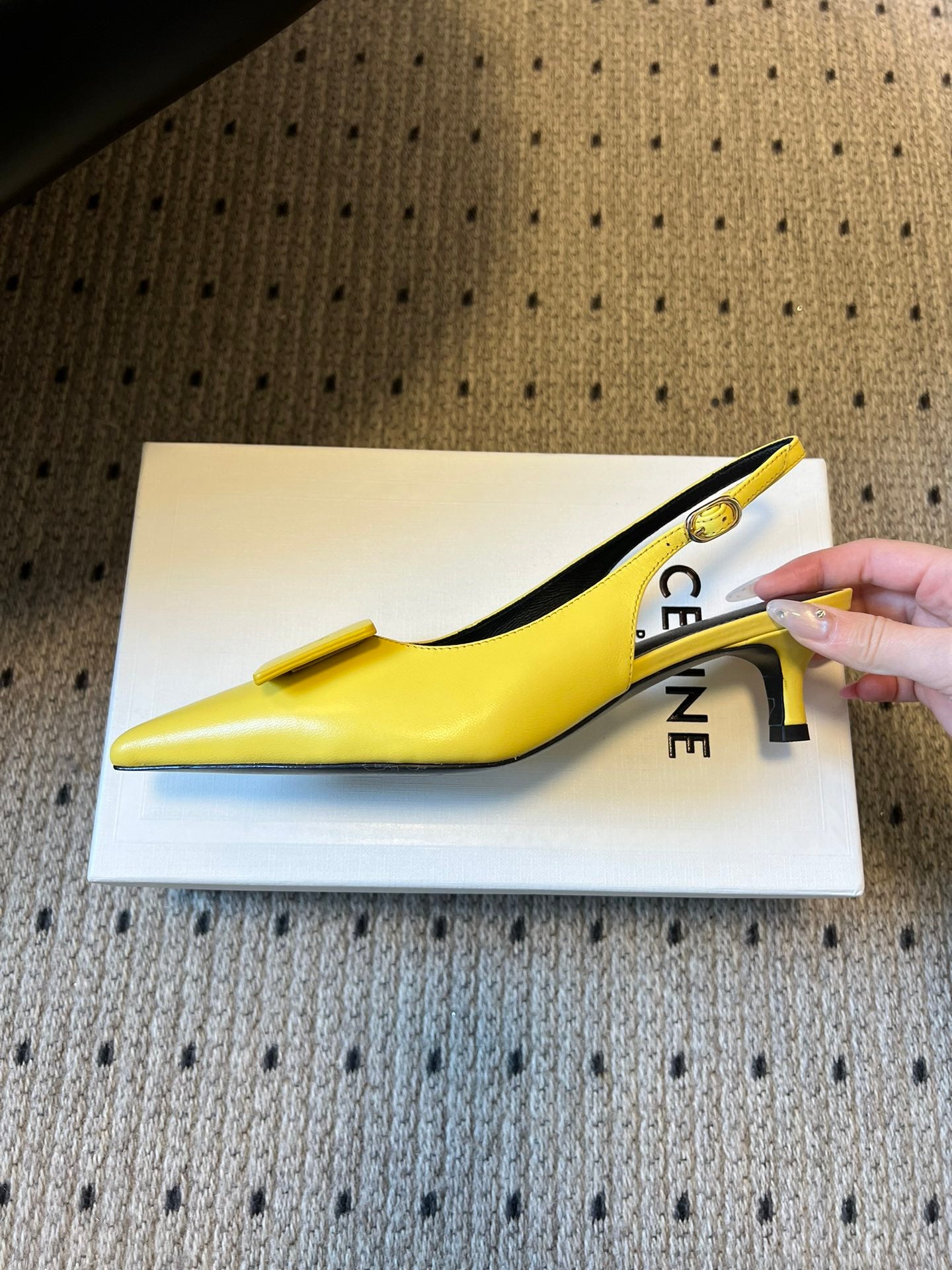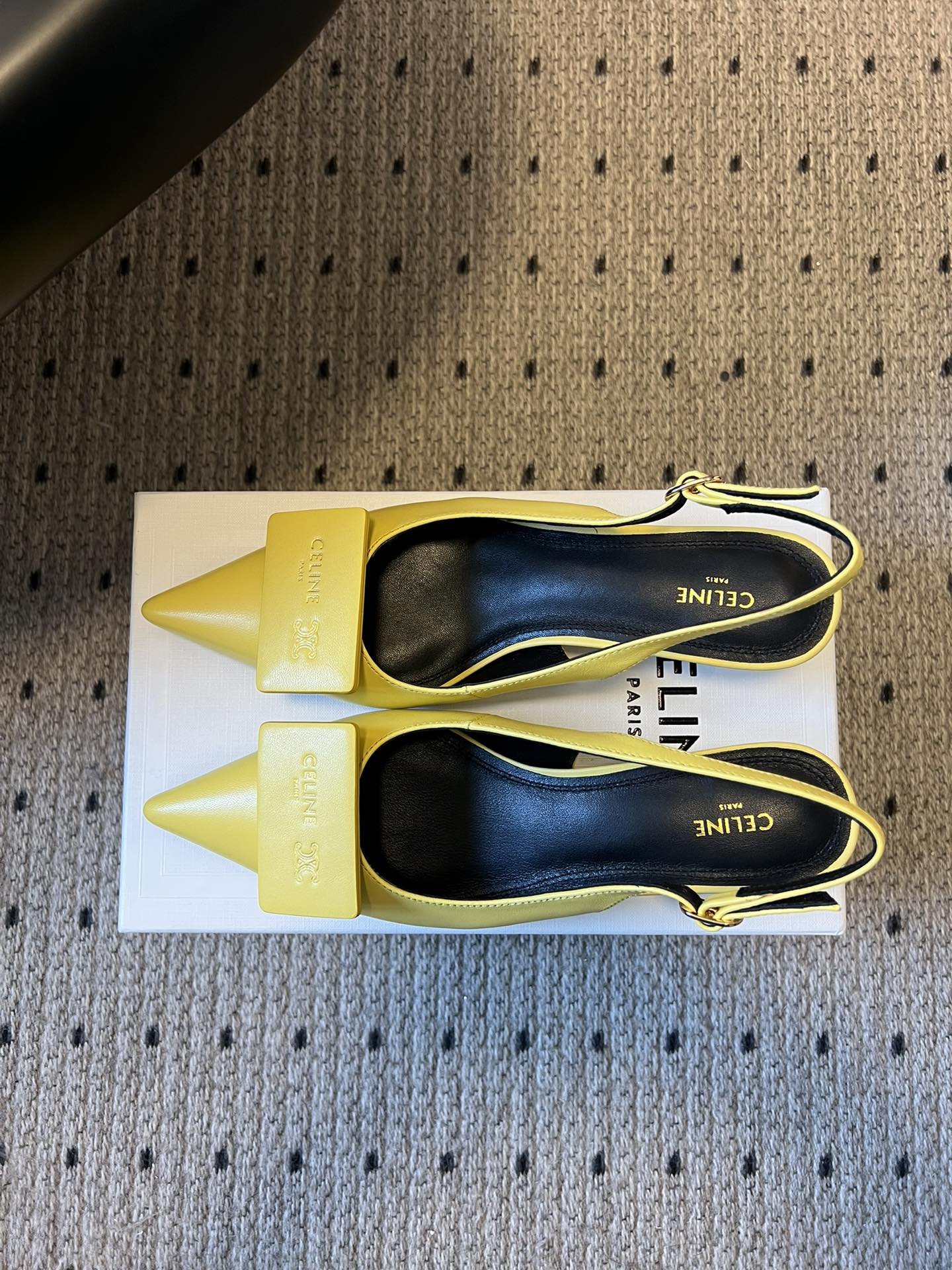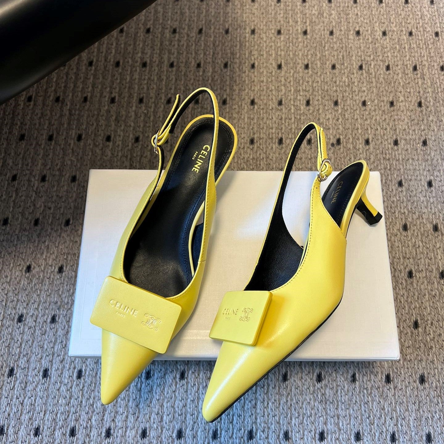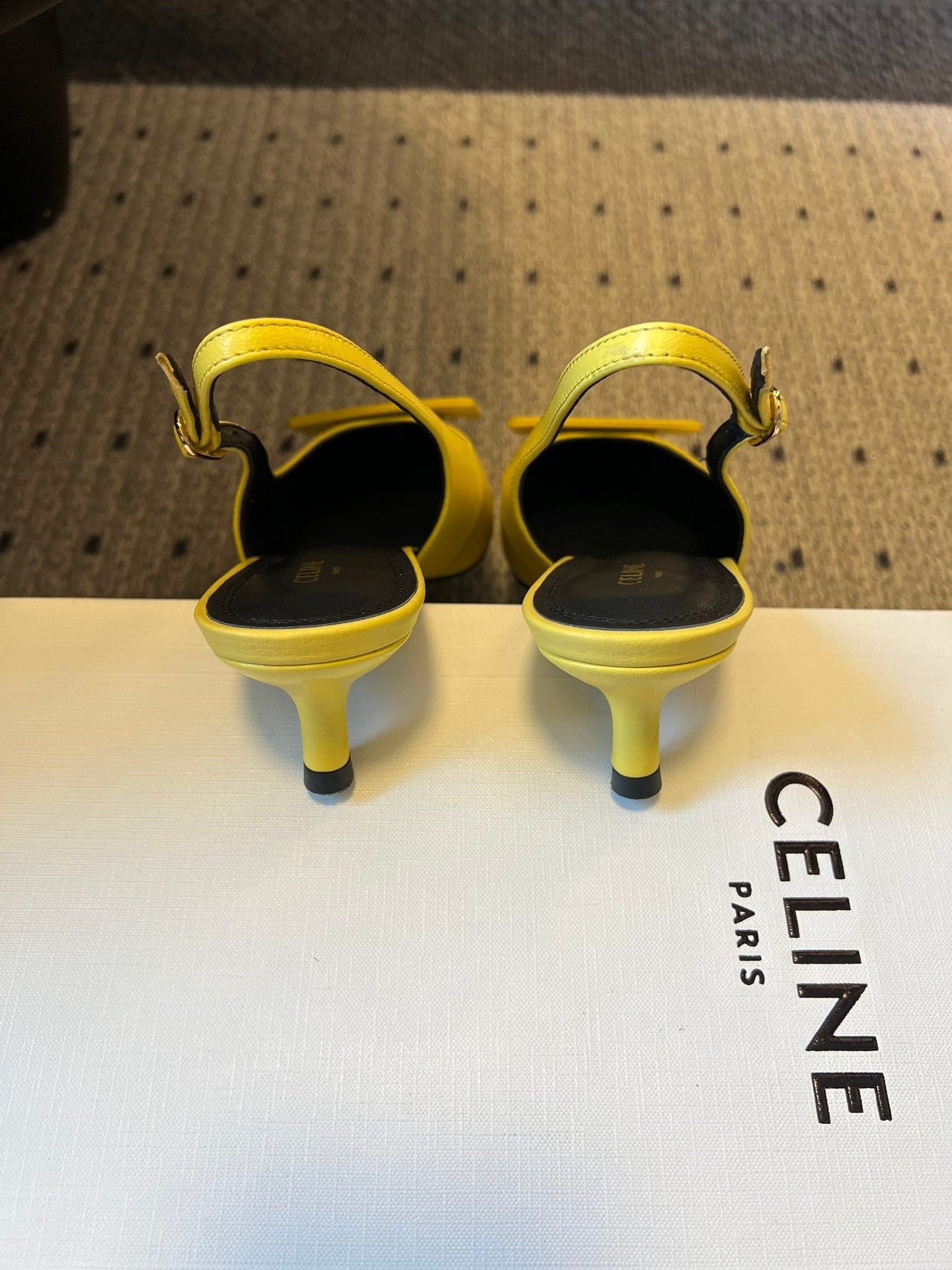 Celine Signature Slingback 5cm Yellow Lambskin 619639