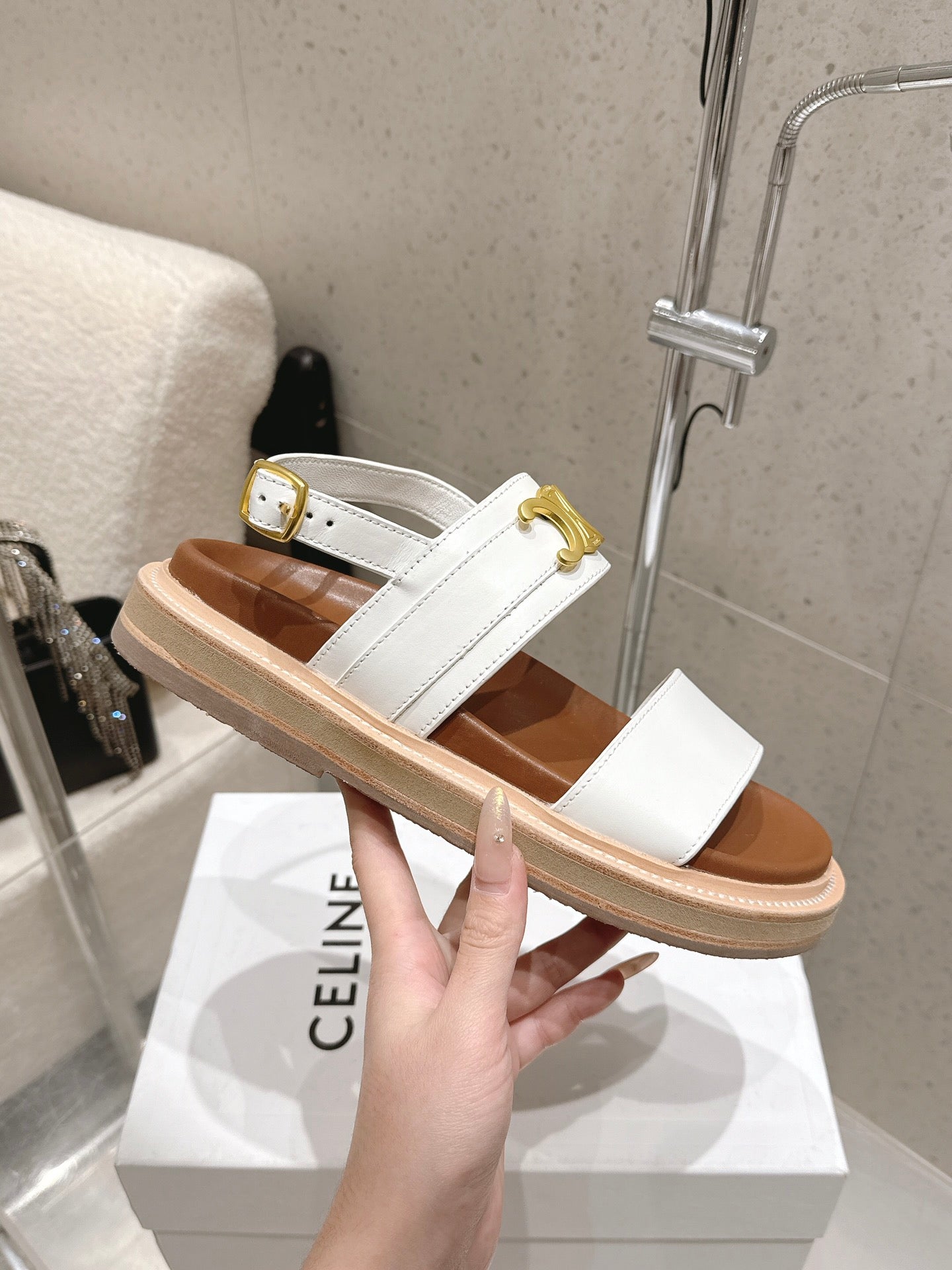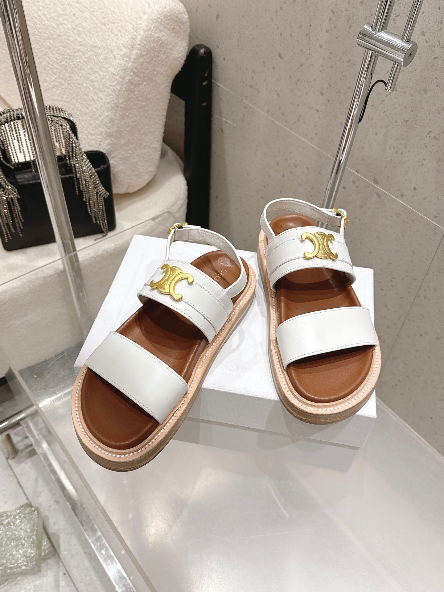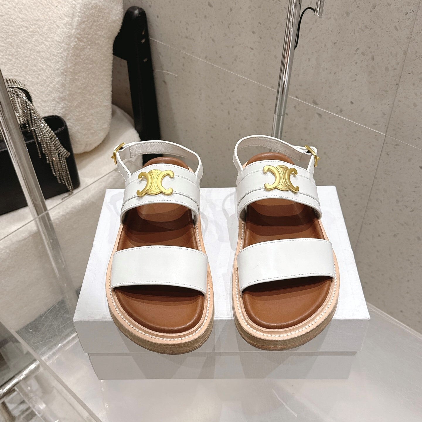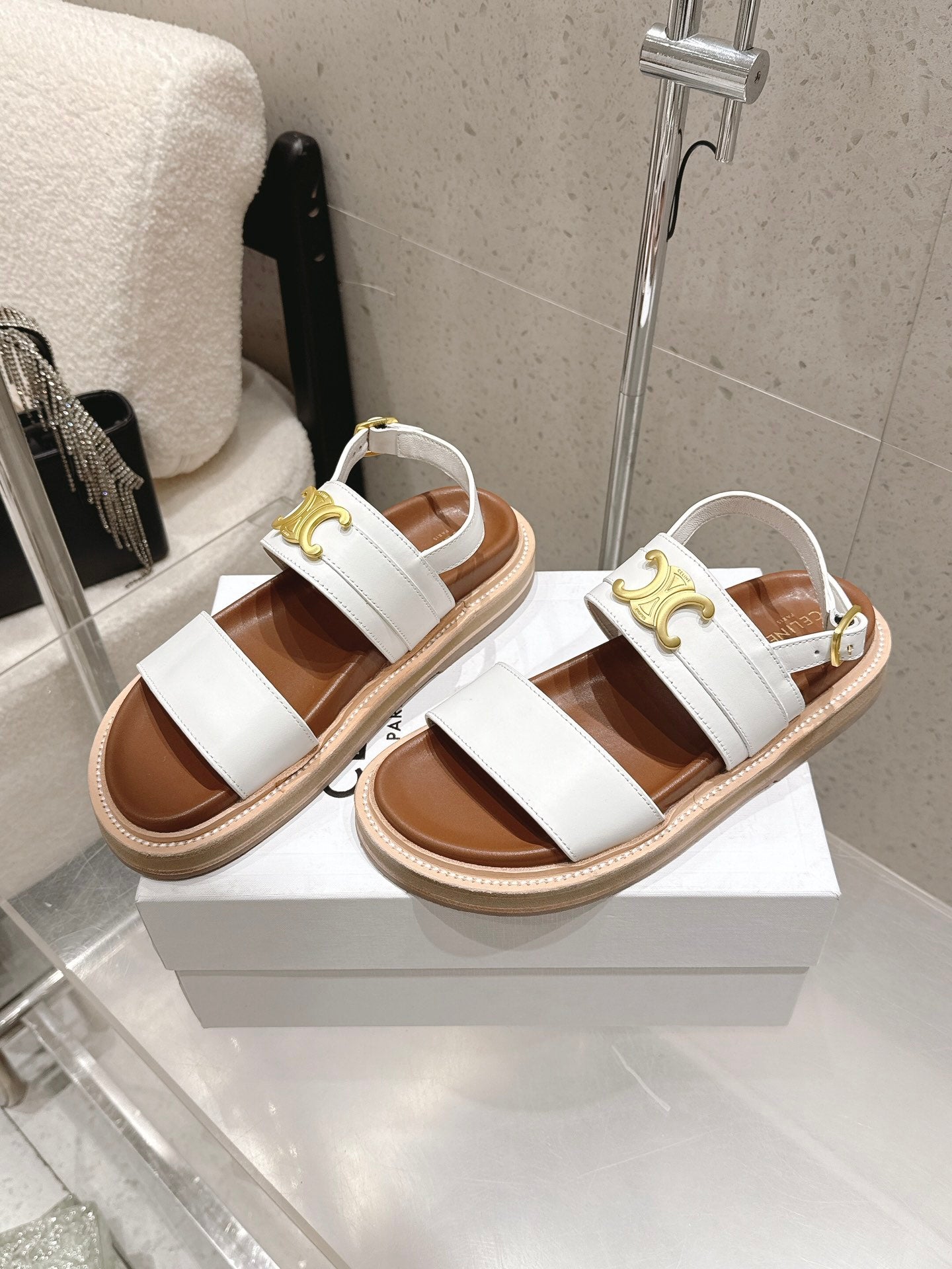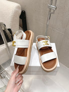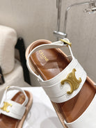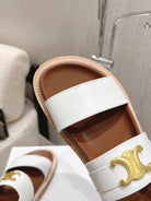 Celine Triomphe Sandals White Brown Calfskin 610939