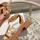 CL Clea Triomphe Gladiator Sandal 40mm Gold Metallic Mix Tan Calfskin 600369