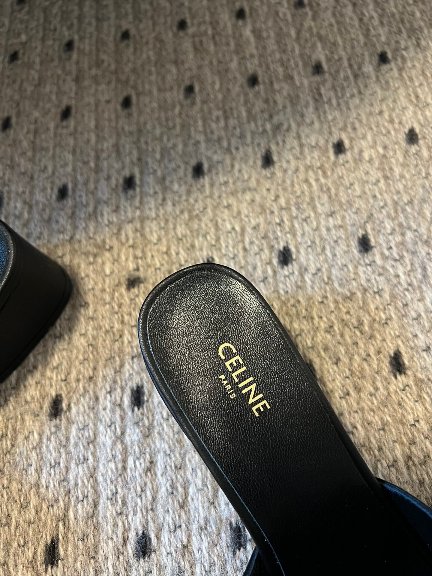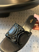 CLEMENCE MULE IN BLACK LAMBSKIN AND PATENT CALFSKIN