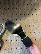 CLEMENCE MULE IN WHITE LAMBSKIN AND PATENT CALFSKIN