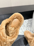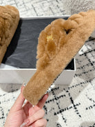 CROSS STRAP SLIPPER IN CAMEL BROWN SHEARLING