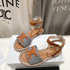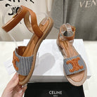 LYMPIA SANDAL IN TRIOMPHE MACCRAMÉ COTTON & CALFSKIN BRONZE BROWN/NAVY