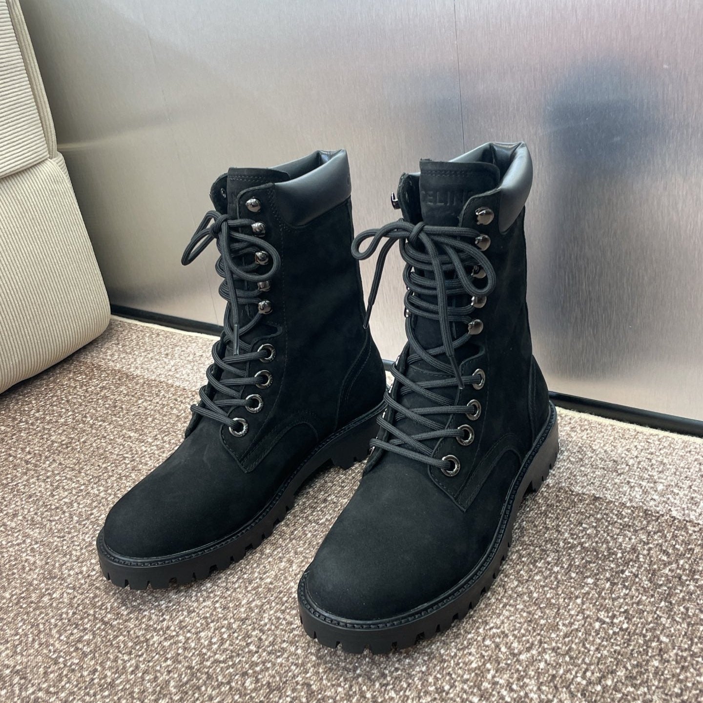 CELINE Kurt Lace-Up Mid Boot Black Nubuck Calfskin 452785