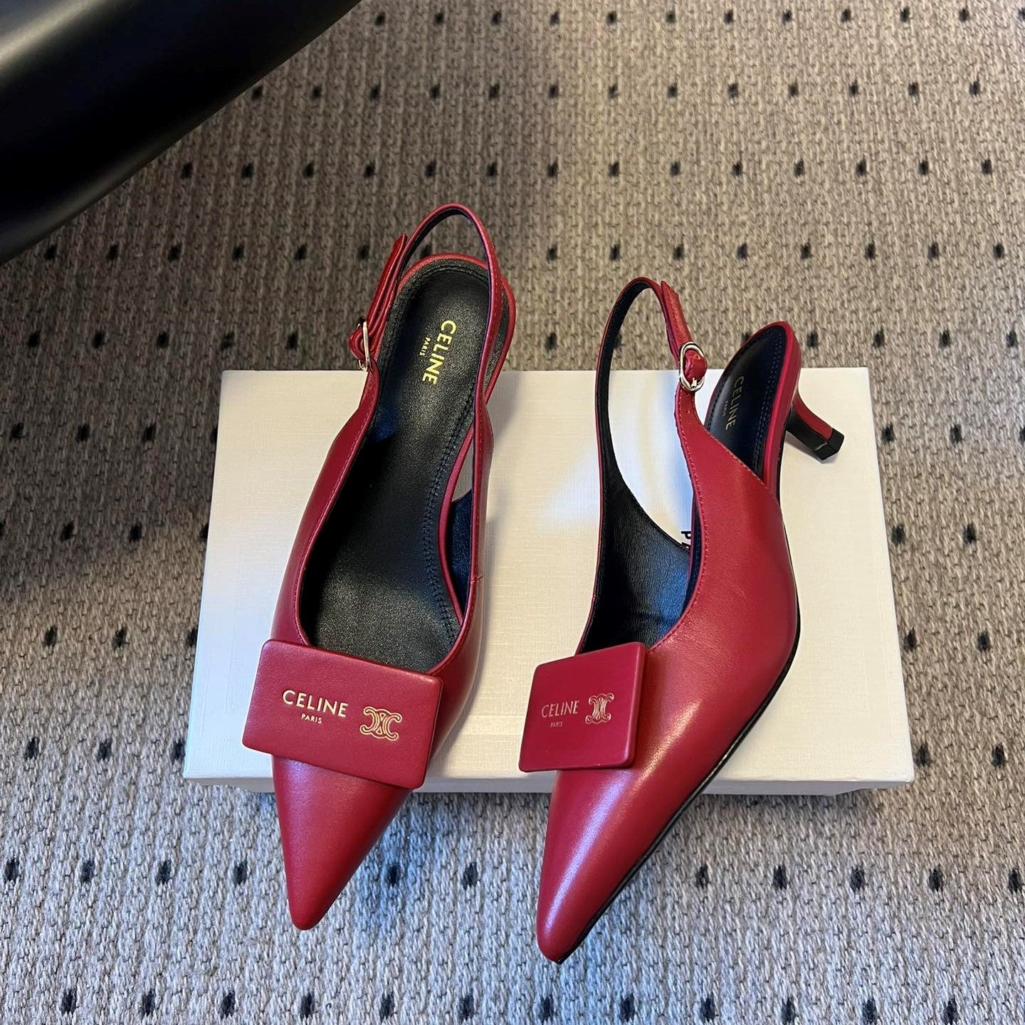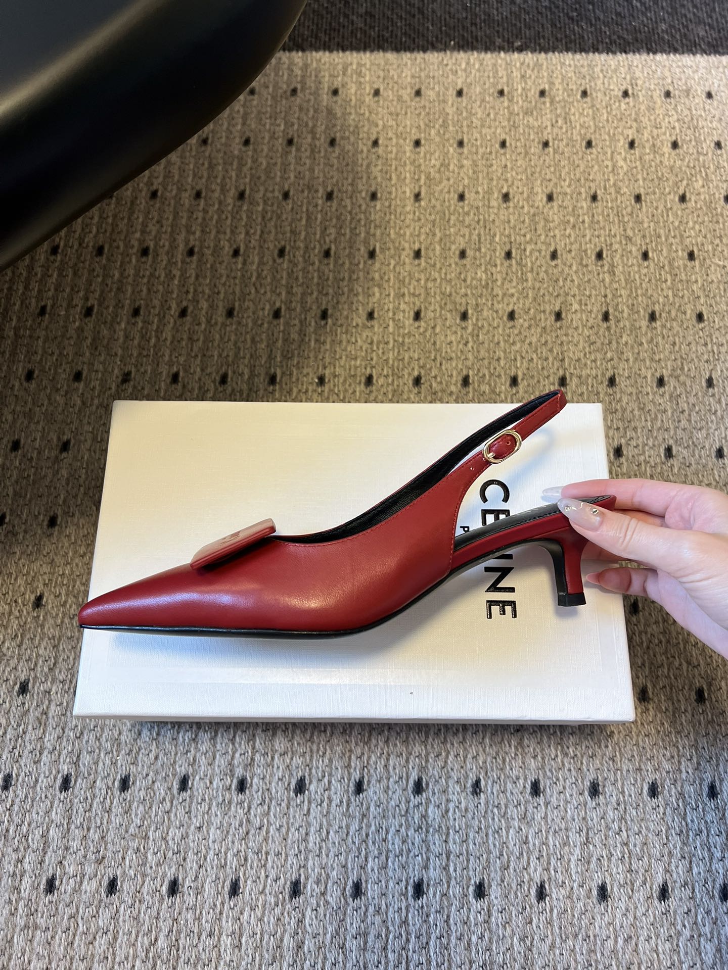 Celine Signature Slingback 5cm Red Lambskin 619635