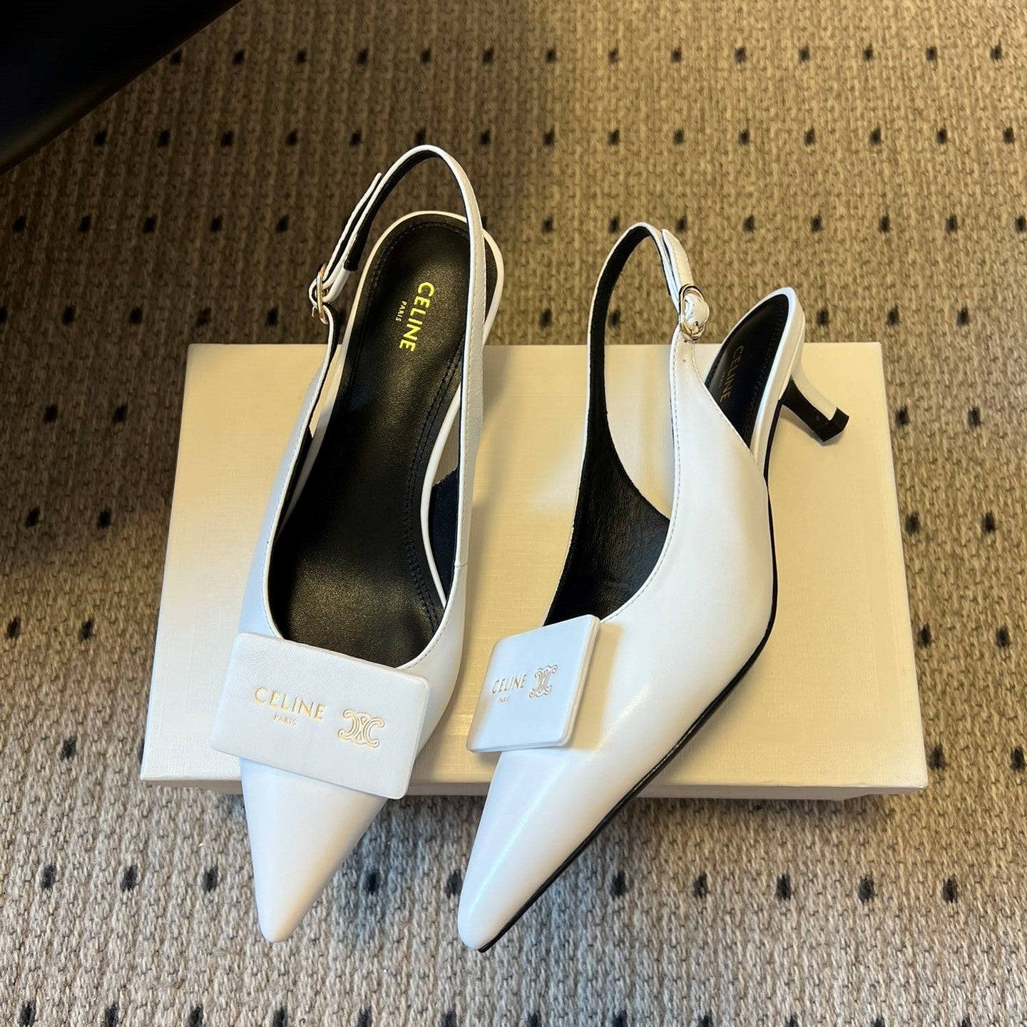 Celine Signature Slingback 5cm White Lambskin 619636