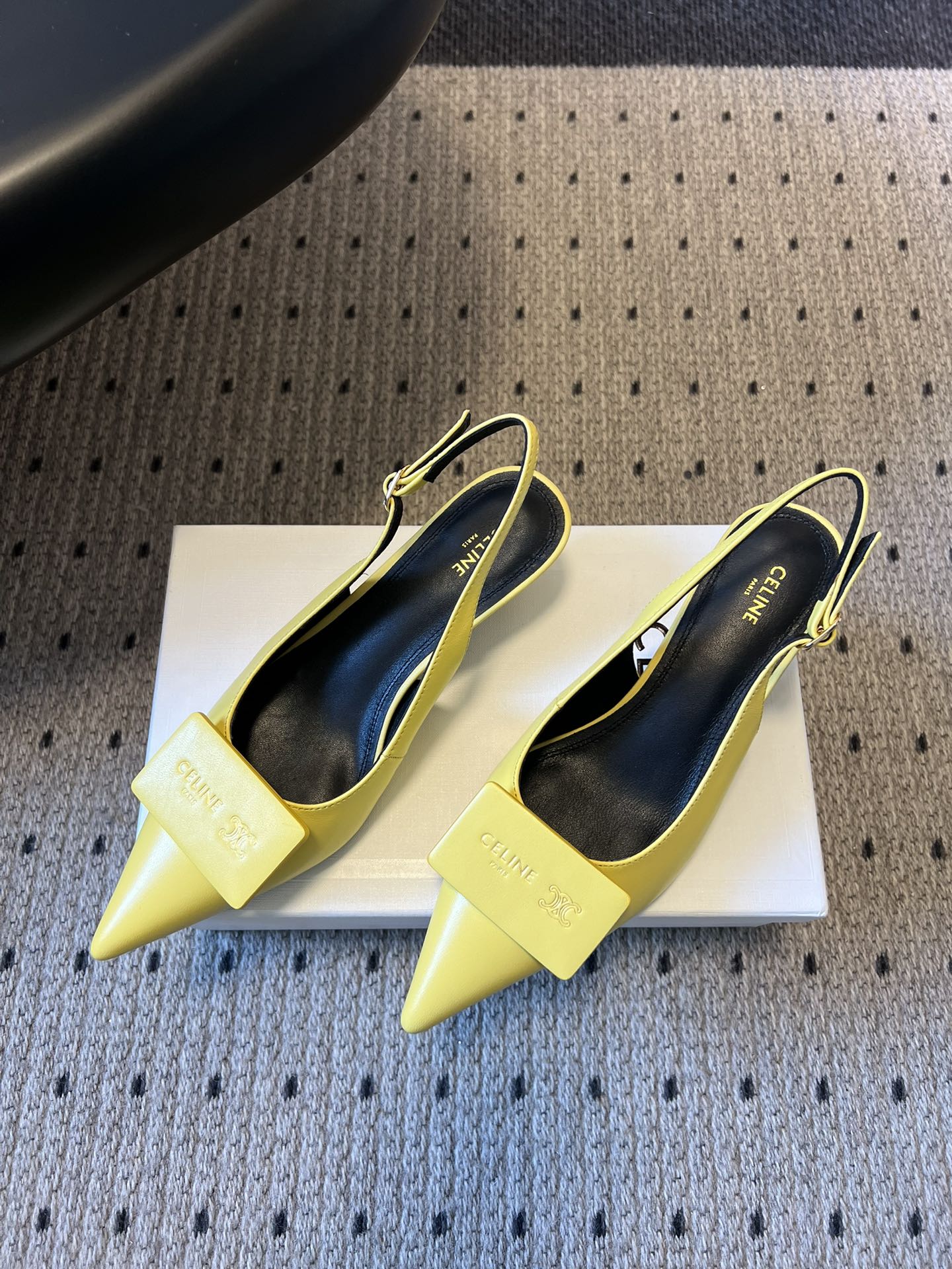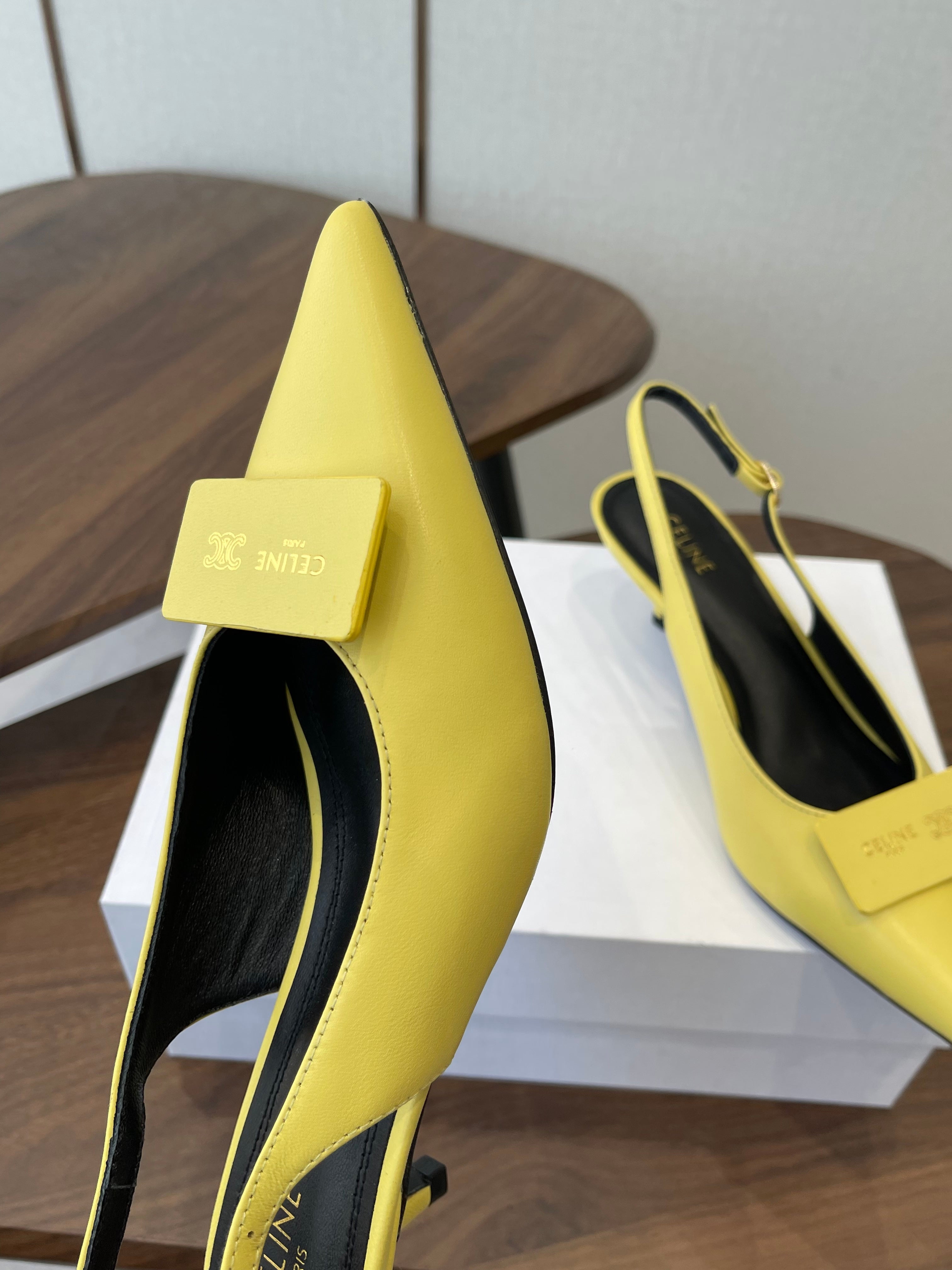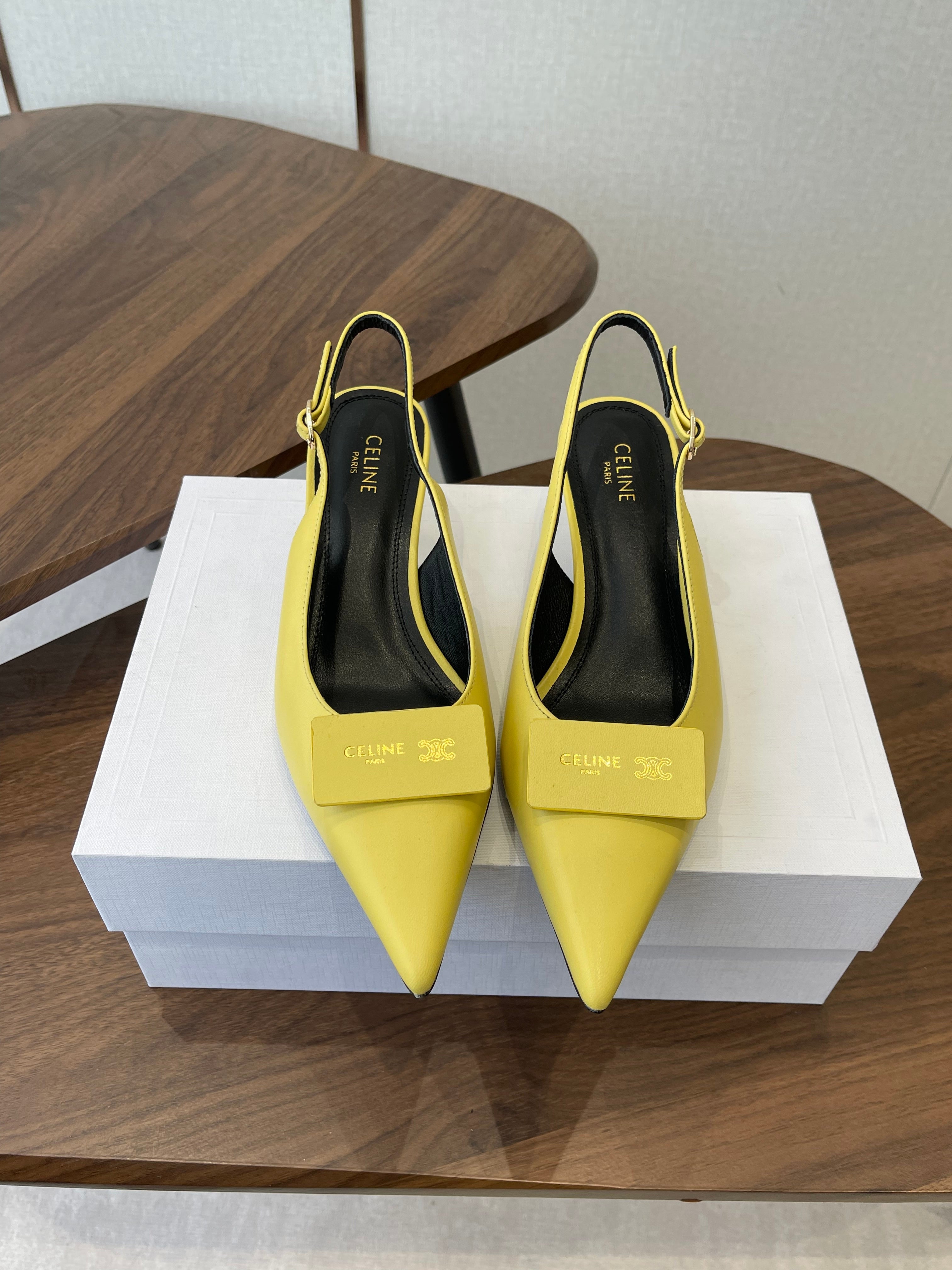 Celine Signature Slingback 5cm Yellow Lambskin 619639