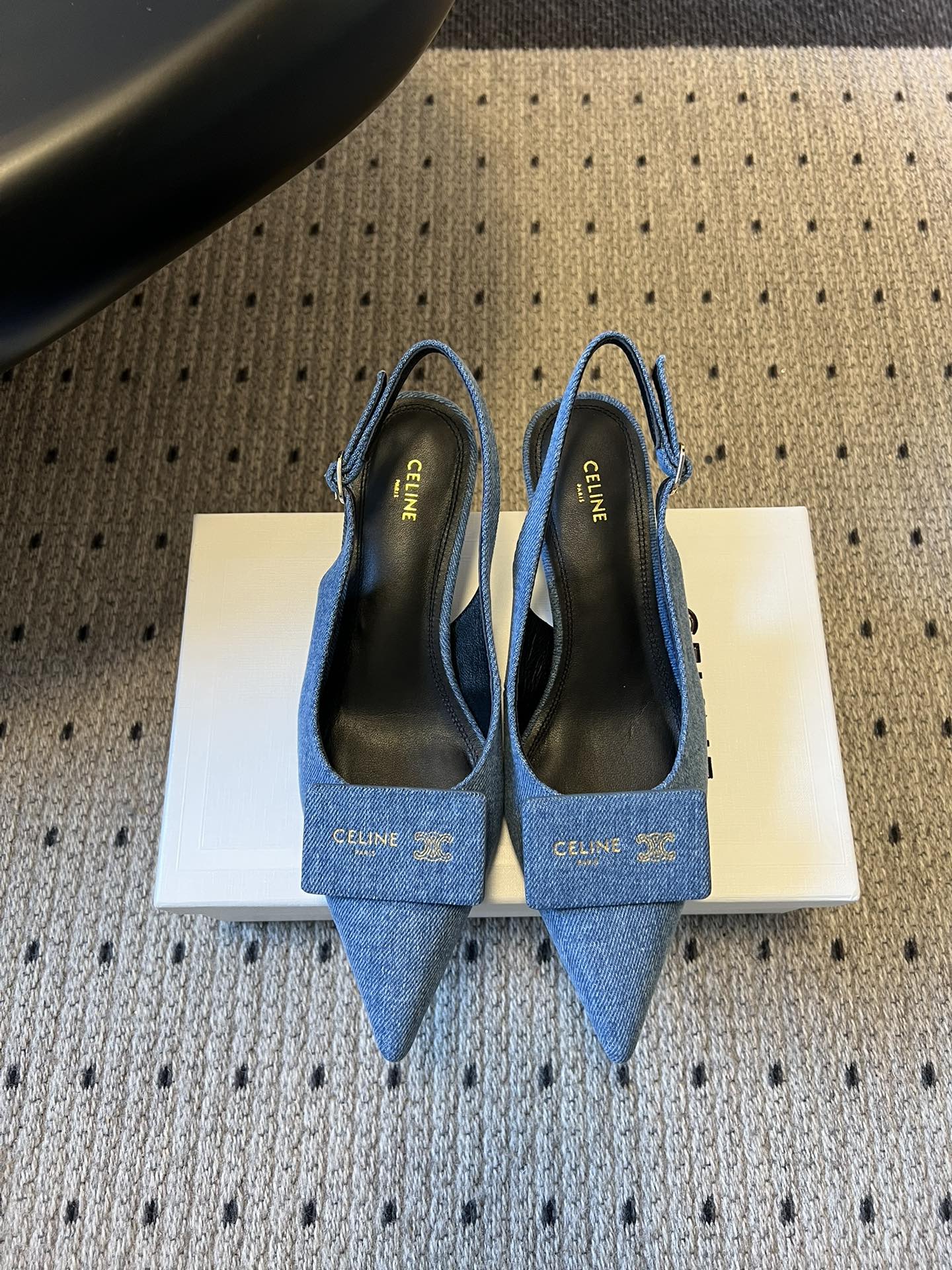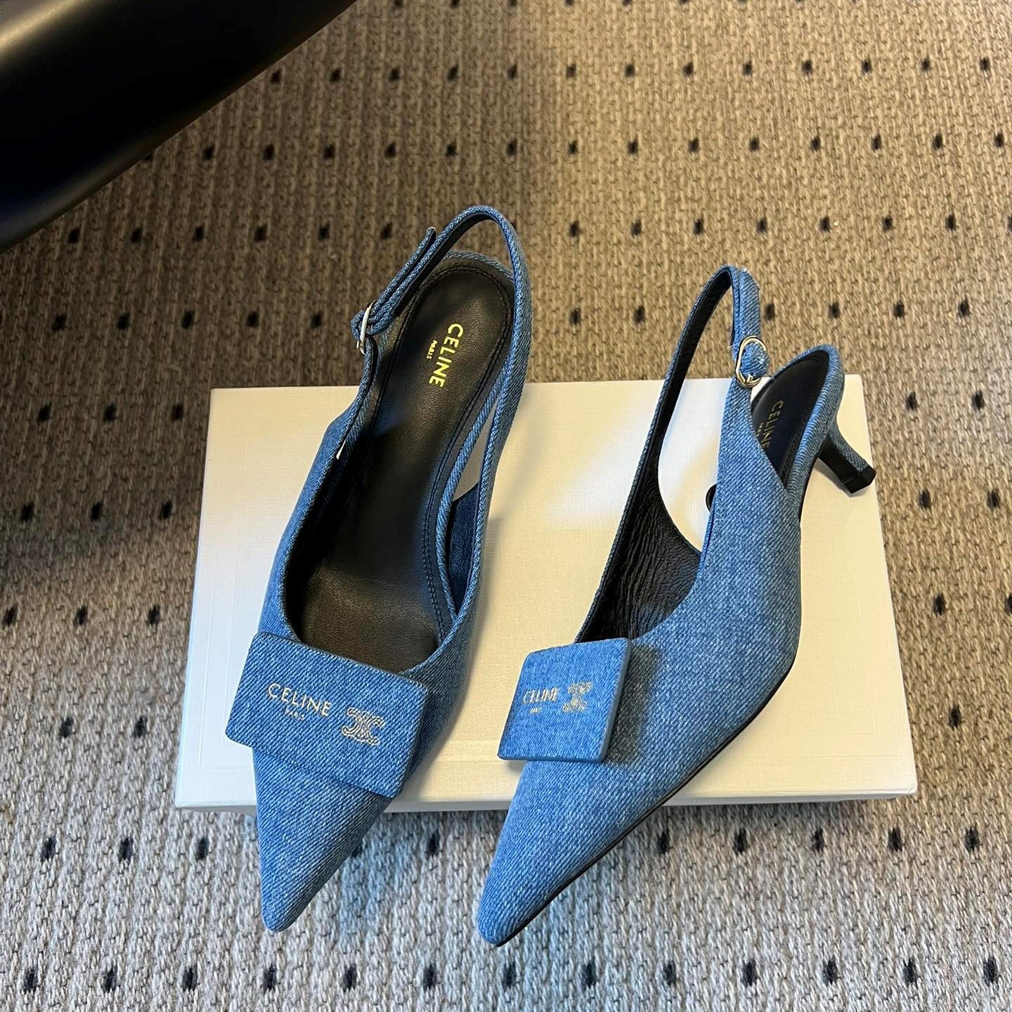 Celine Signature Slingback 5cm Blue Denim 619638