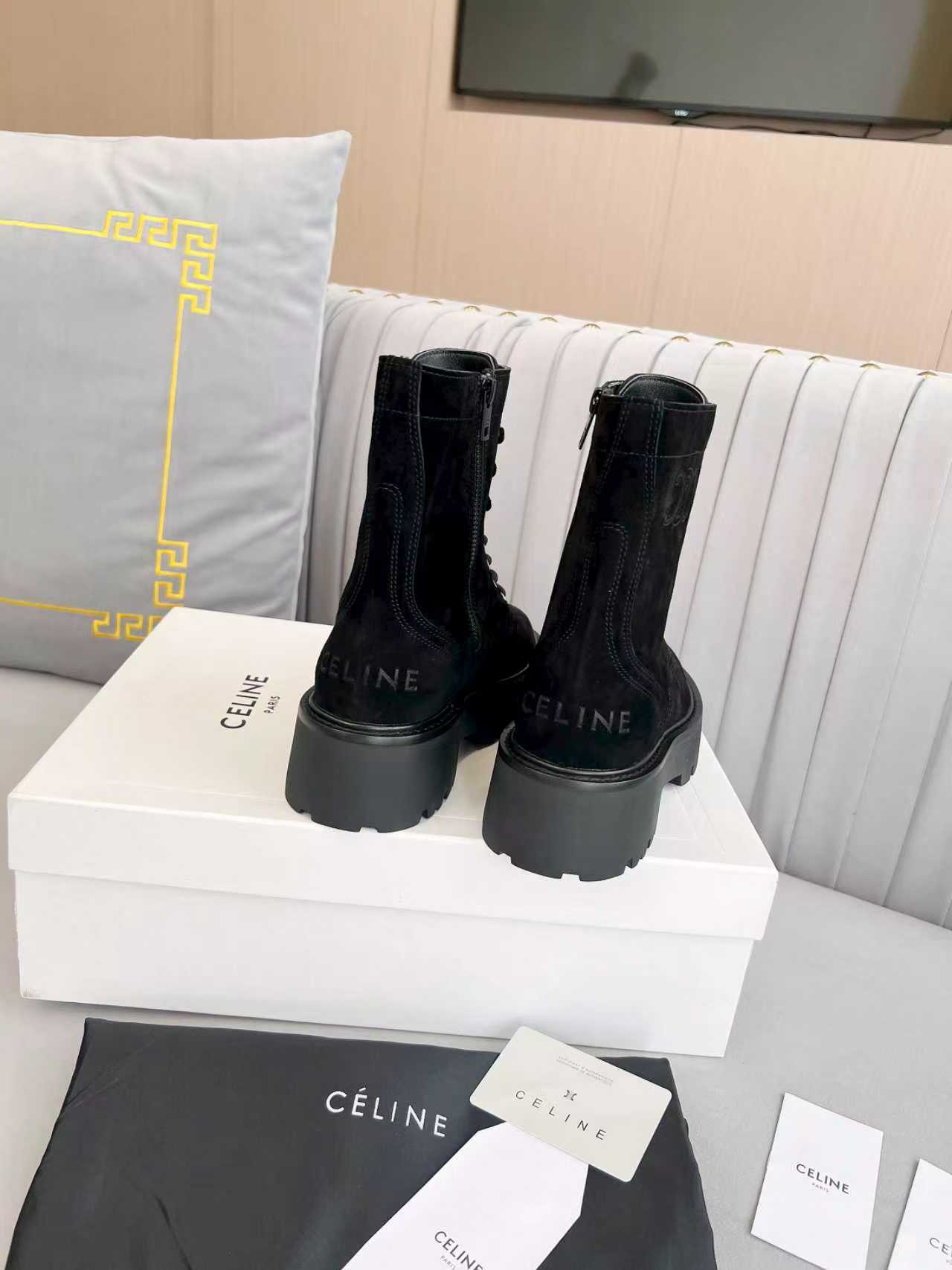 Celine 25s Triomphe Rangers Mid Lace-Up Boot Black Suede