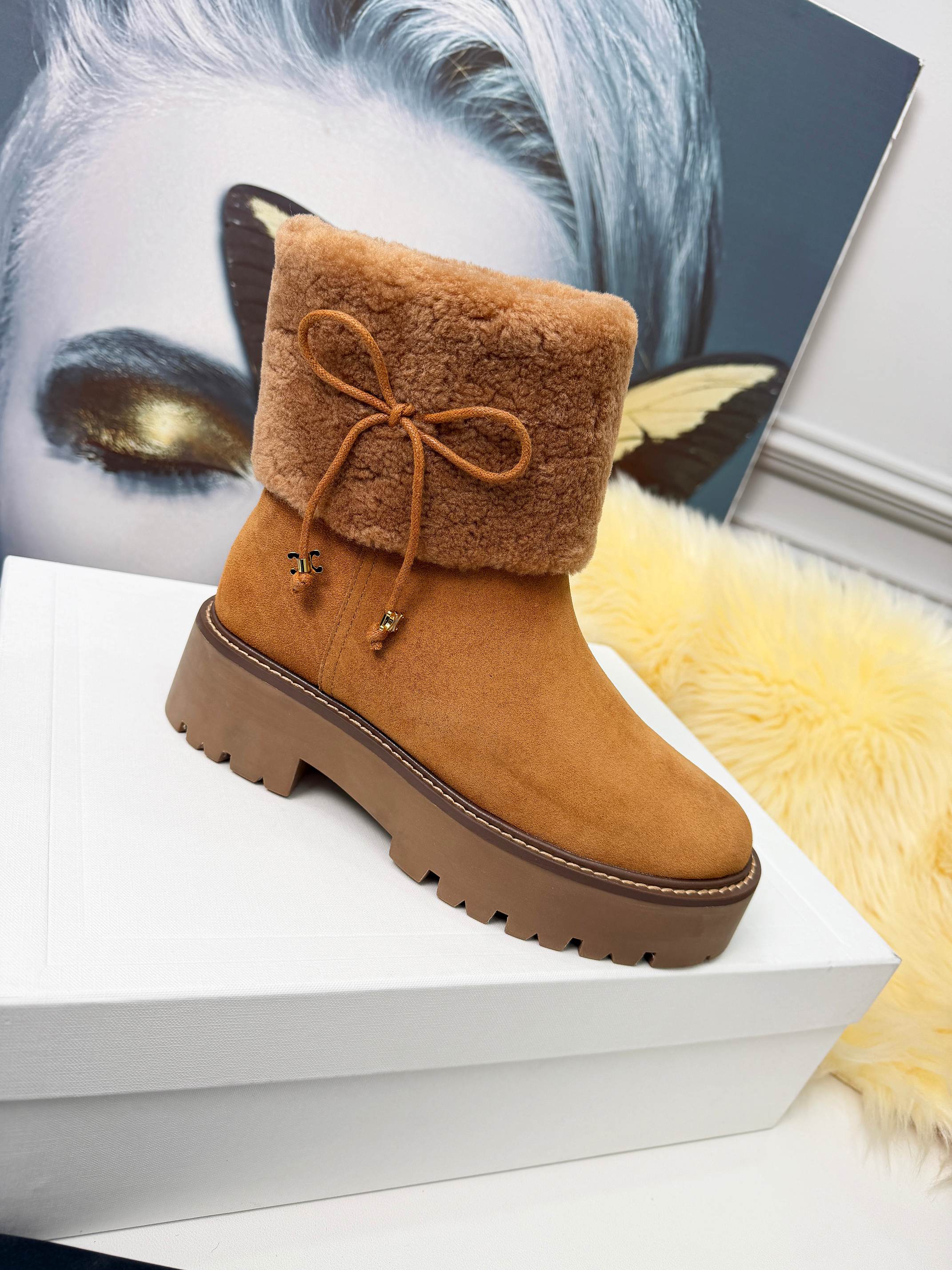 Celin Spring Runway Ankle Boots Brown Fur Suede 567510
