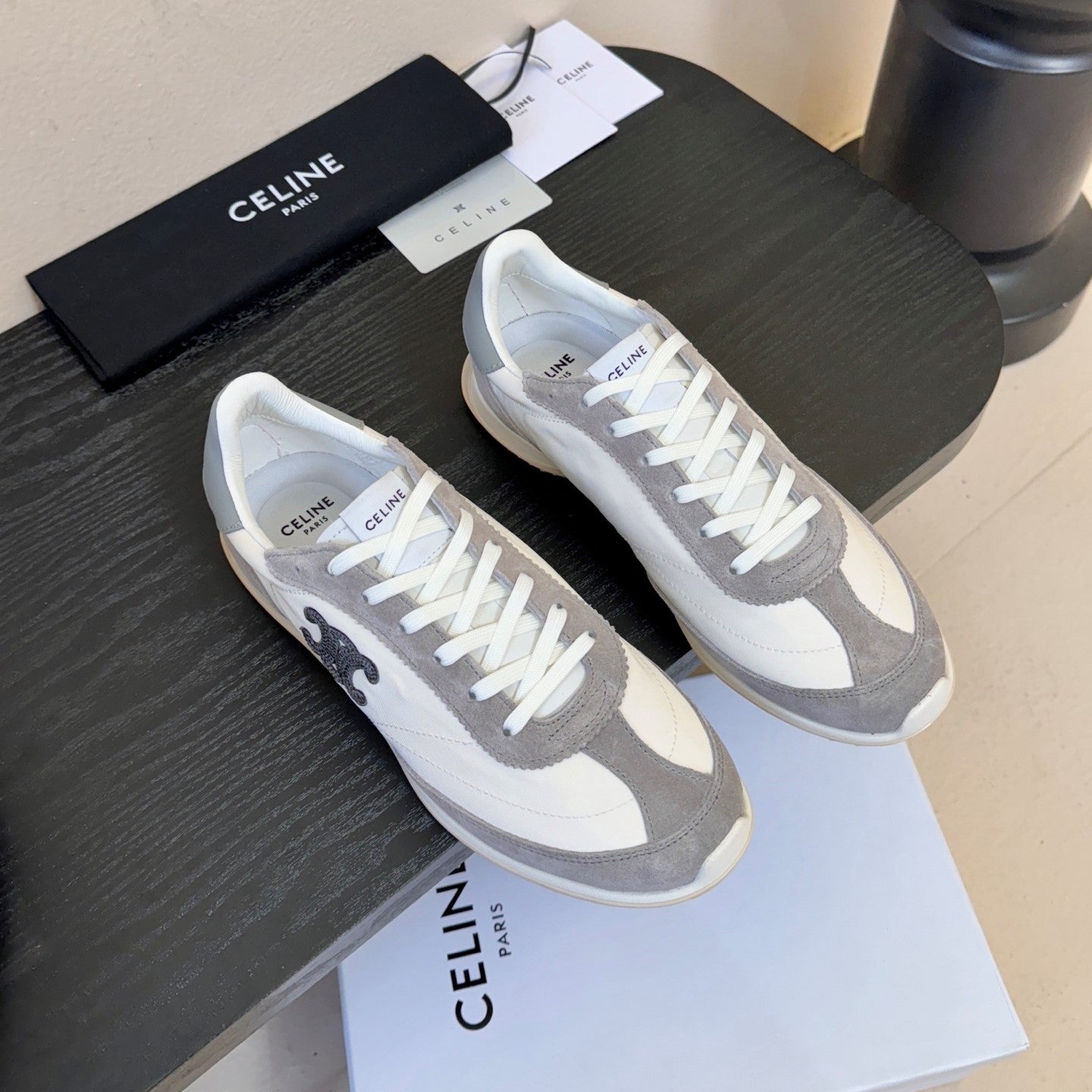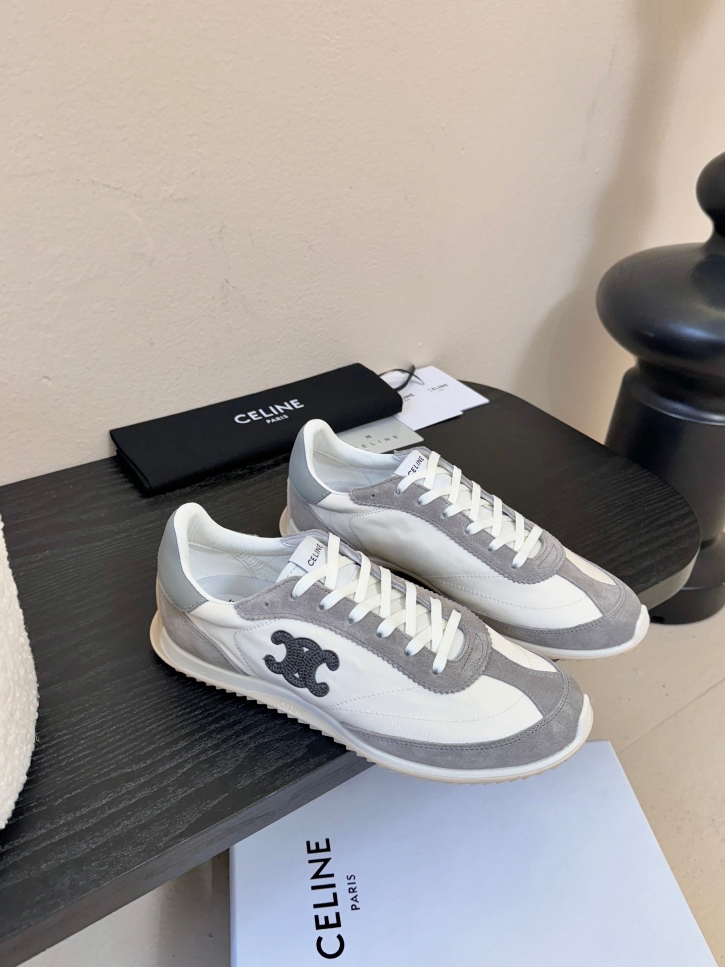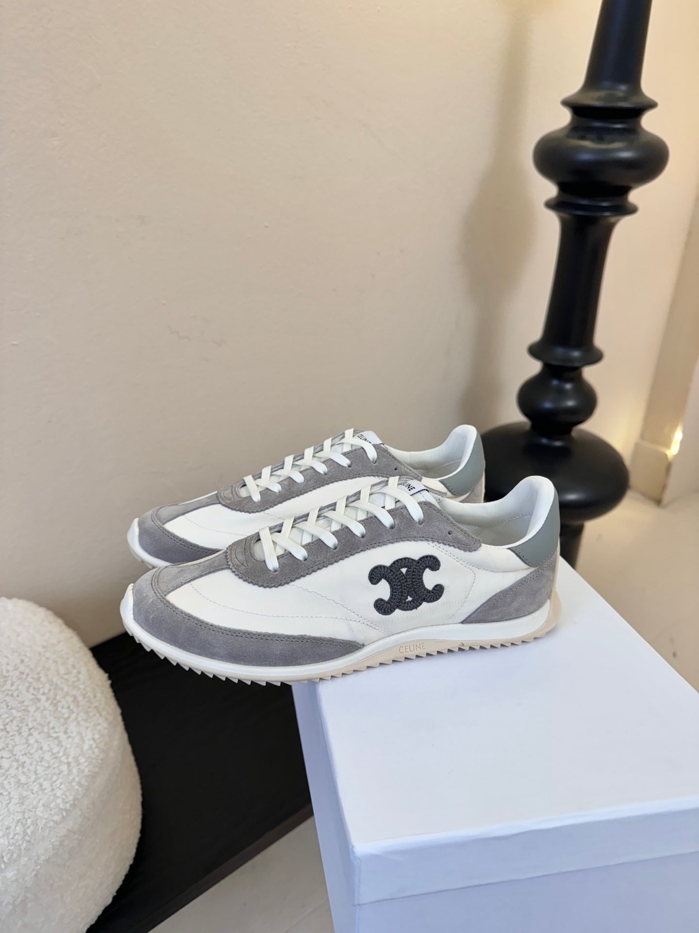 Celine Racer Low Top Sneaker Vanila Grey Suede Fabric