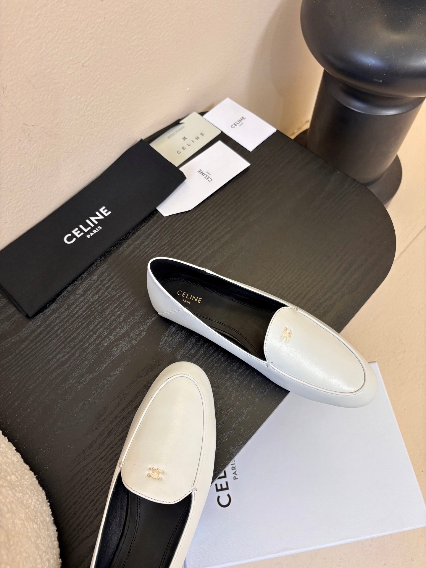 Celine Aura Loafer White Goatskin 606415