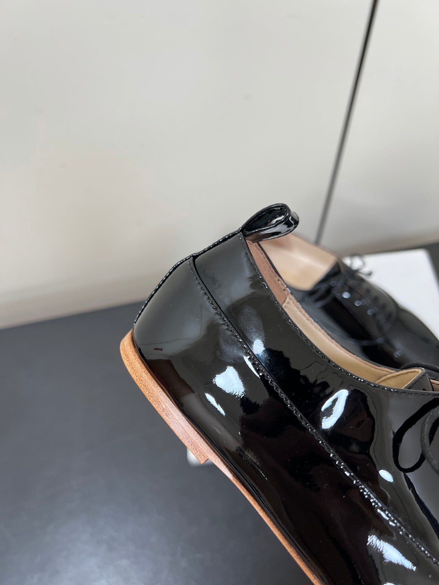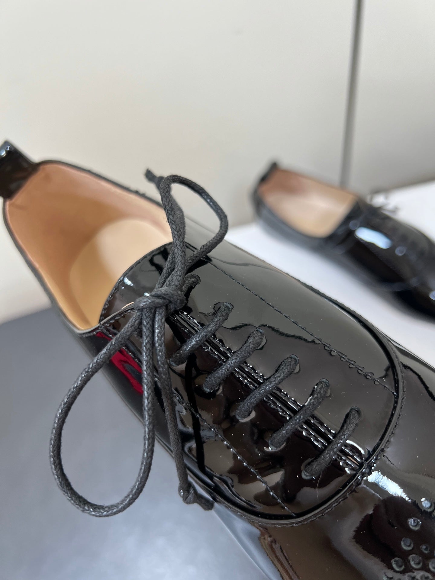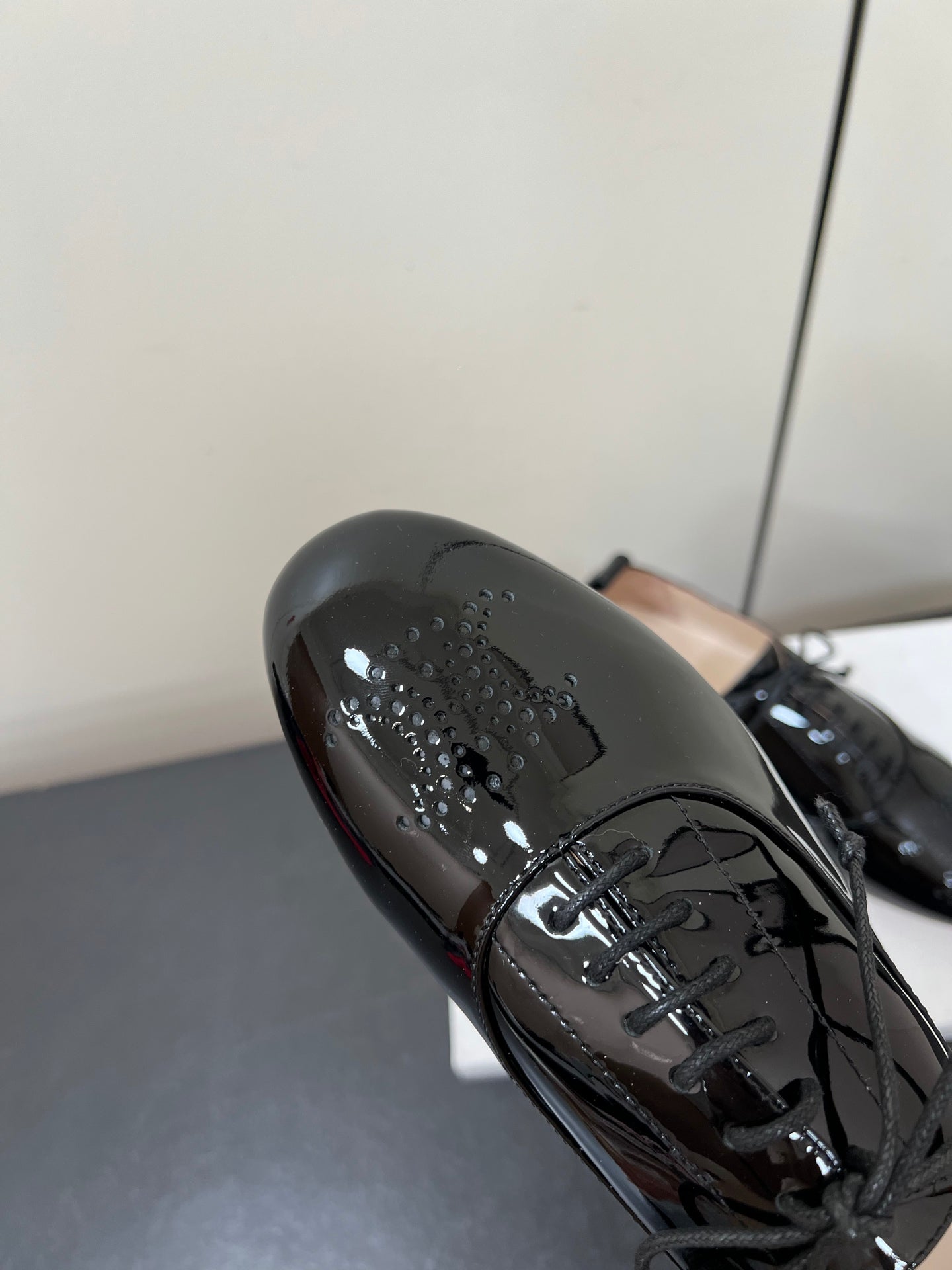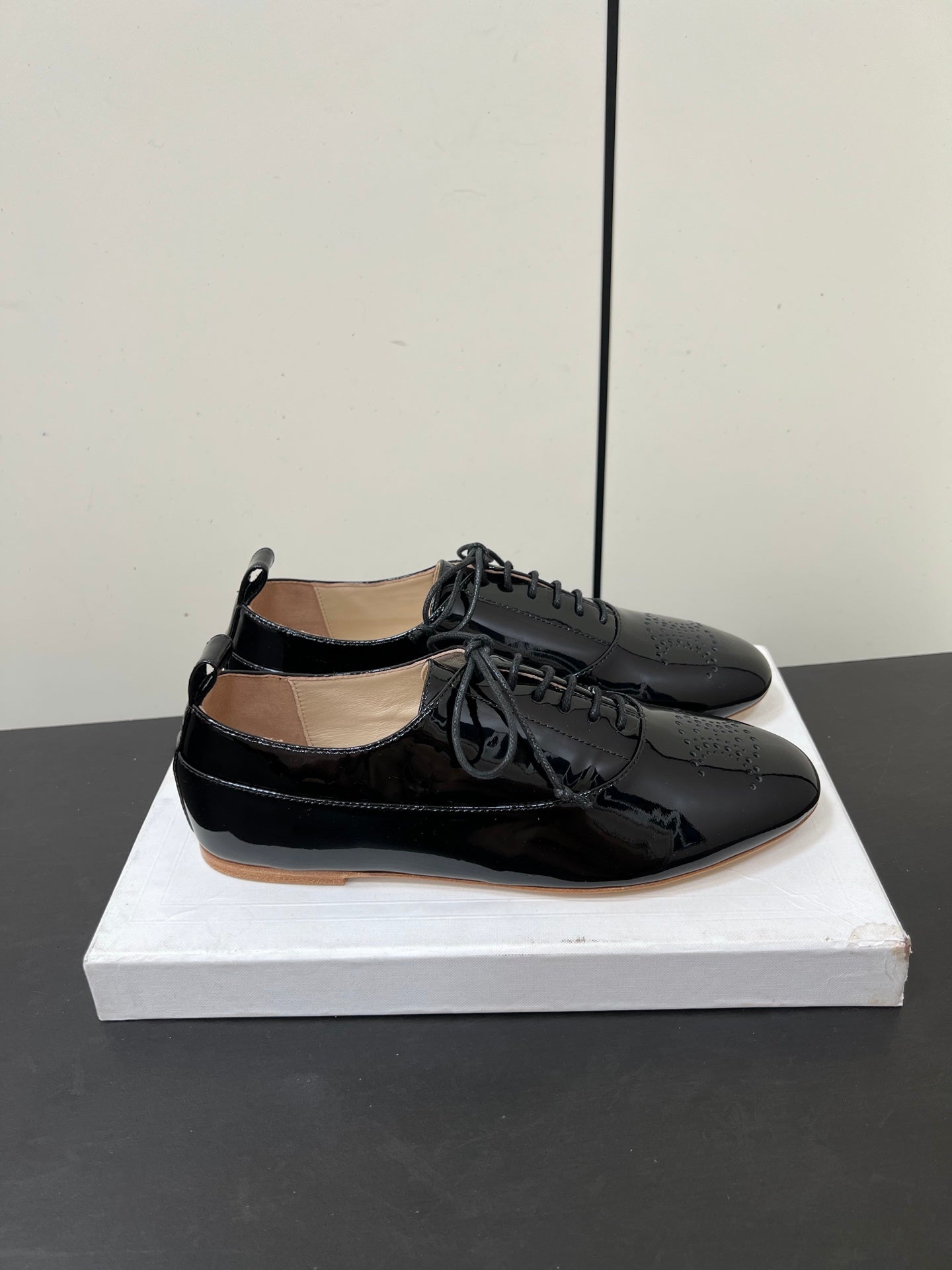 Celine 25 Lise Perforated Triomphe Richelieu Shoe Black Patent Leather 619644