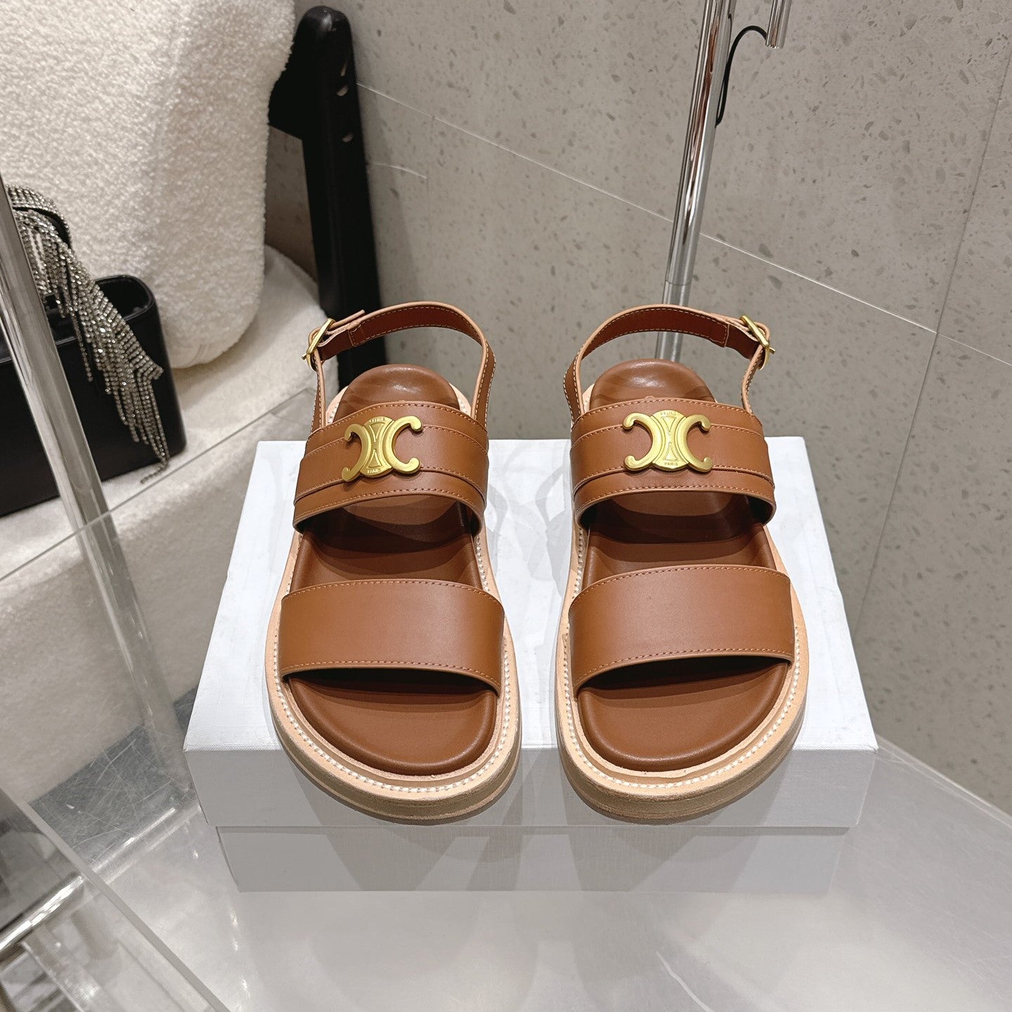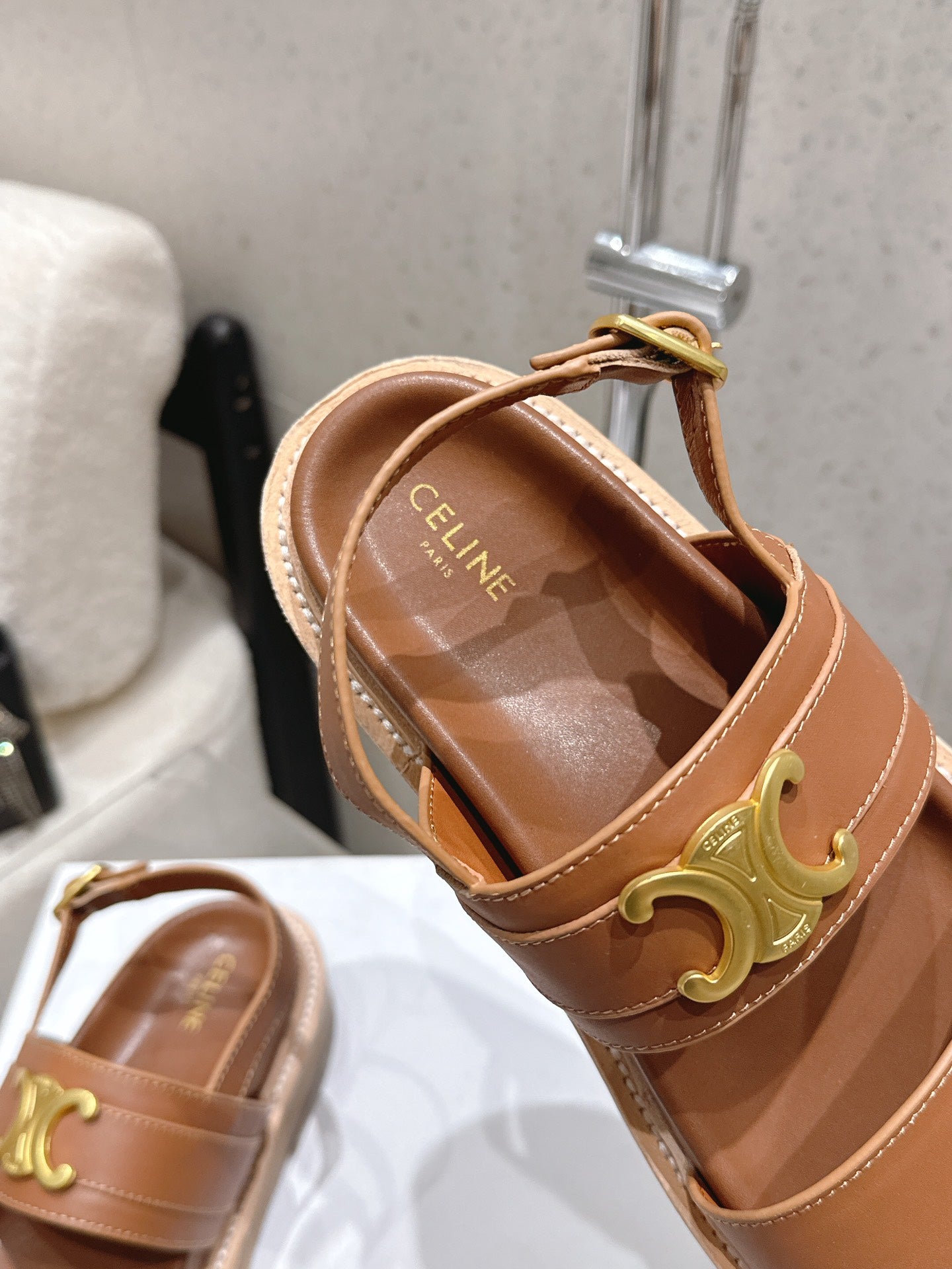 Celine Triomphe Sandals Brown Leather 610943