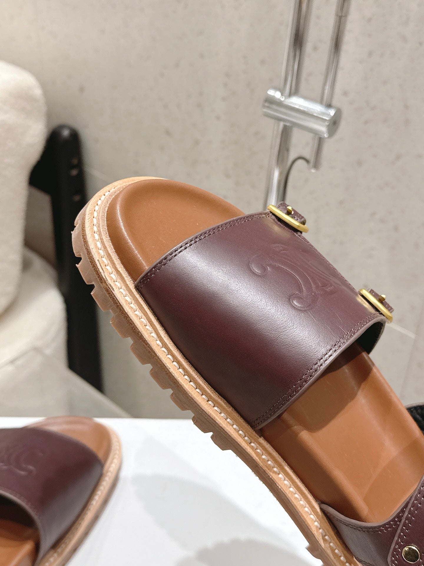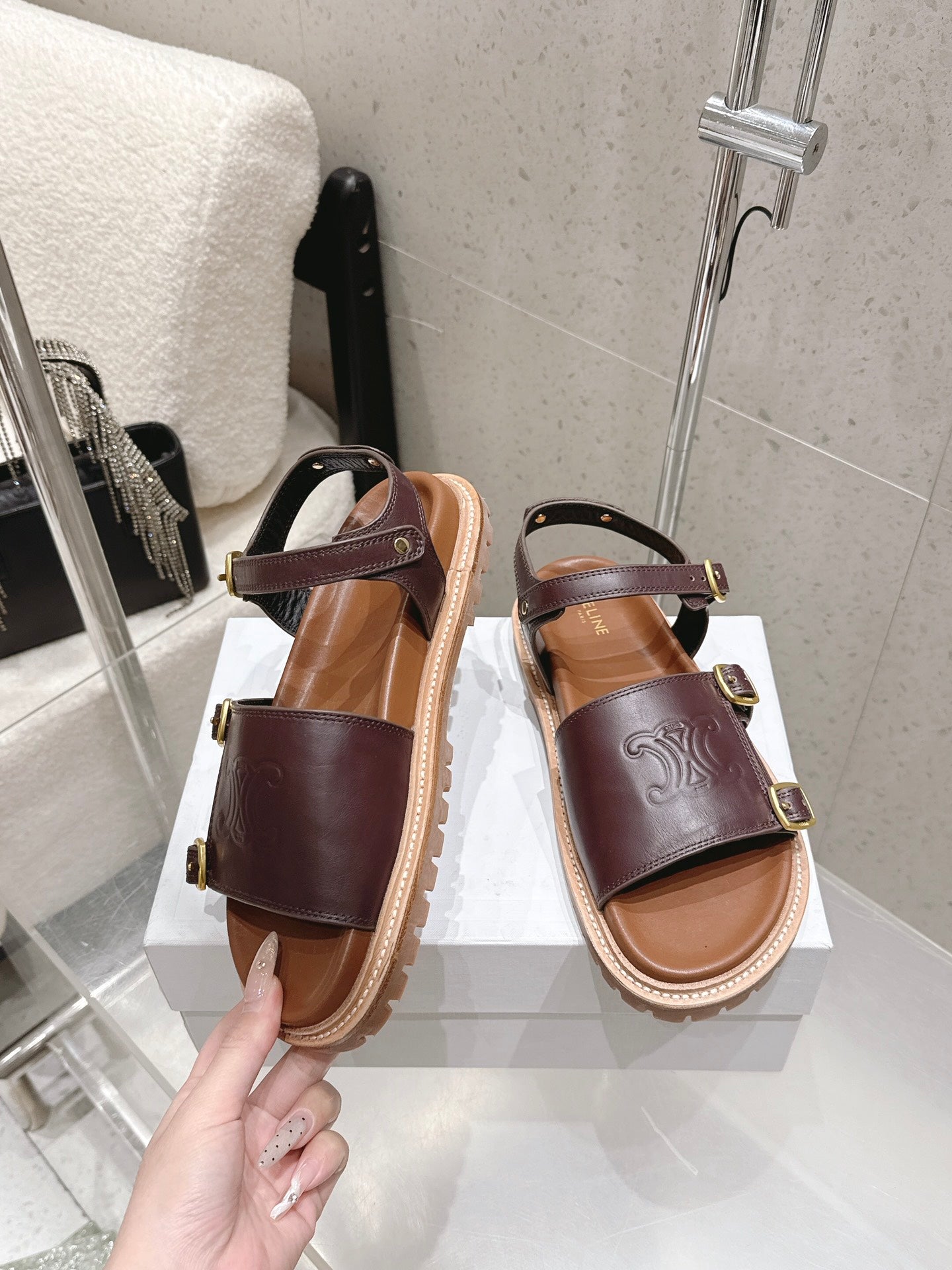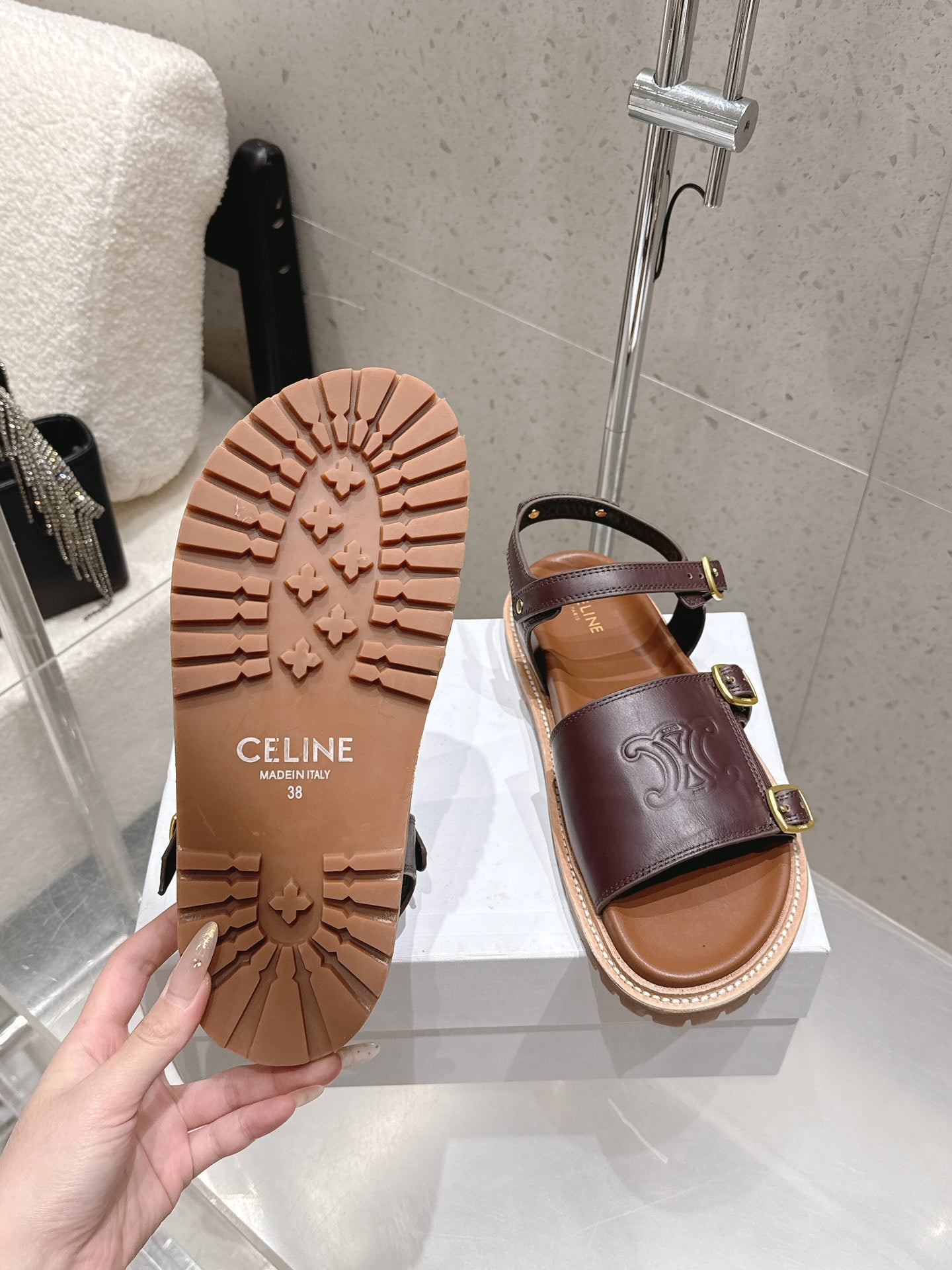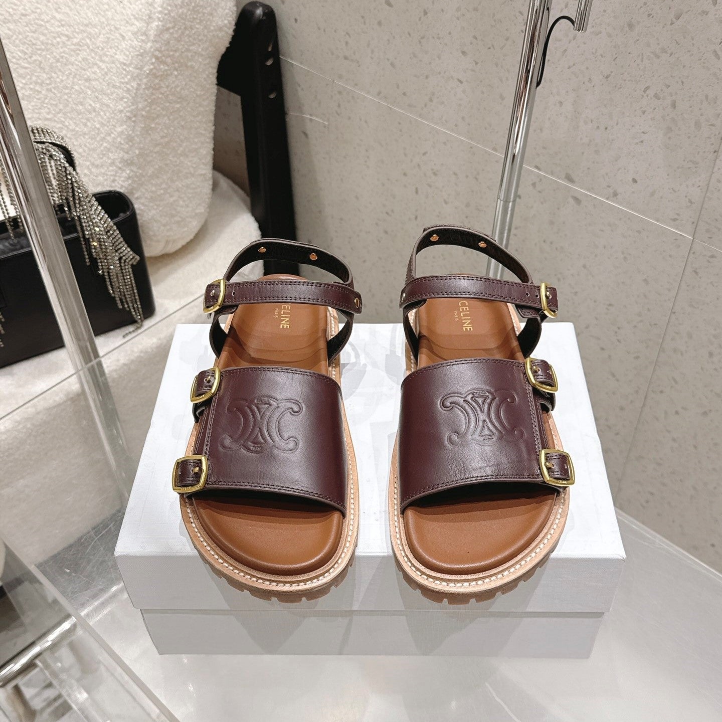 Celine Triomphe Sandals Brown Calfskin 610938