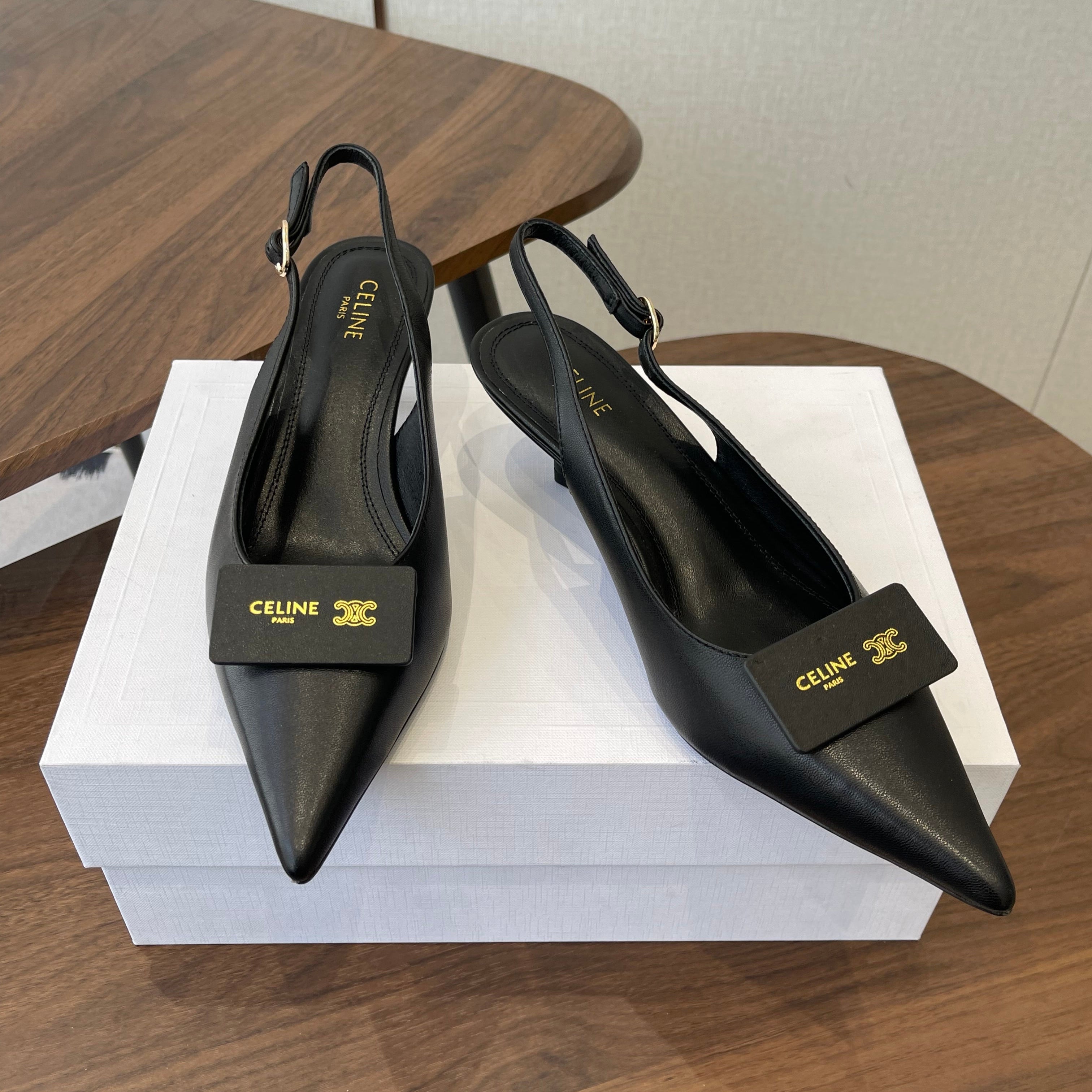 Celine Signature Slingback 5cm Black Lambskin 619637