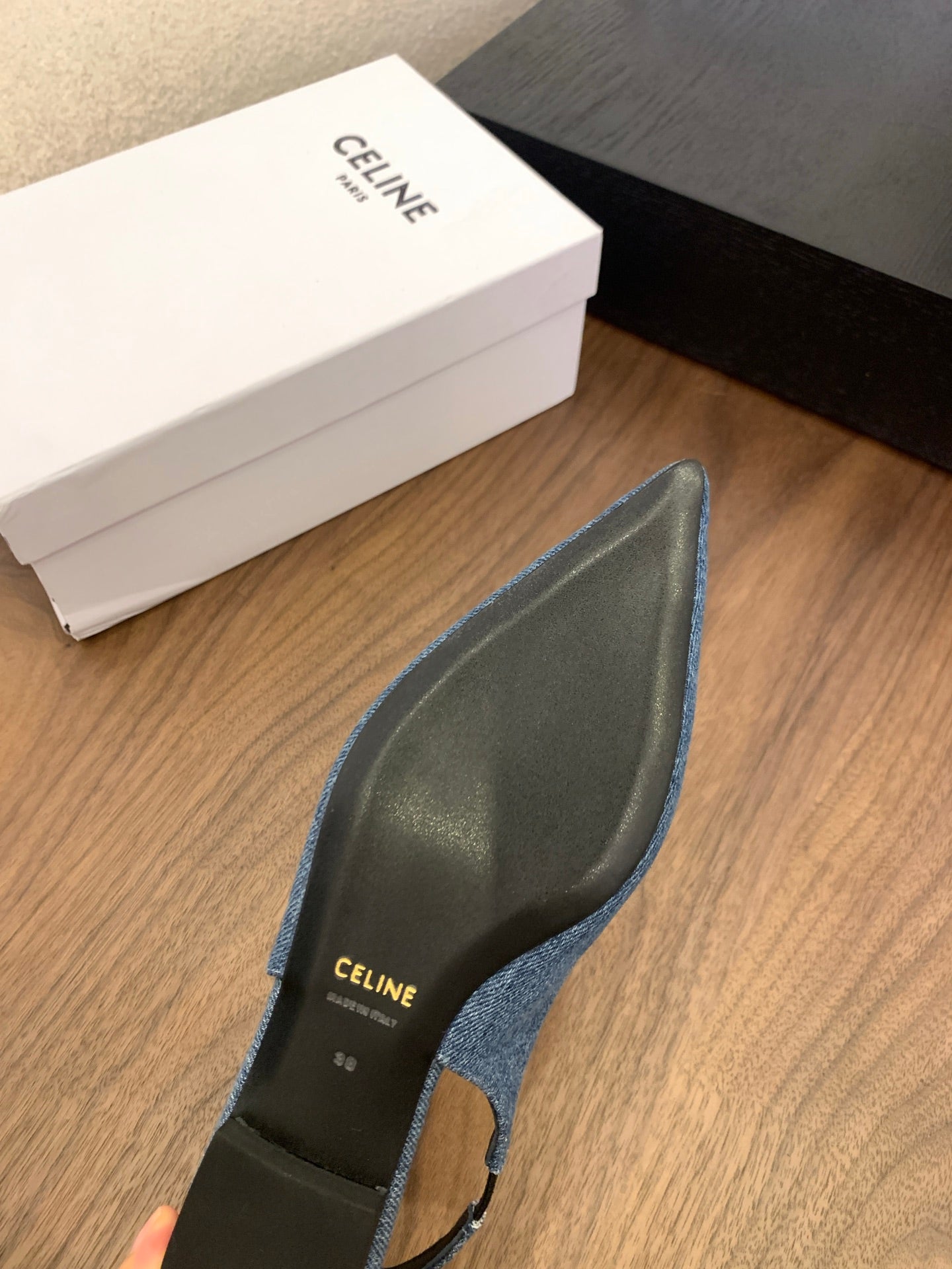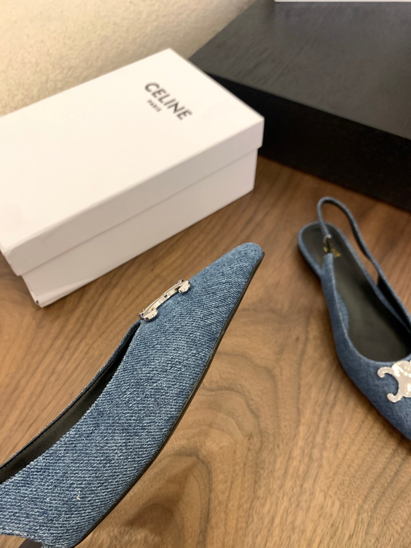 CL Alma Triomphe Slingback Flat In Blue Denim 318795