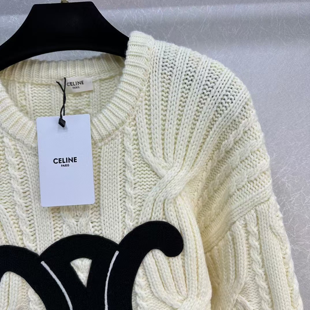 Celin Black Triomphe Cream Sweater