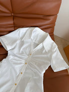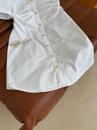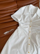 Celine 25 Arc de Triomphe Small Gold Button Pleated Dress White Cotton
