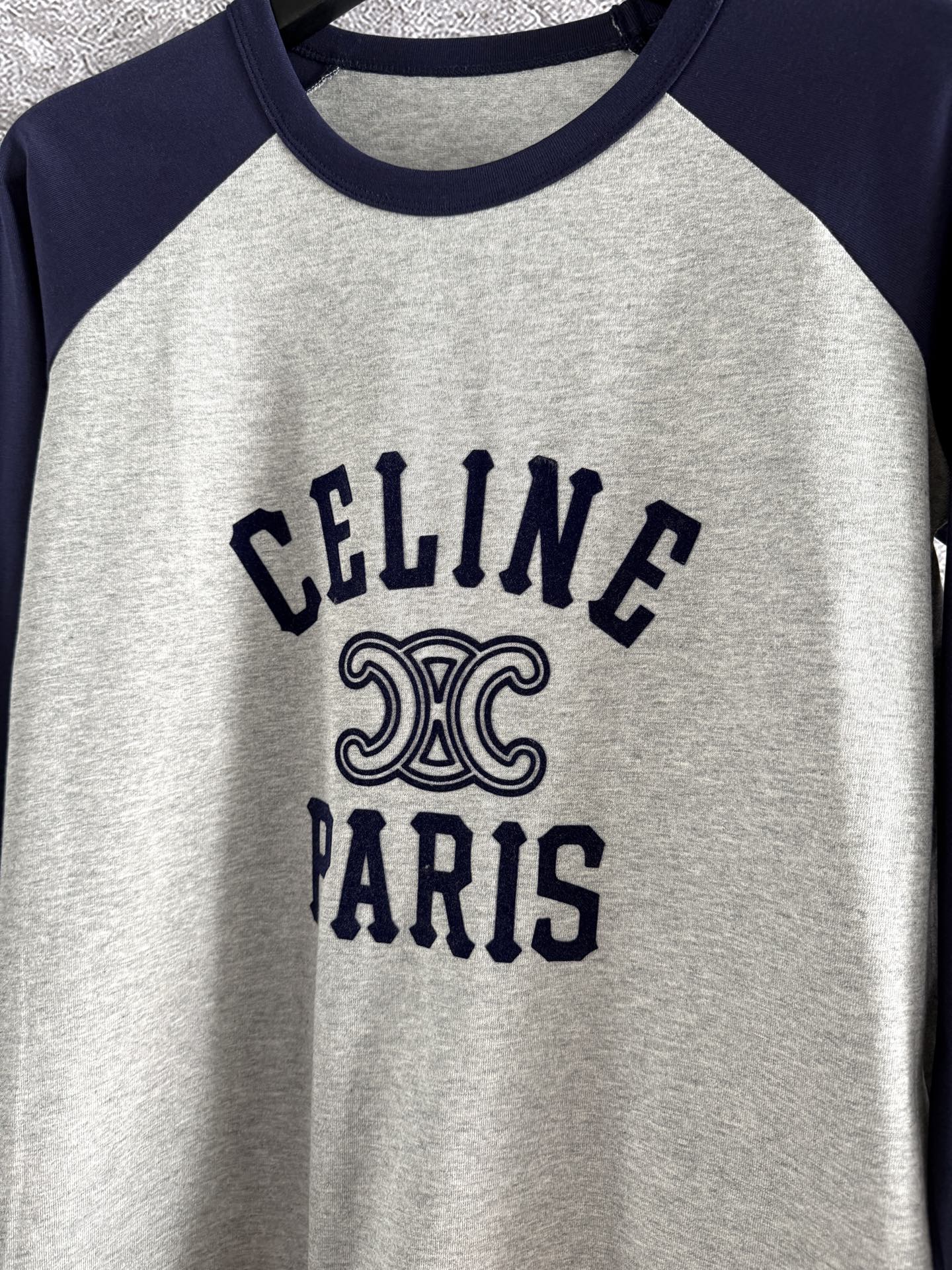 Celine 25 Flocked T-shirt Gray mix Navy Blue Cotton