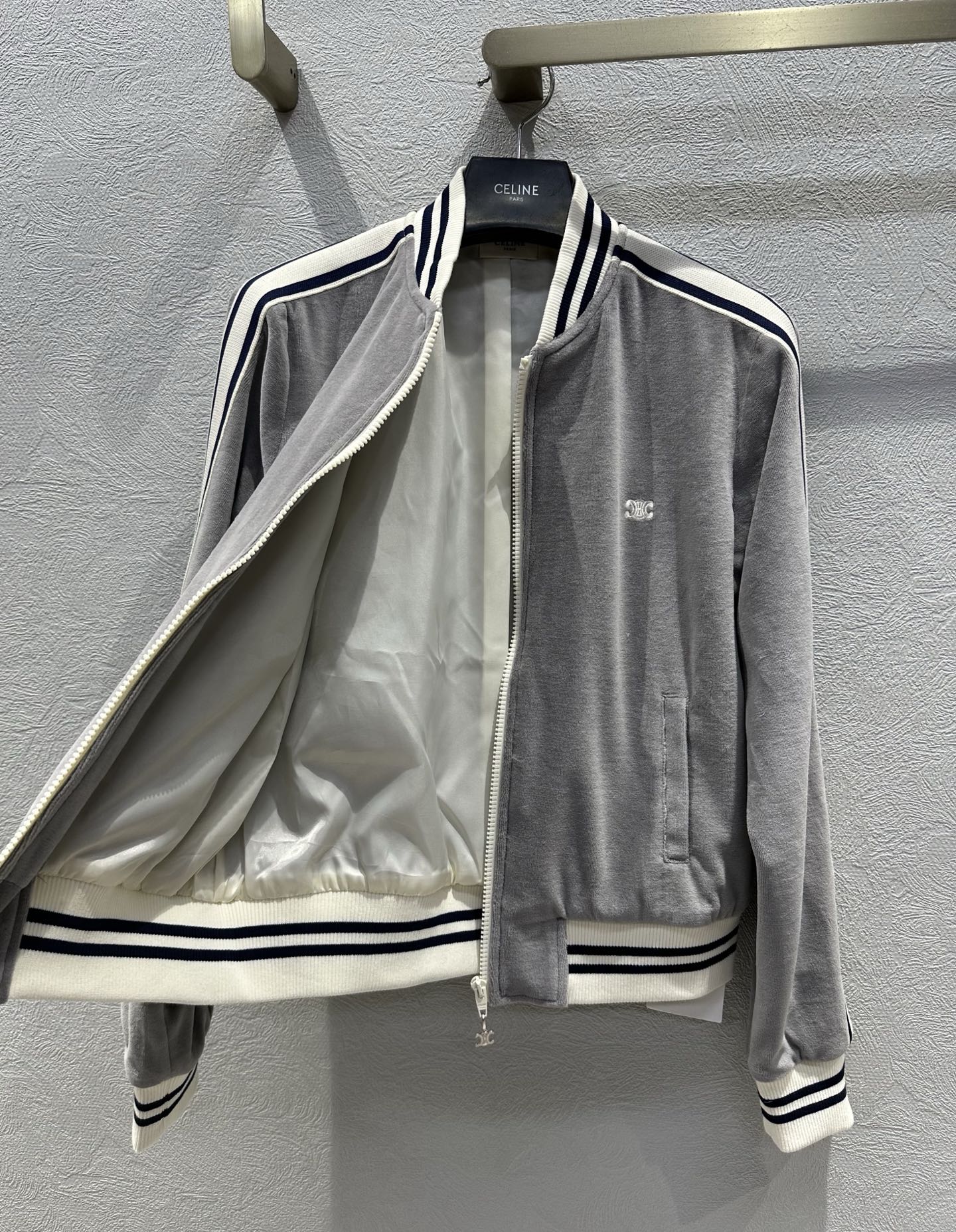 Celine 25 Jacket Grey White Velvet Cotton