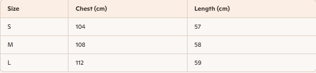 - For more information, please see the size guide below