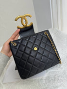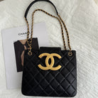 24c cc small shopping bag 21cm black lambskin gold hardware