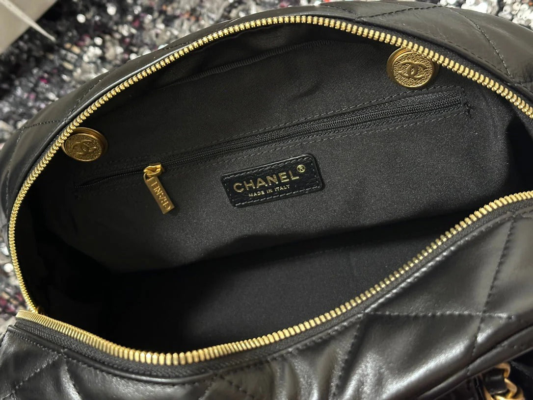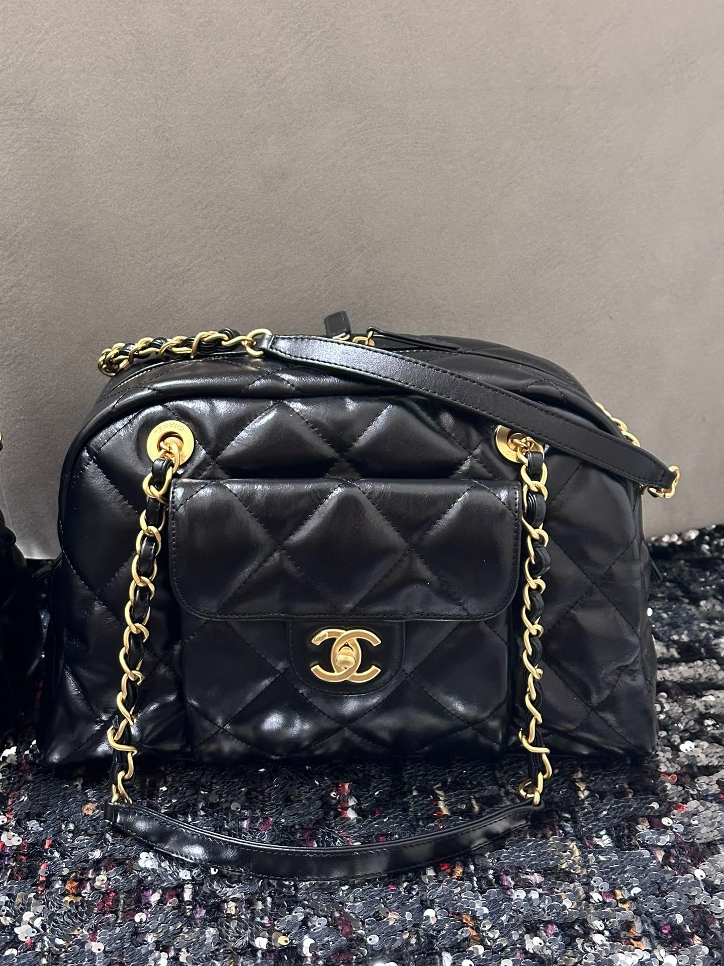 BOWLING BAG 33 IN BLACK SOFT LAMBSKIN GOLD HARDWARE