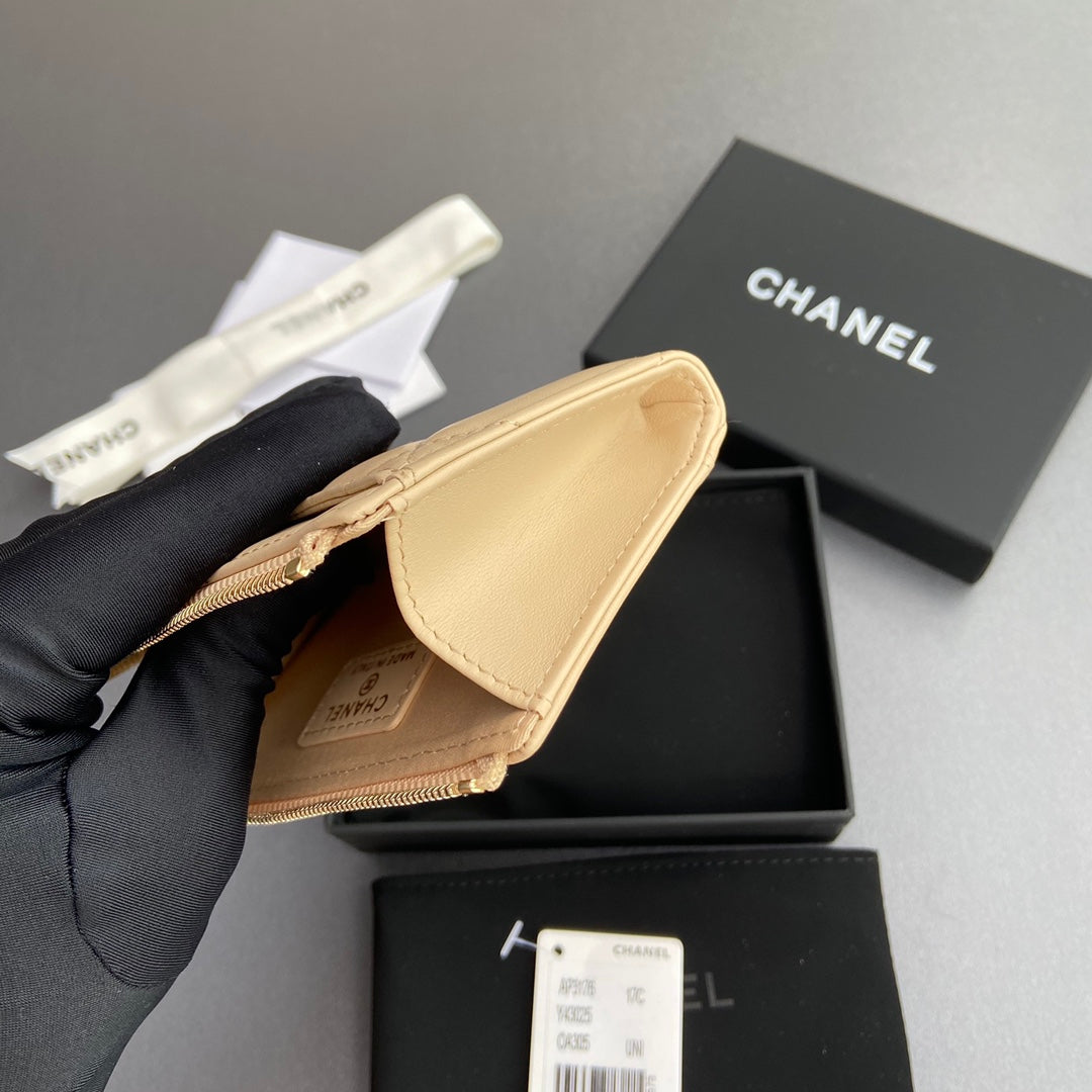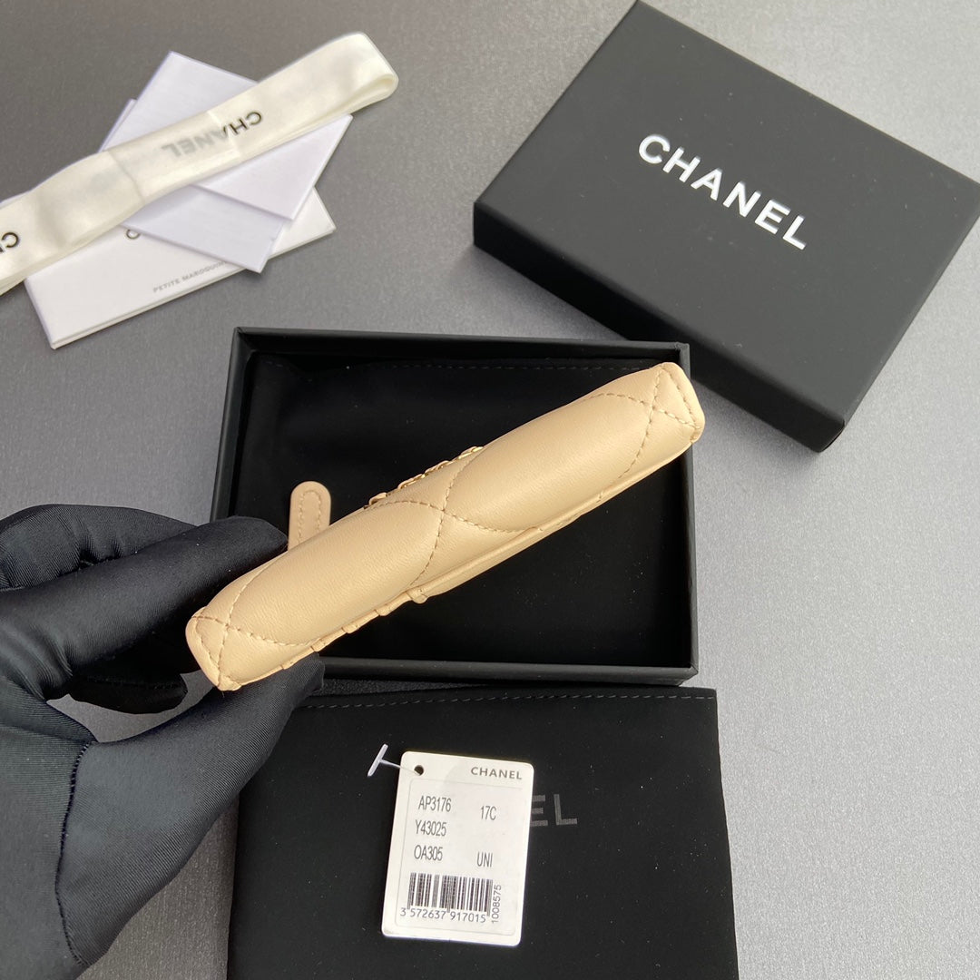 CC 19 Zipper Card Holder Beige Sheepskin GHW 234762