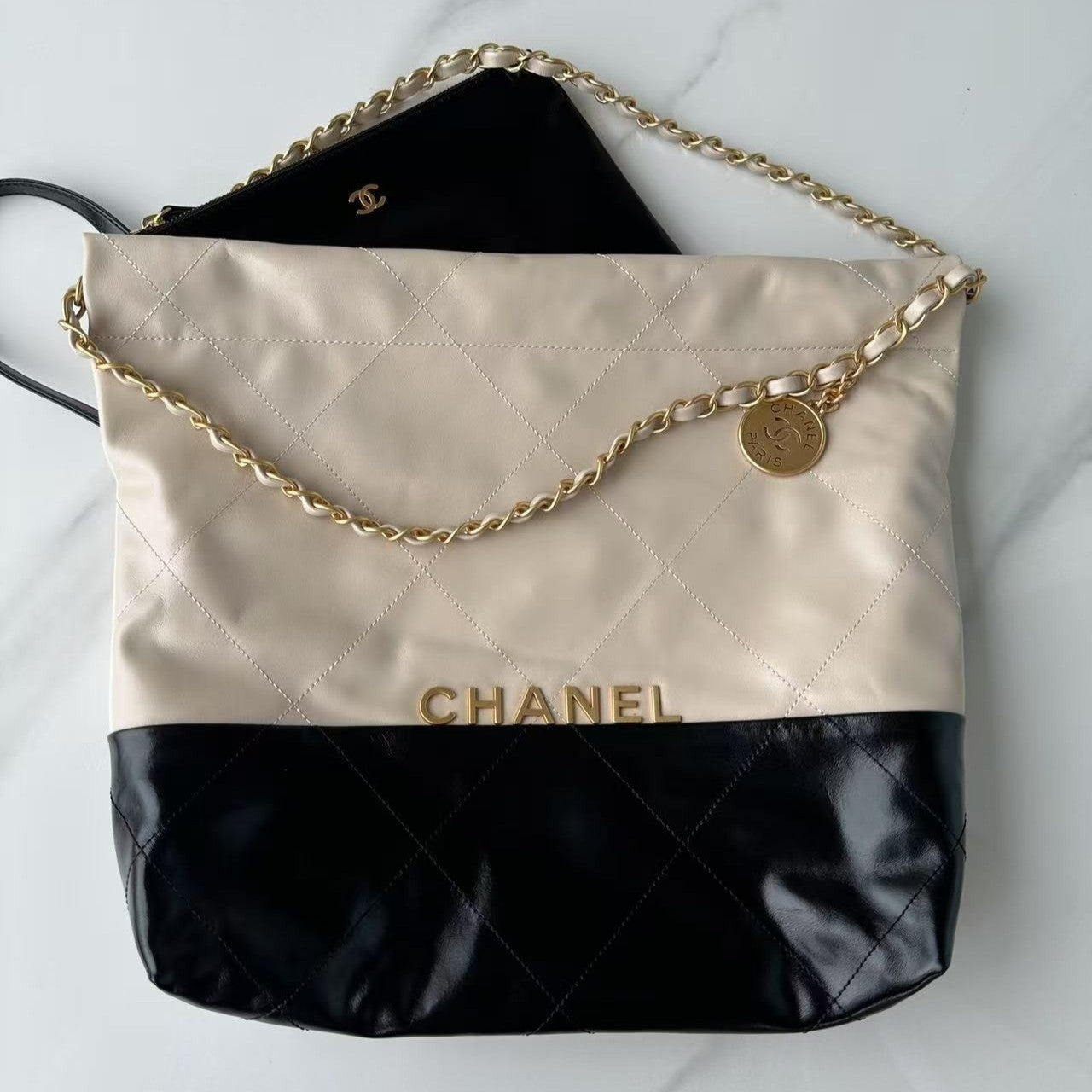 CC 22 MINI HOBO BAG BEIGE BLACK SHINY CALFSKIN