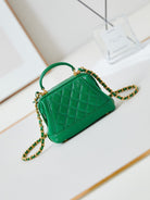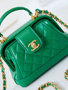 CC 24A Mini Top Handle 13cm Green Wax Leather Gold Hardware 238465