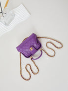 CC 24A Mini Top Handle 13cm Purple Wax Leather Gold Hardware 238457