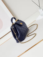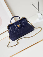 CC 24A Top Handle 23.5cm Night Blue Wax Leather Gold Hardware 238473