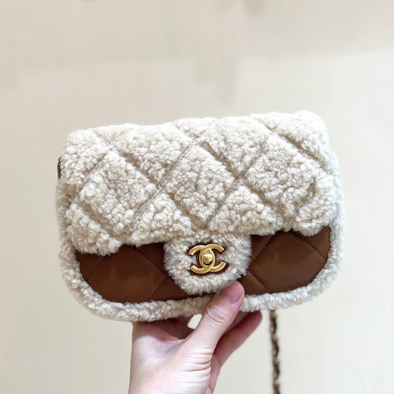 CC 24K Teddy Bear CF 18 cm Brown Beige Lambskin & Fur Light GHW