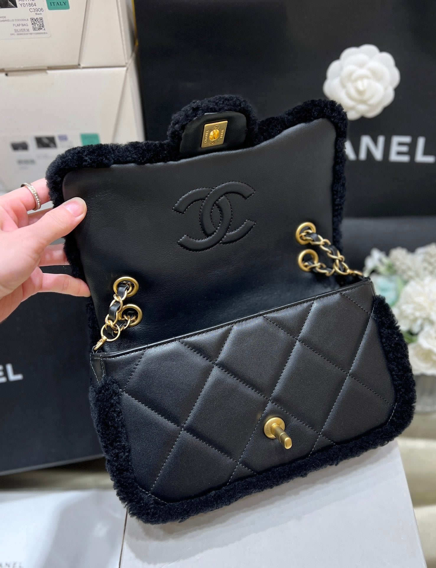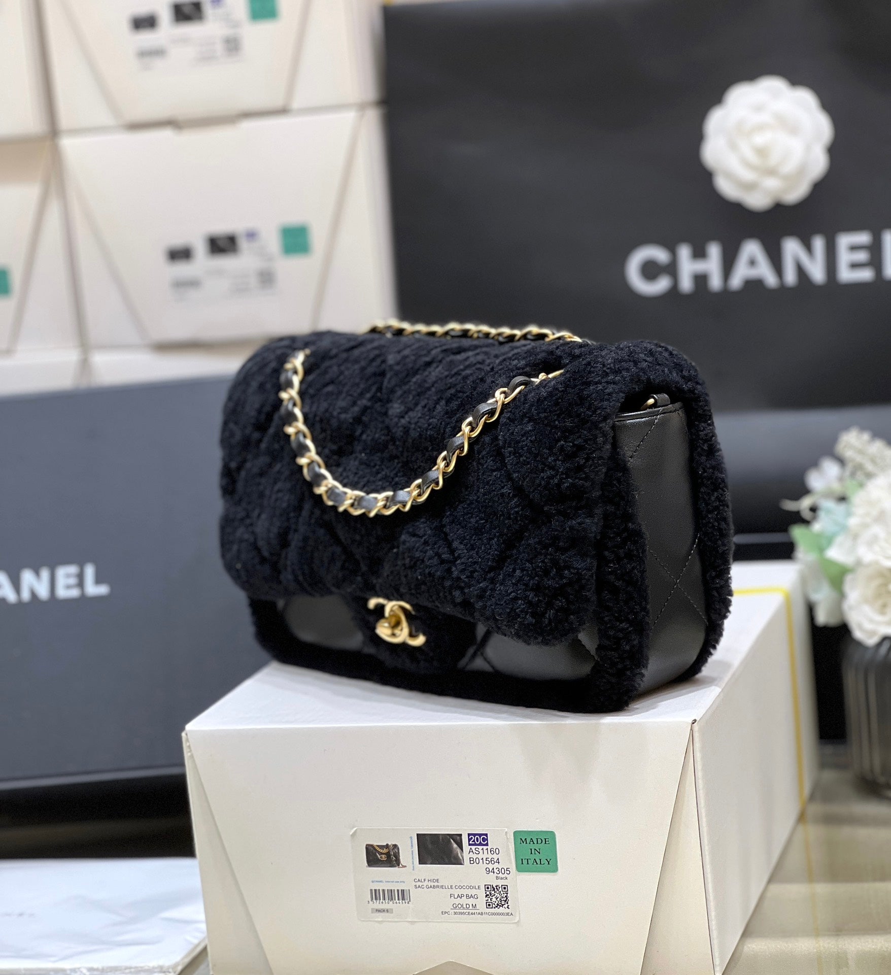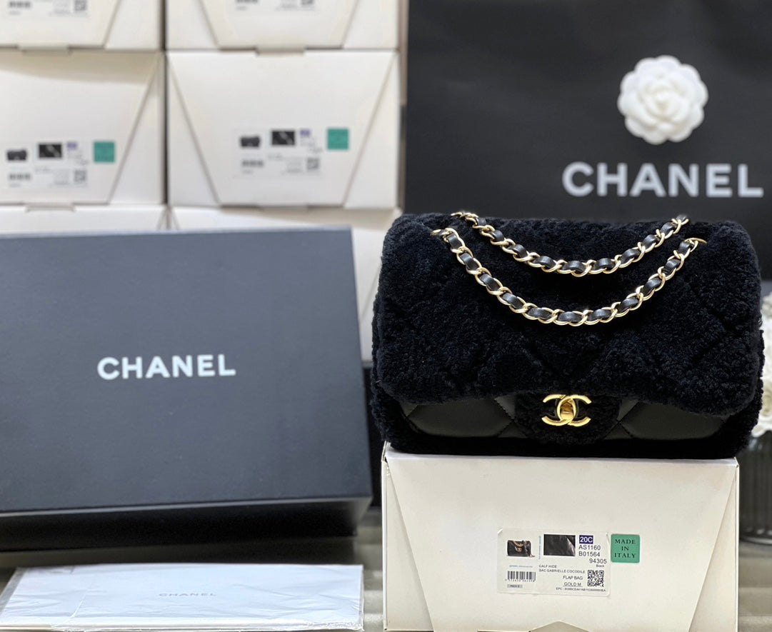 CC 24K Teddy Bear CF 23.5cm Black Lambskin & Fur Light GHW