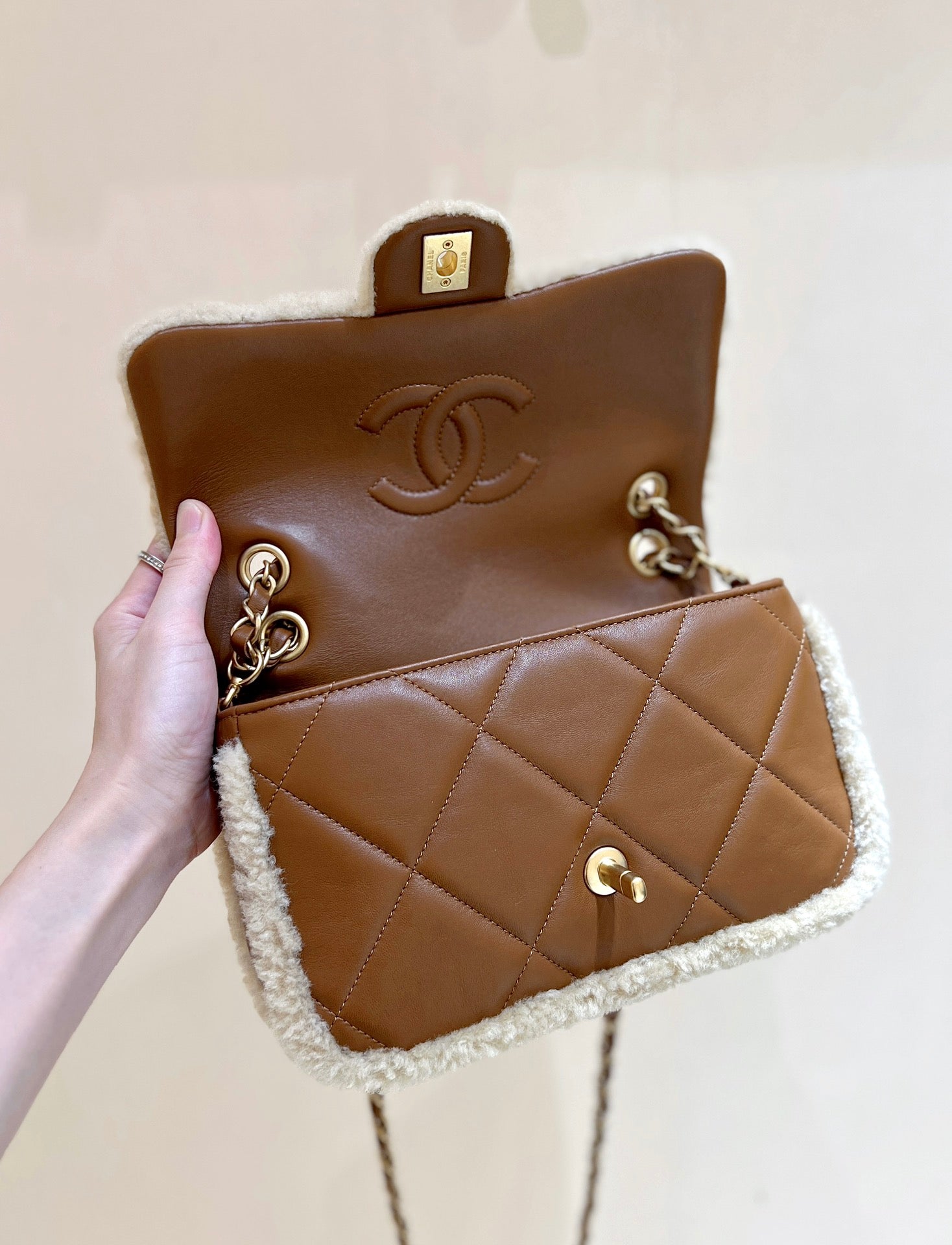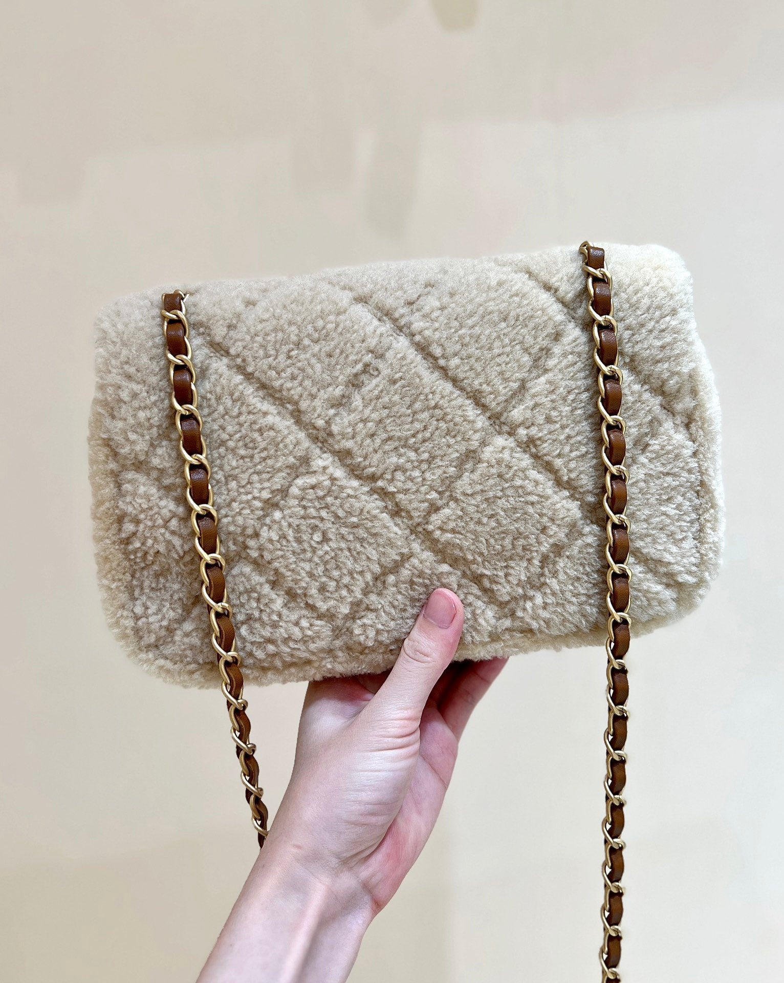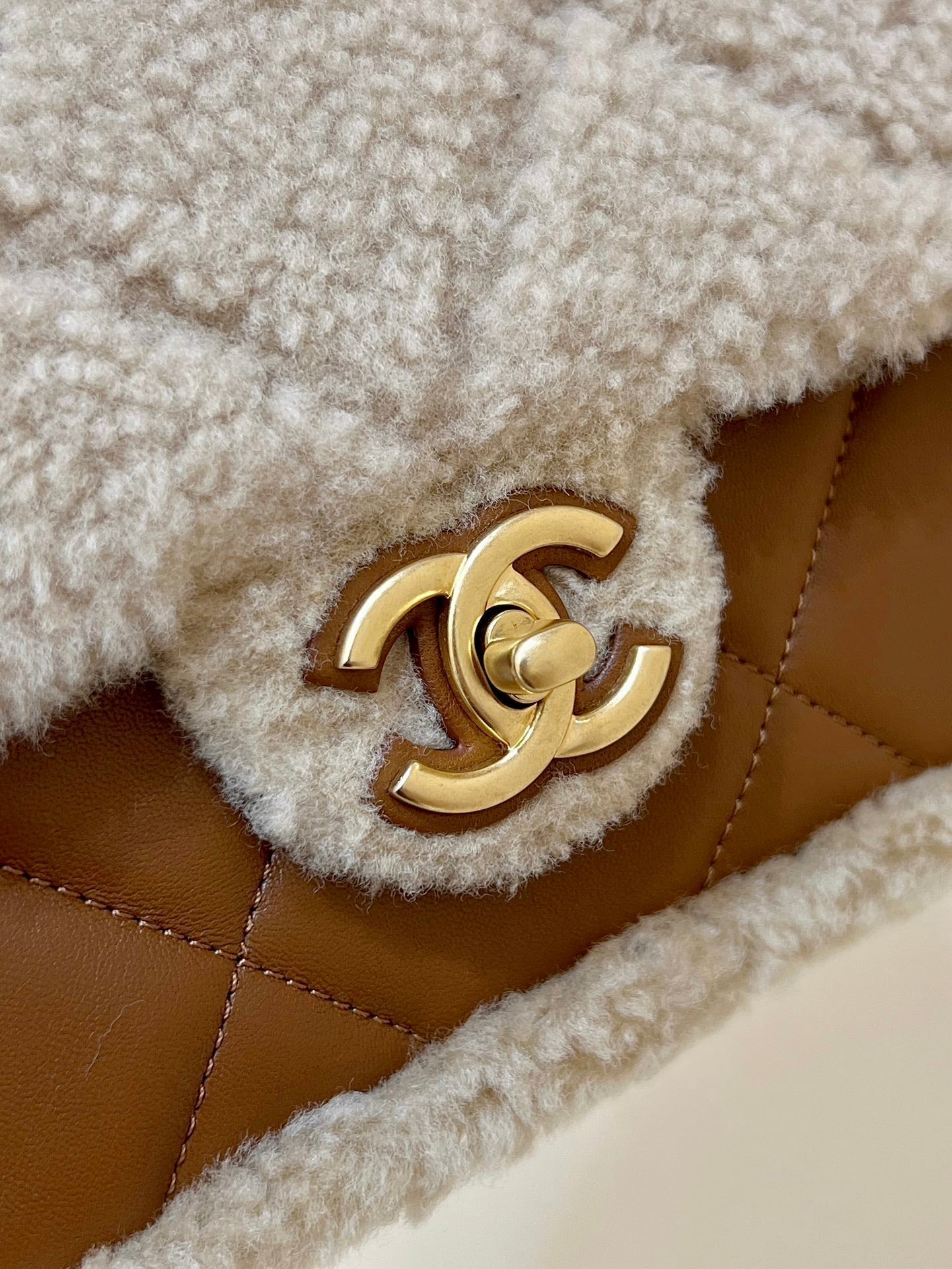 CC 24K Teddy Bear CF 23.5cm Brown Beige Lambskin & Fur Light GHW